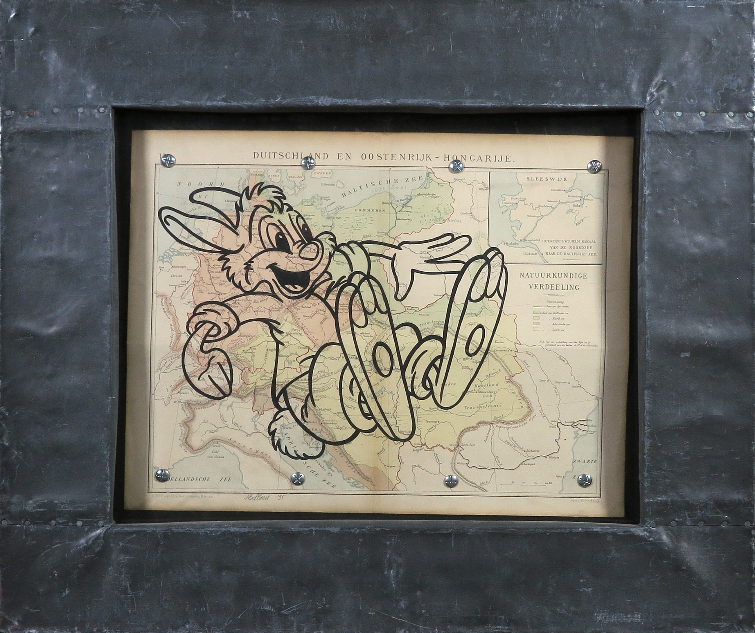 Acryl op papier, verlijmd op doek en ingelijst met lood.