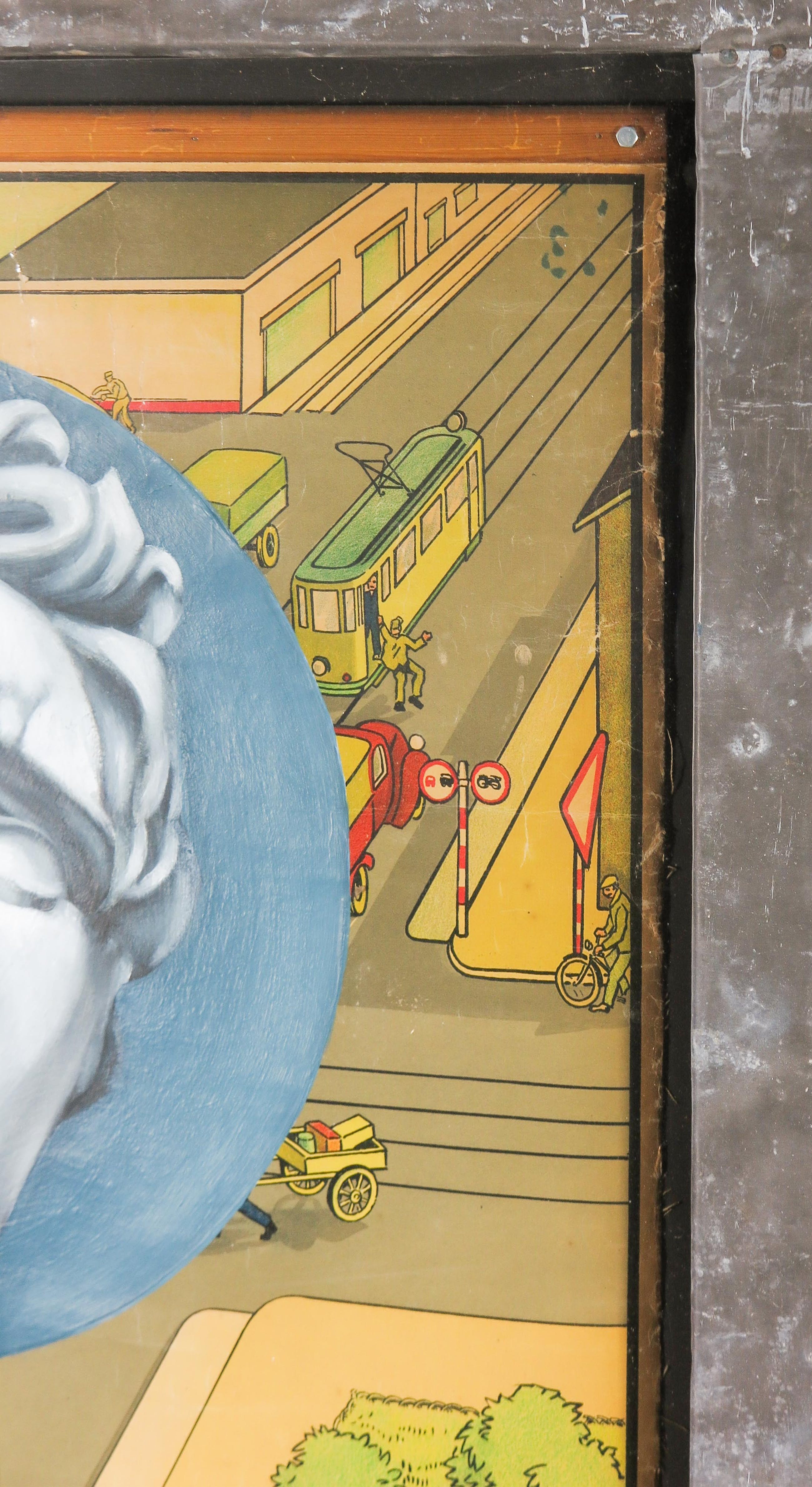 | Randen van het papier zijn lichtelijk gerafeld. Stof achter het plexiglas. Plexiglas is lichtelijk verschoven en is een beetje vuil. | |