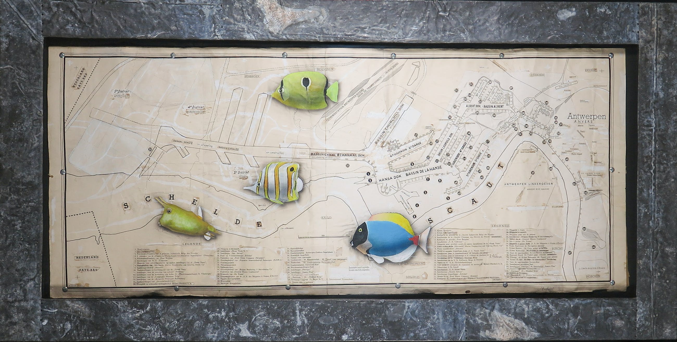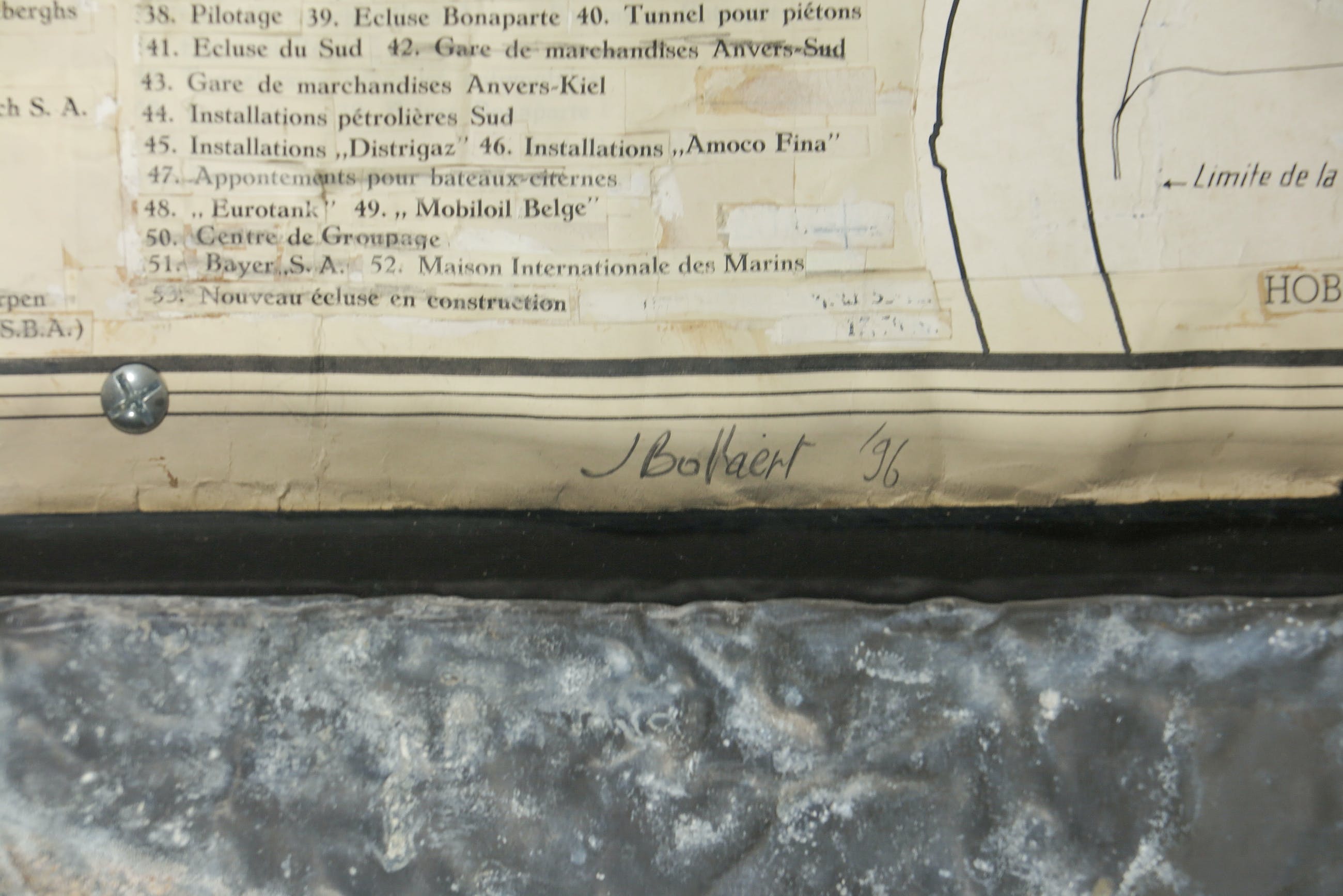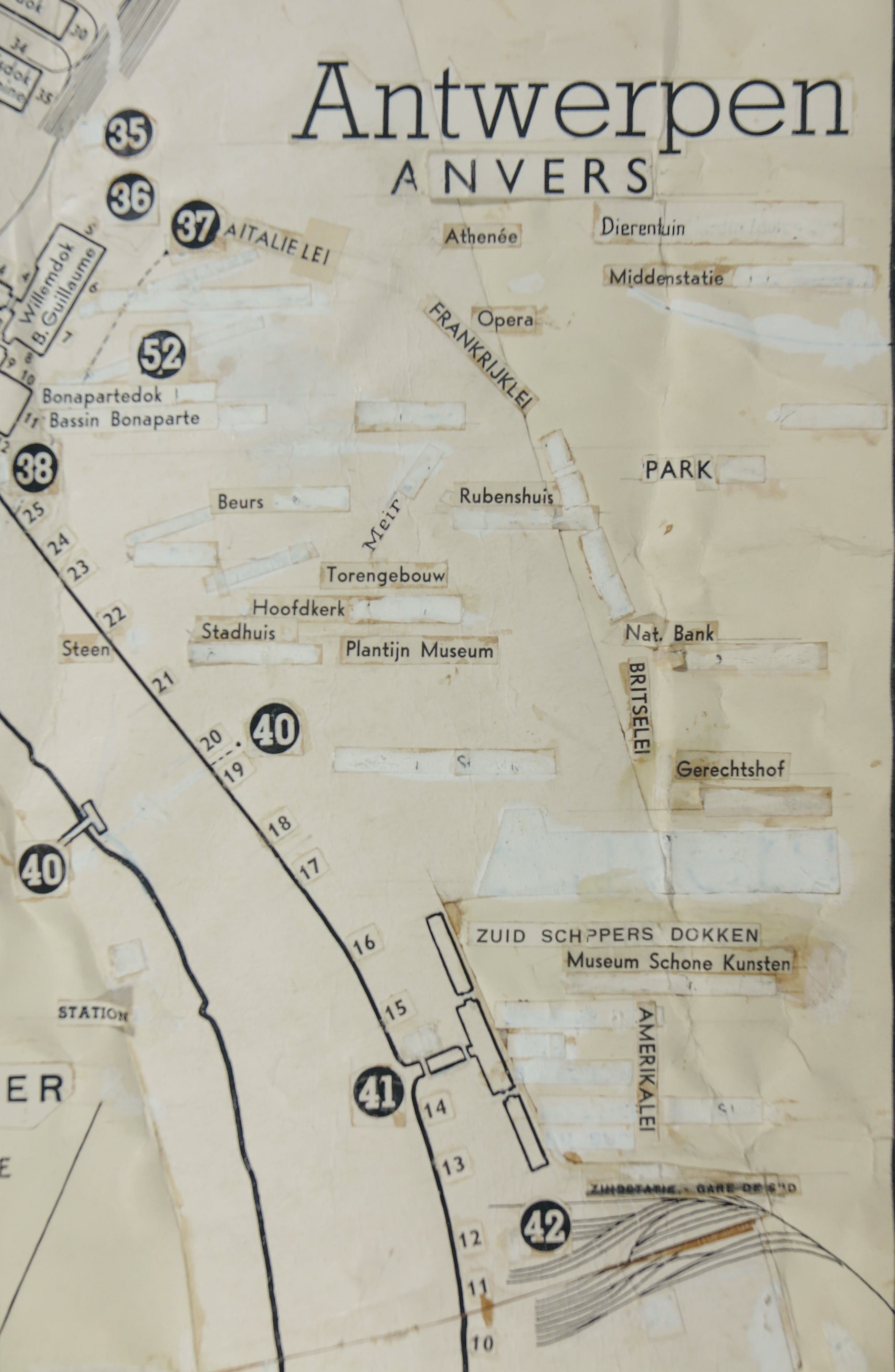 | Verouderd papier is onderdeel van het werk. Er zit wat stof achter het plexiglas en is hierdoor een beetje vuil. | |