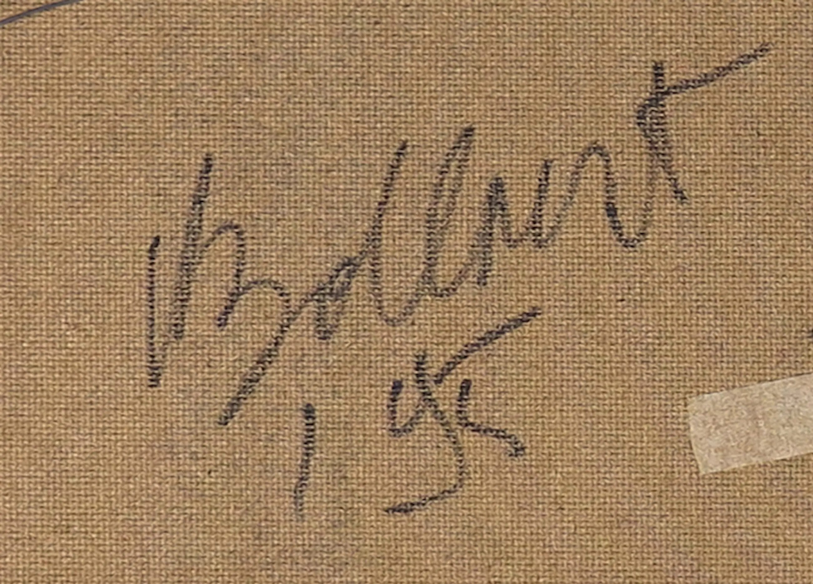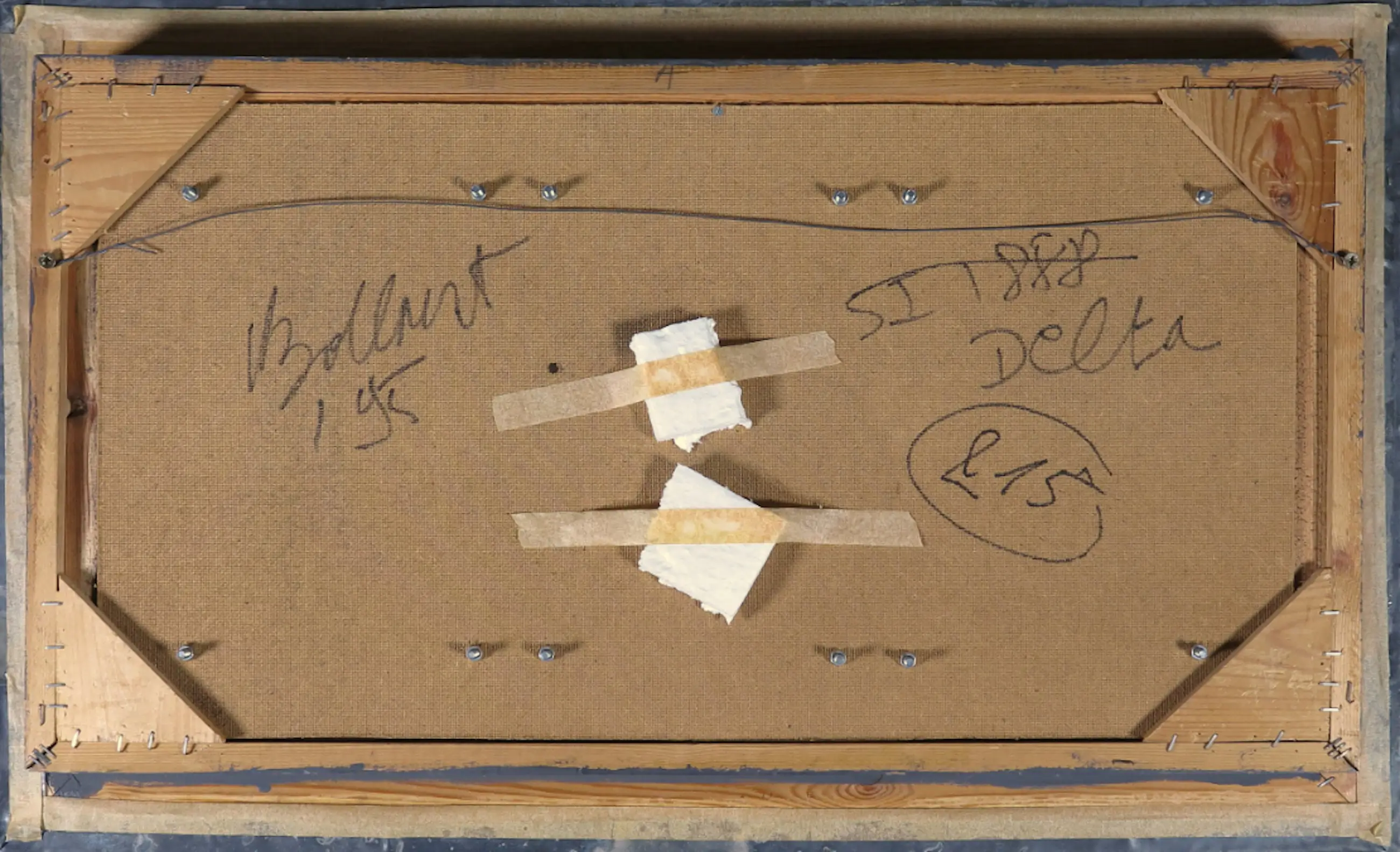 Het geheel is gevat in een zeer robuuste eigen lijsting van metaal met klinknagels en verso gesigneerd en gedateerd.