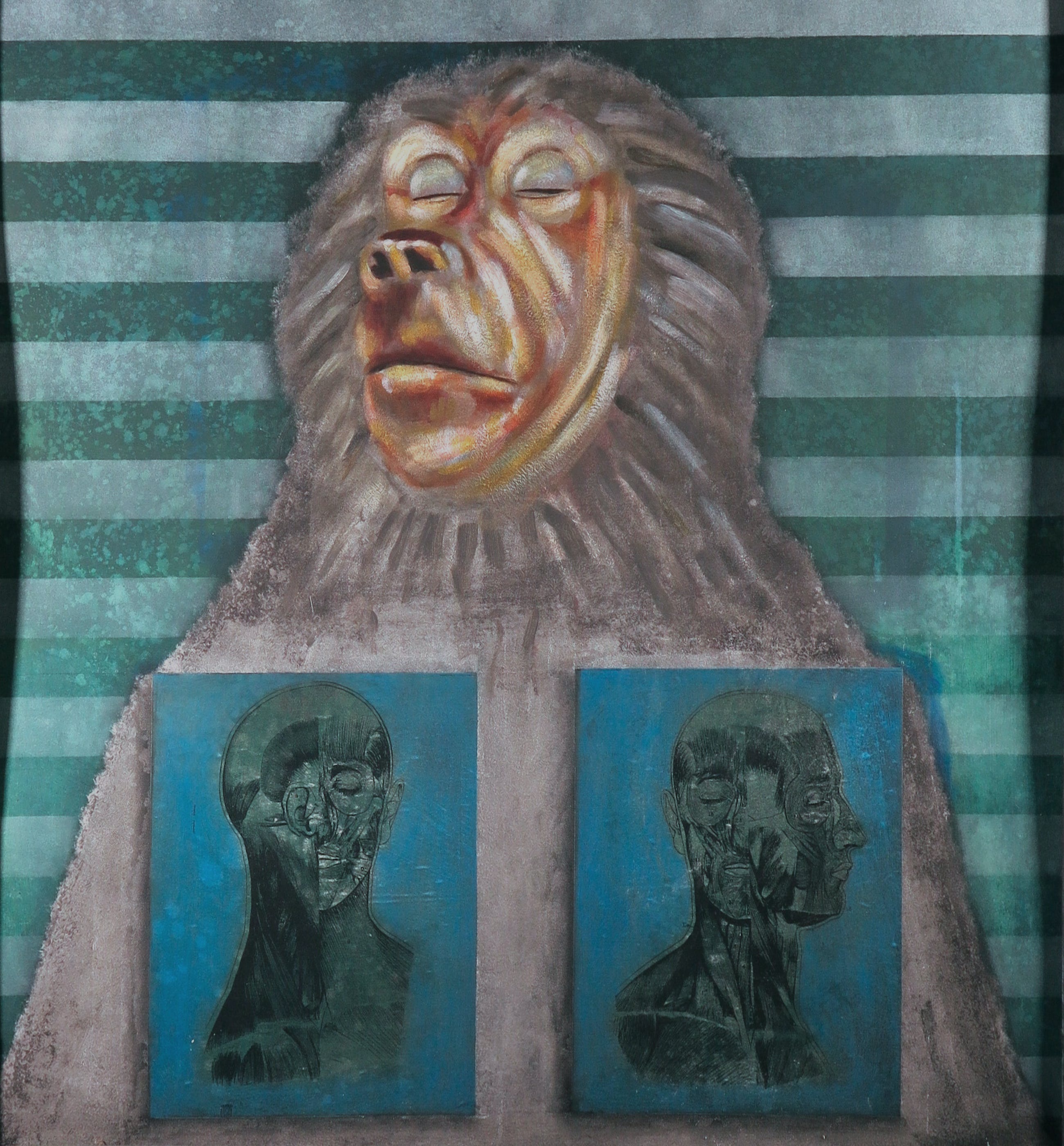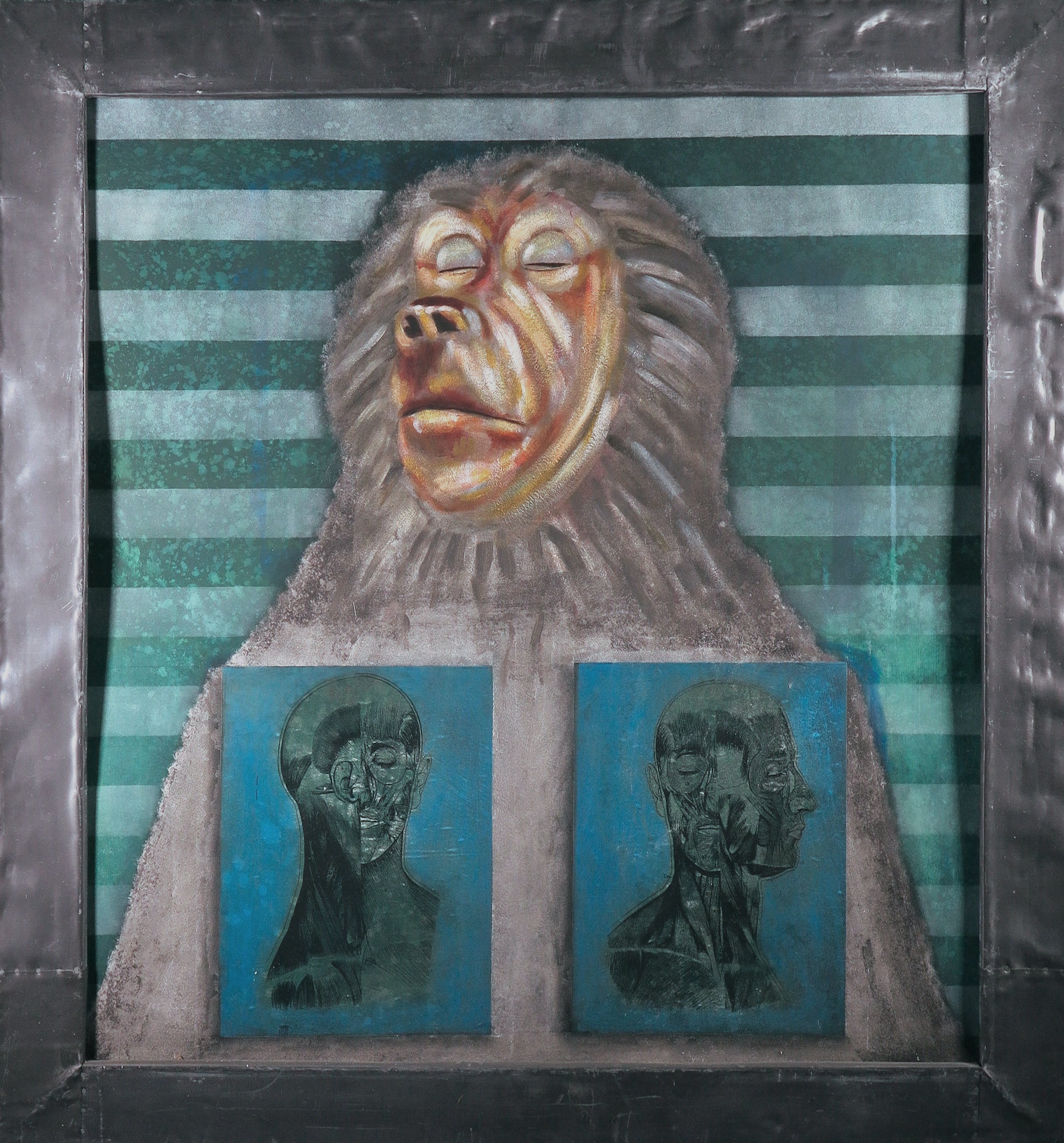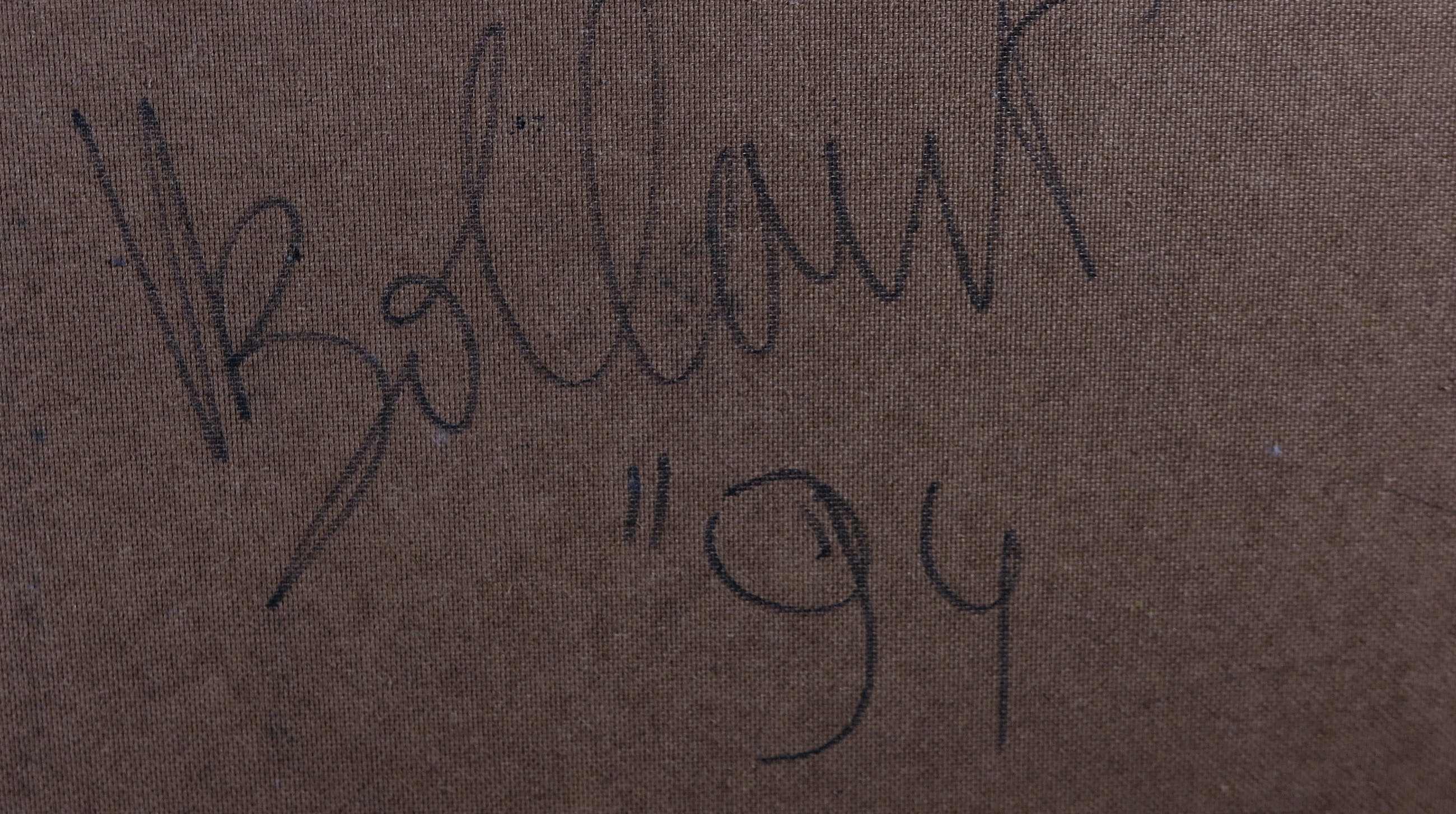 Acryl op papier, verlijmd op doek en ingelijst met lood.