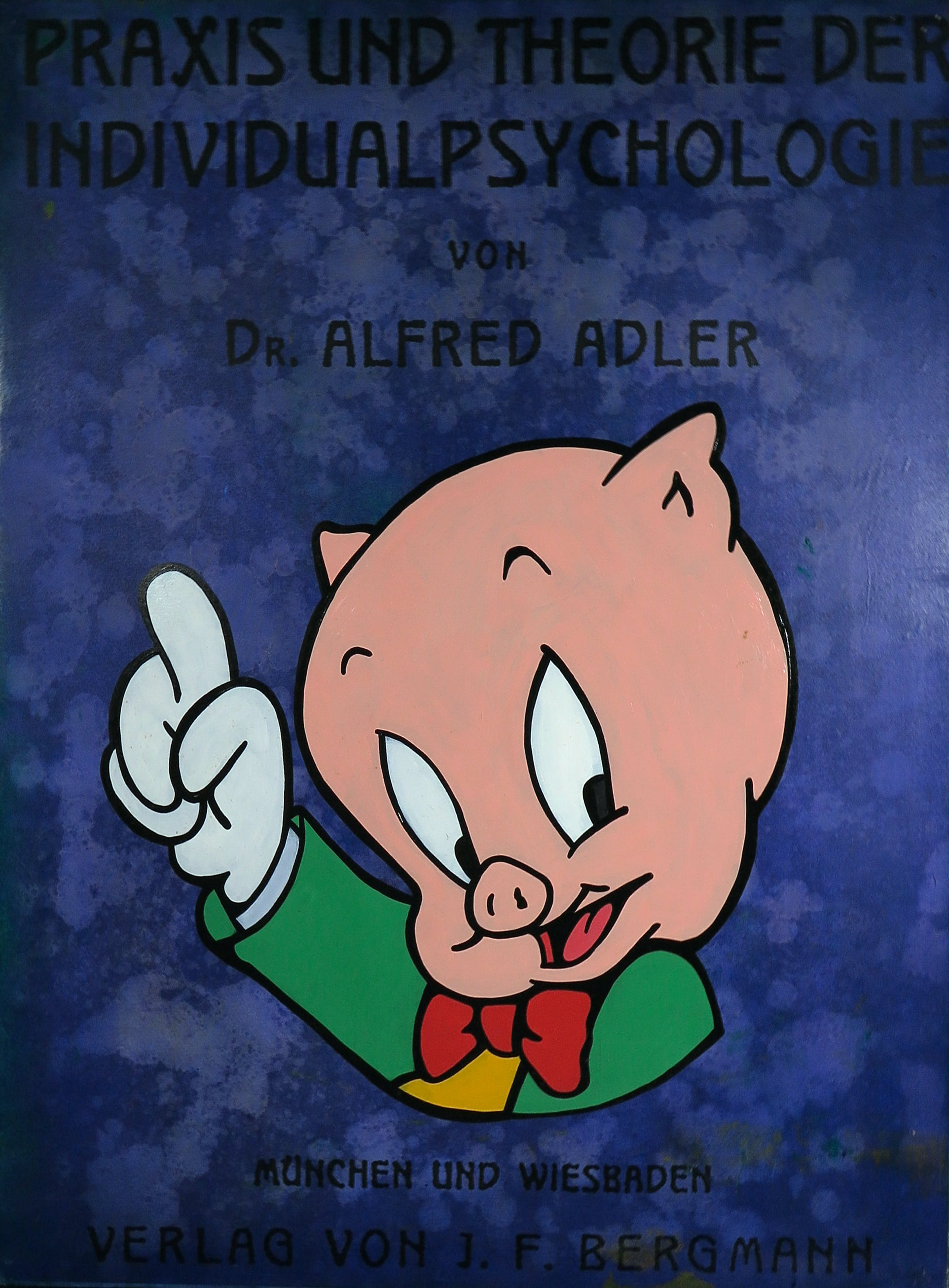 Acryl op papier, verlijmd op doek, over hardboard gespannen (met ophangsysteem). De achtergrond van de voorstelling betreffend een uitvergrootte pagina uit historische publicatie. De figuur in de voorgrond is geschilderd.