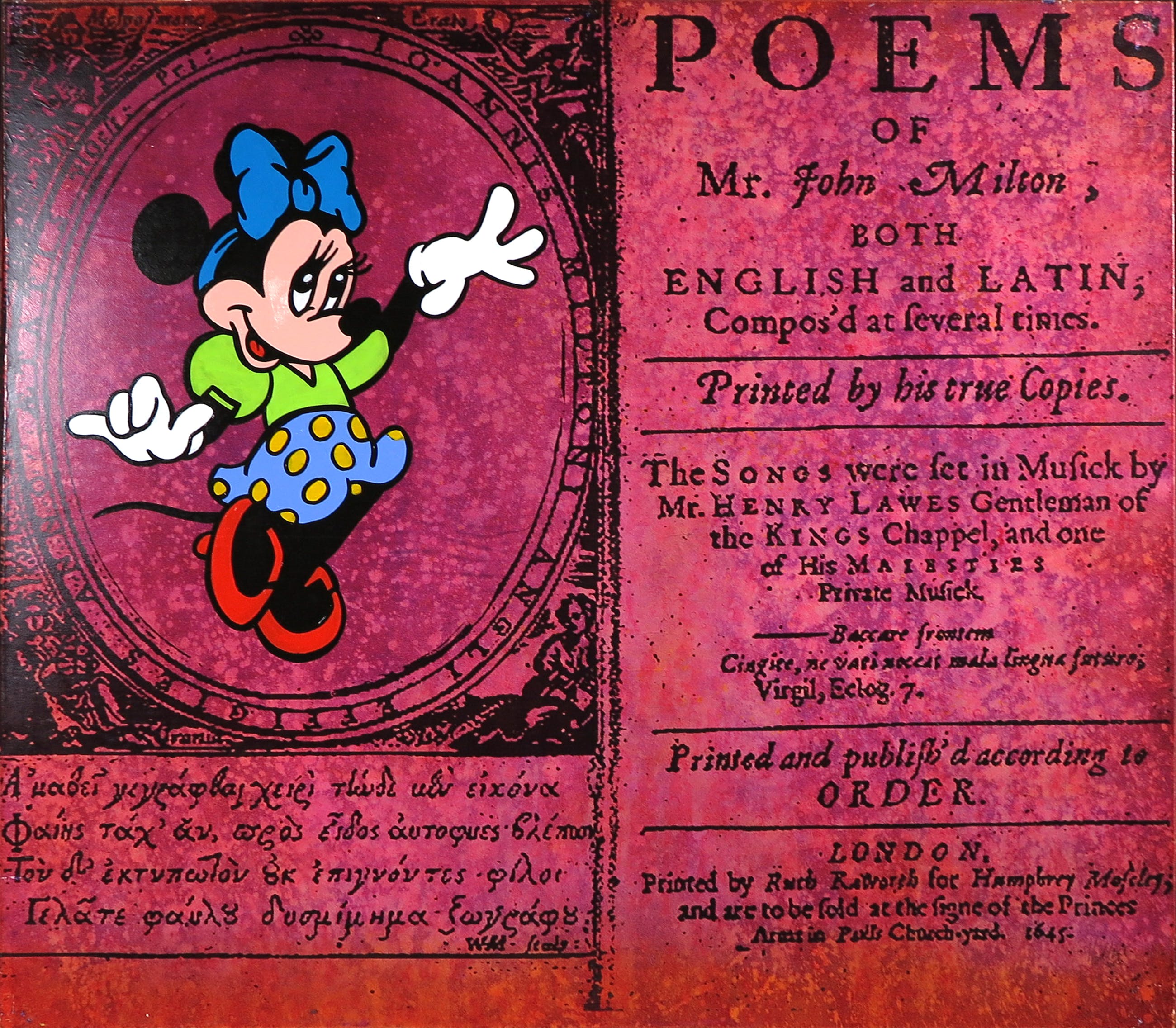 Acryl op papier, verlijmd op doek, over hardboard gespannen (met ophangsysteem). De achtergrond is vervaardigd uit uitvergrote historische boeken of documenten.