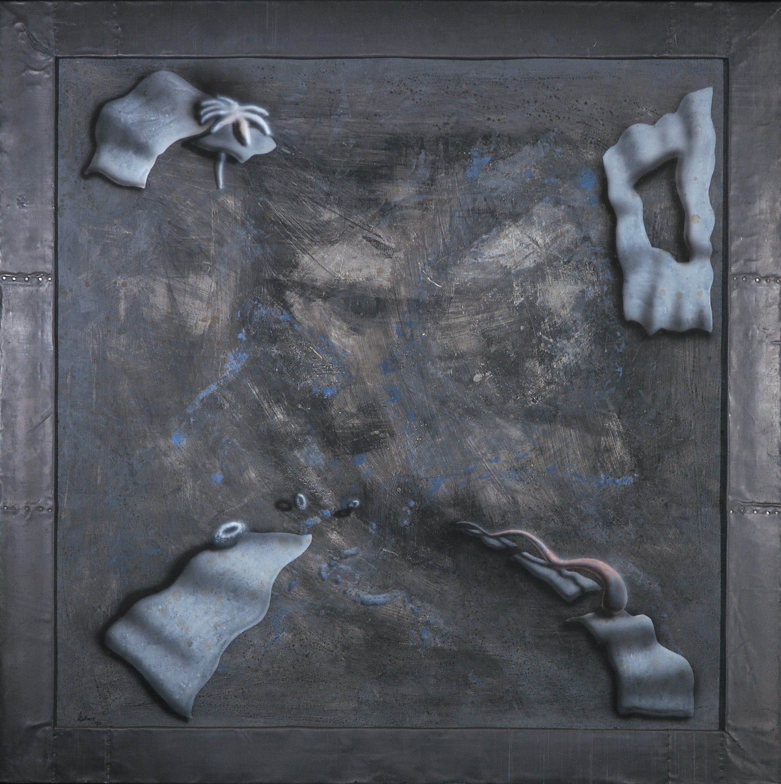 Acryl op papier, verlijmd op doek en ingelijst met lood.