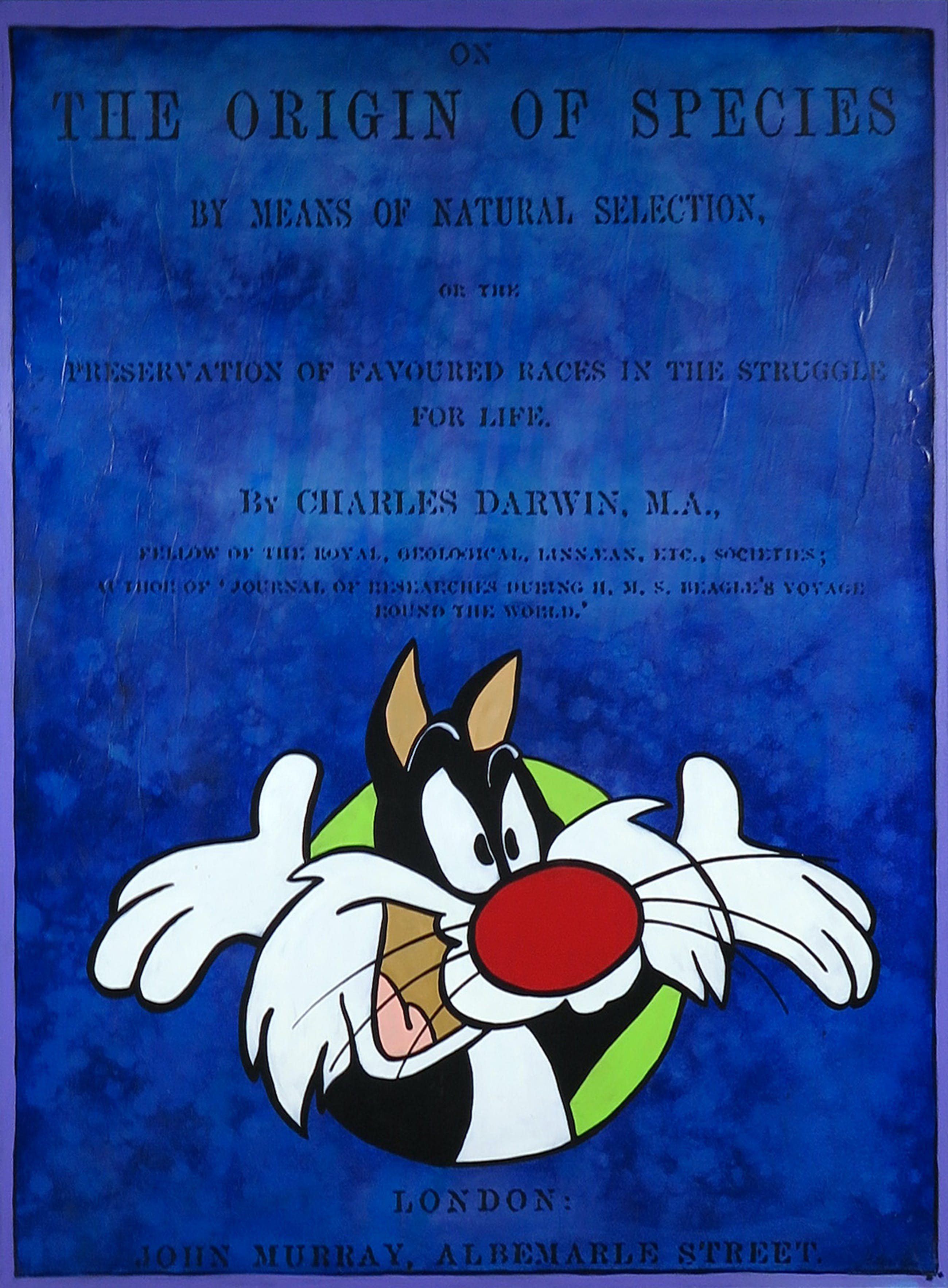Acryl op papier, verlijmd op doek, over hardboard gespannen (met ophangsysteem). De achtergrond is vervaardigd uit uitvergrote historische boeken of documenten.