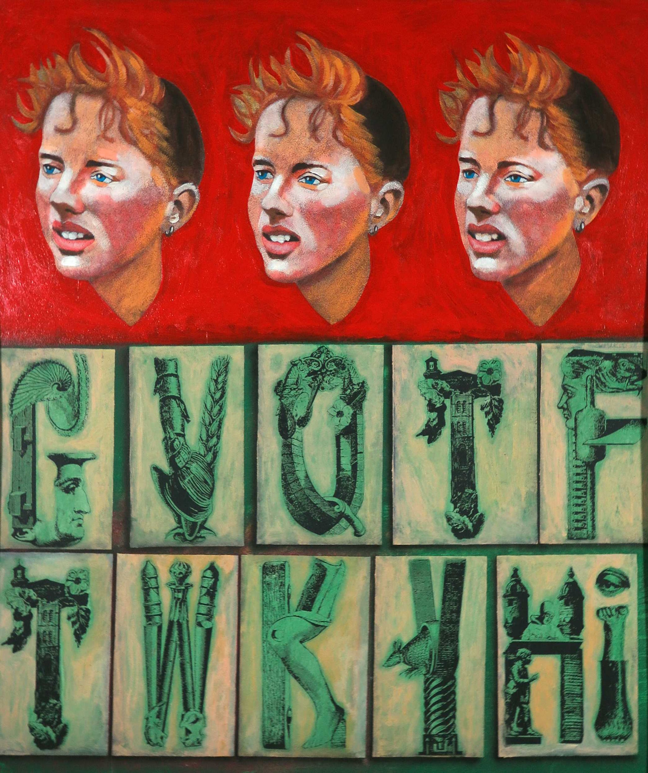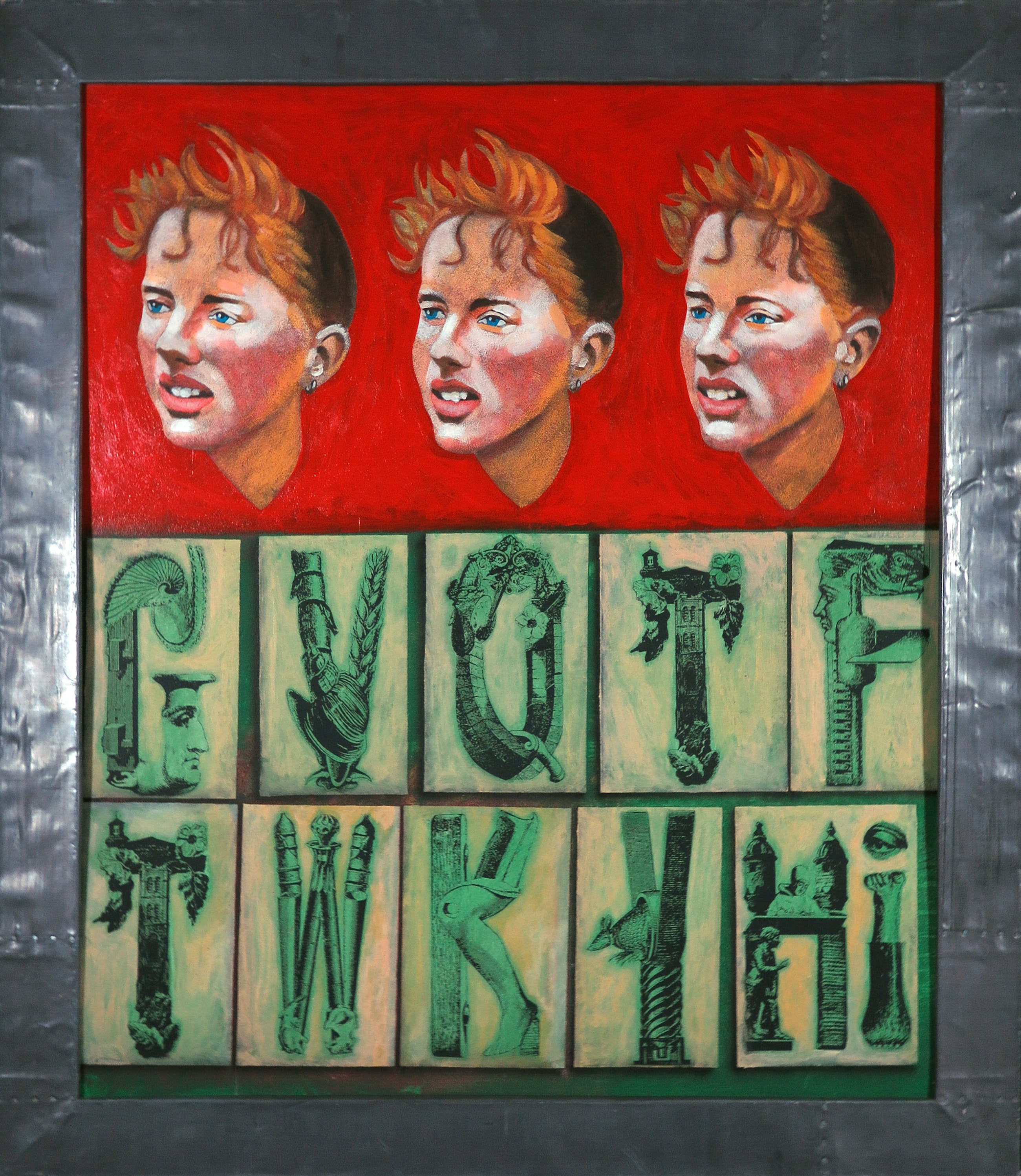 Acryl op papier, verlijmd op doek en ingelijst met lood.