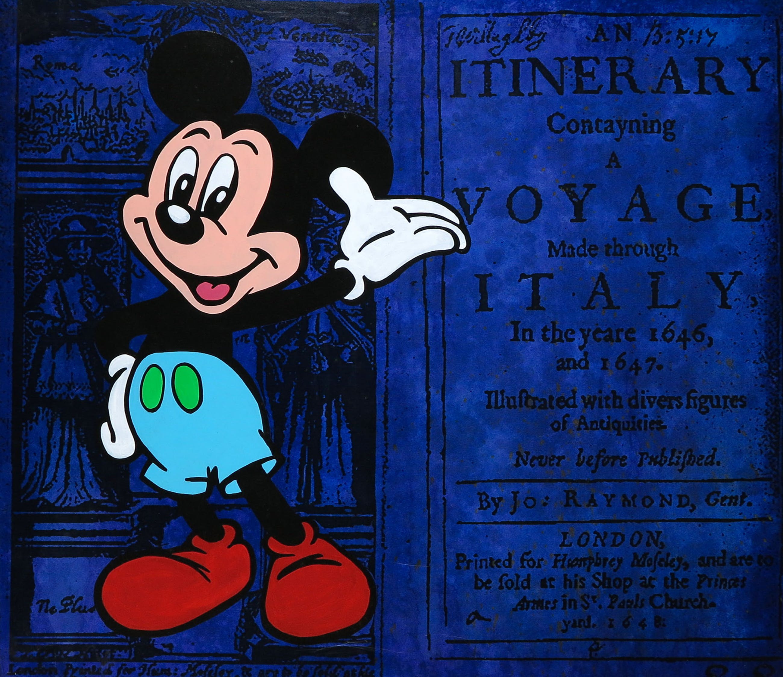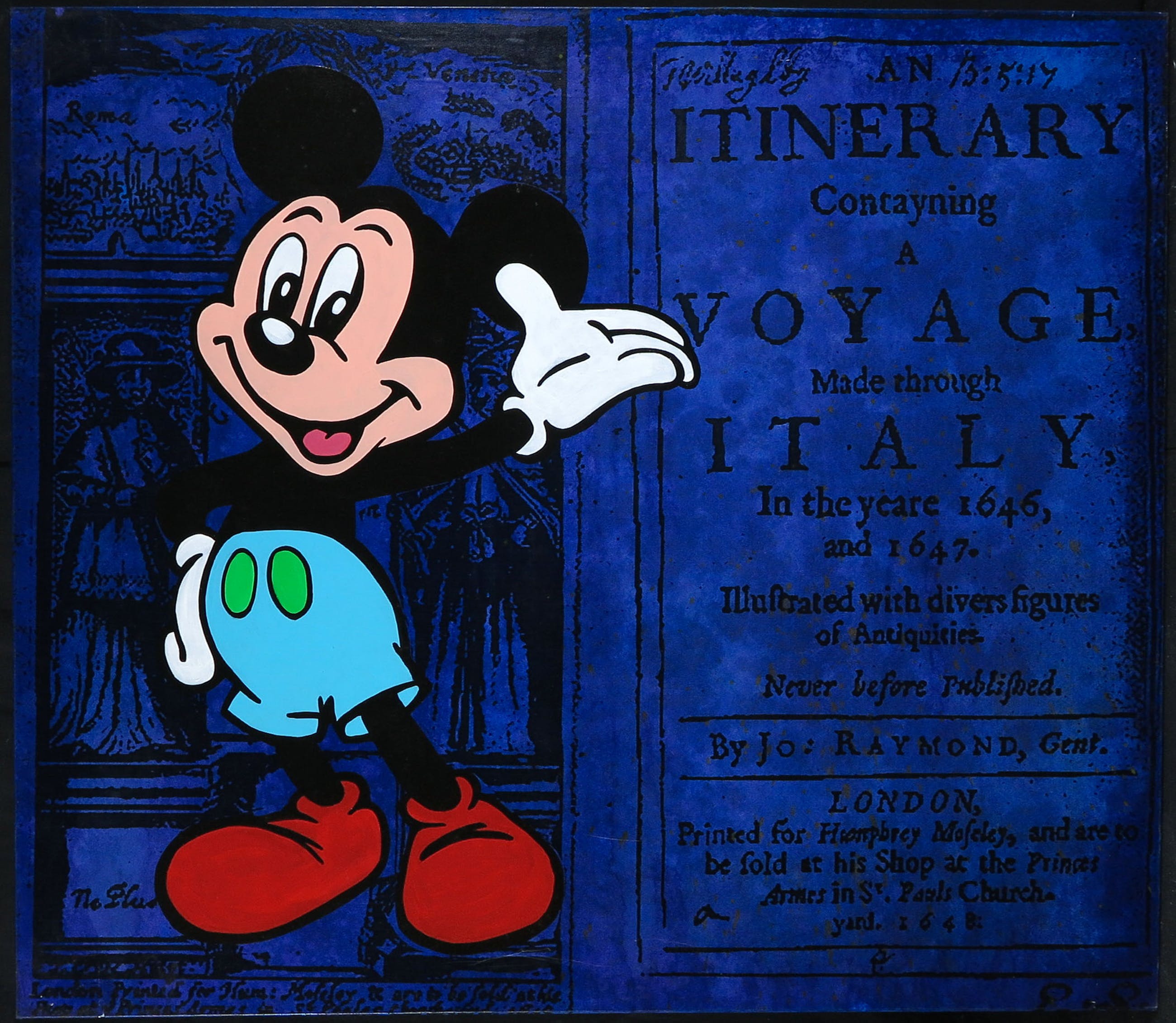 Acryl op papier, verlijmd op doek, over hardboard gespannen (met ophangsysteem). De achtergrond is vervaardigd uit uitvergrote historische boeken of documenten.
