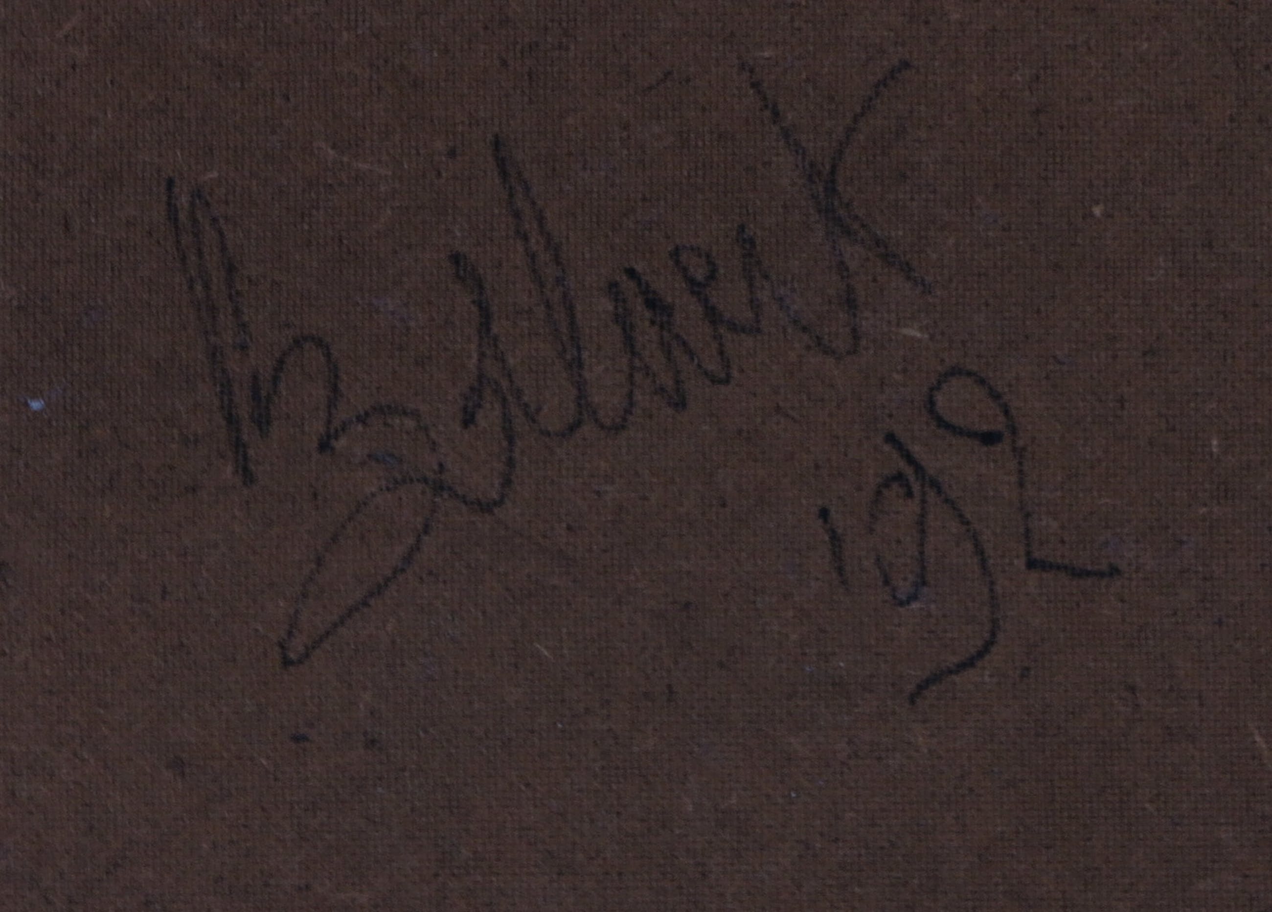 Acryl op papier, verlijmd op doek en ingelijst met lood.