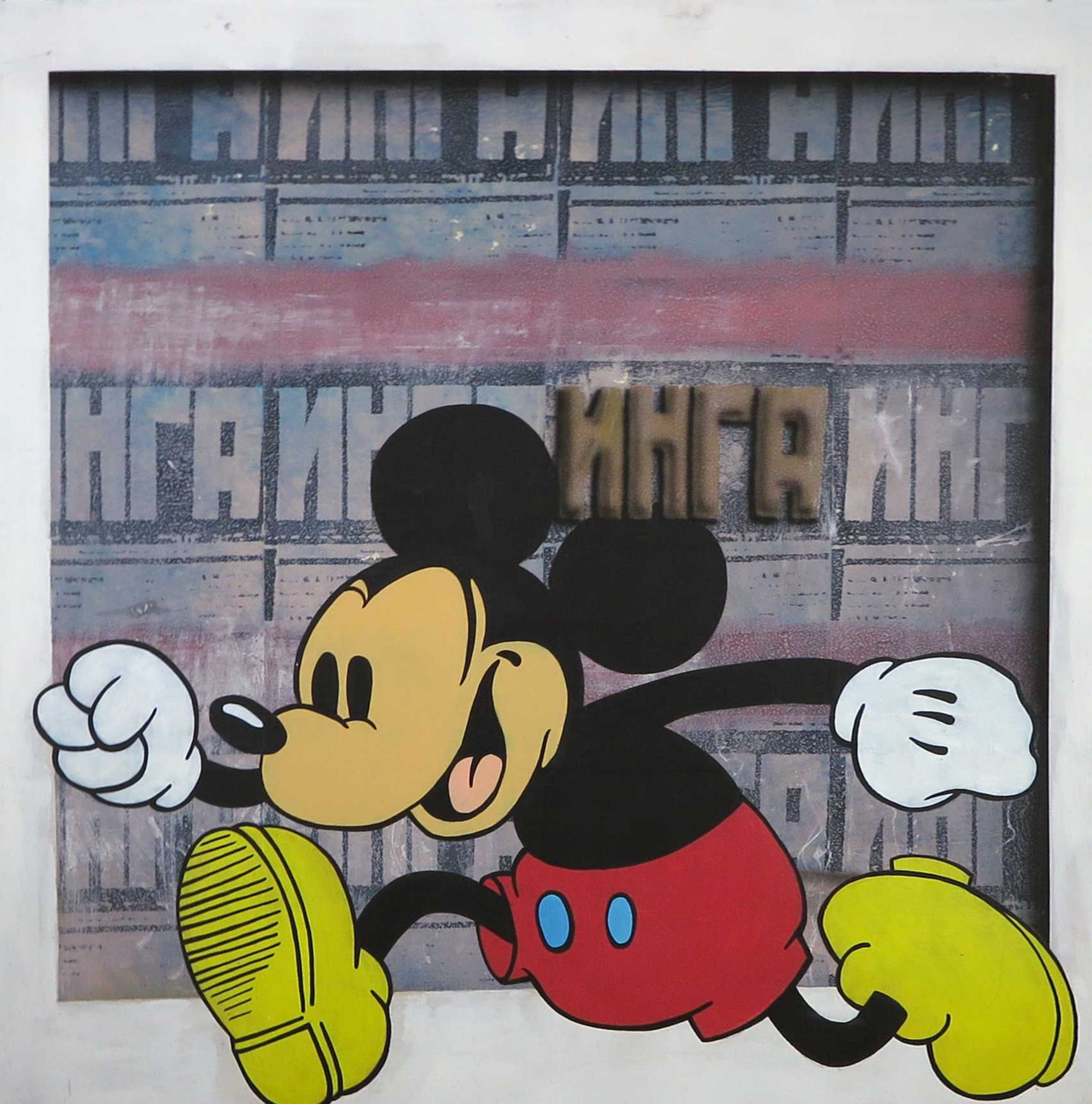 Acryl op papier, verlijmd op doek en ingelijst met lood.