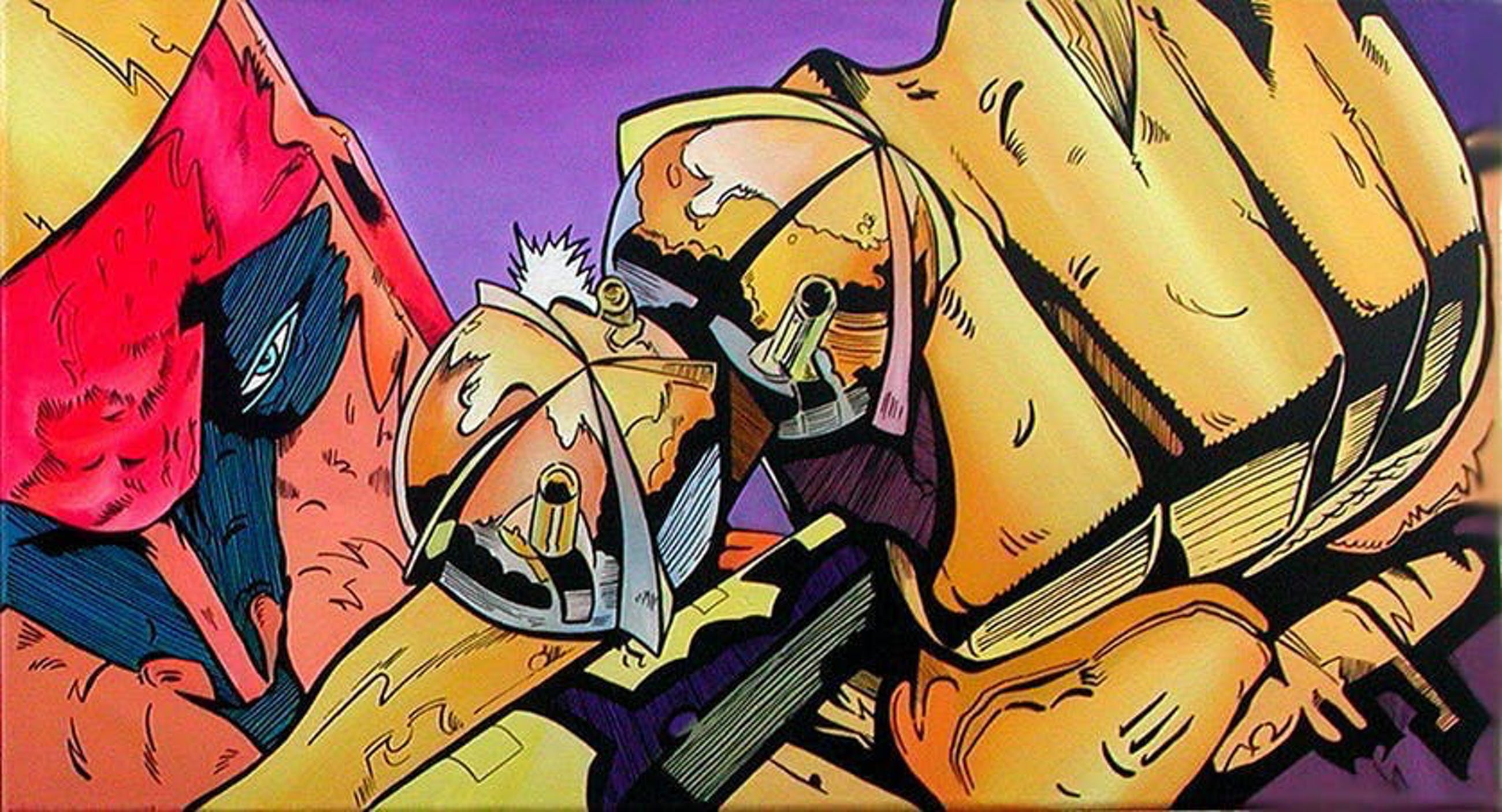 Tweeluik in acryl op doek, ergens op de rand van pop en street art. enkel verzending naar Nederland of België.