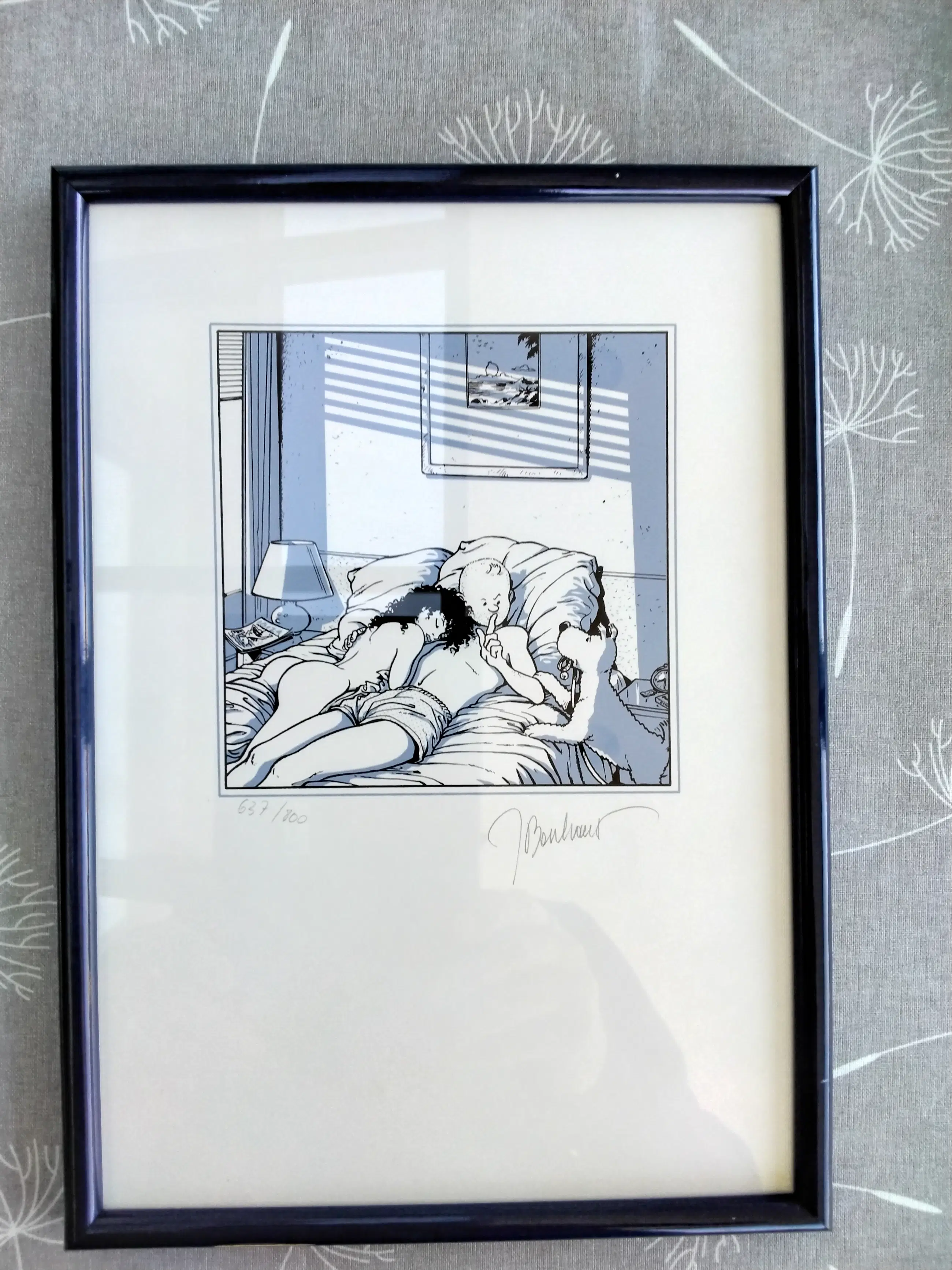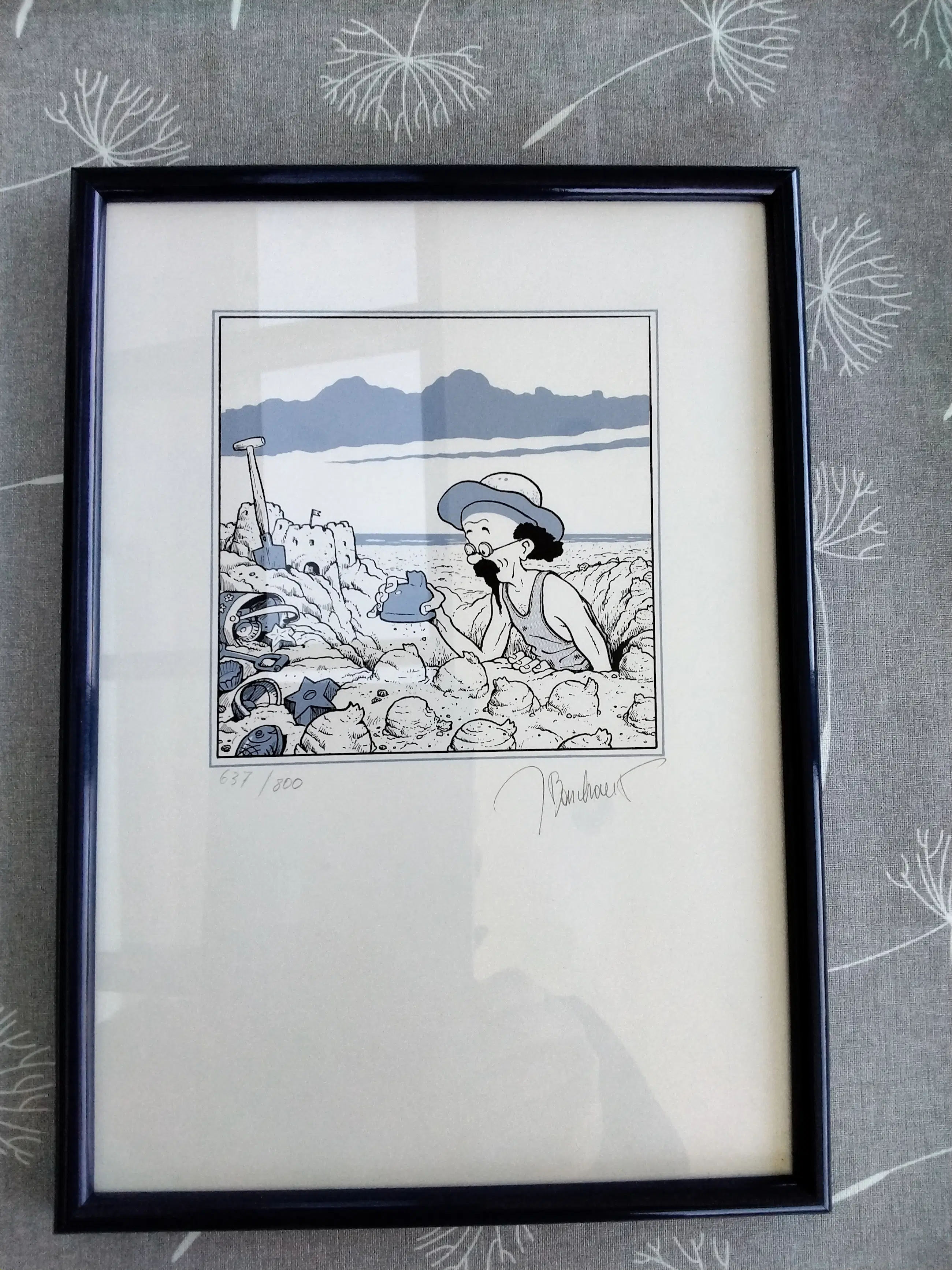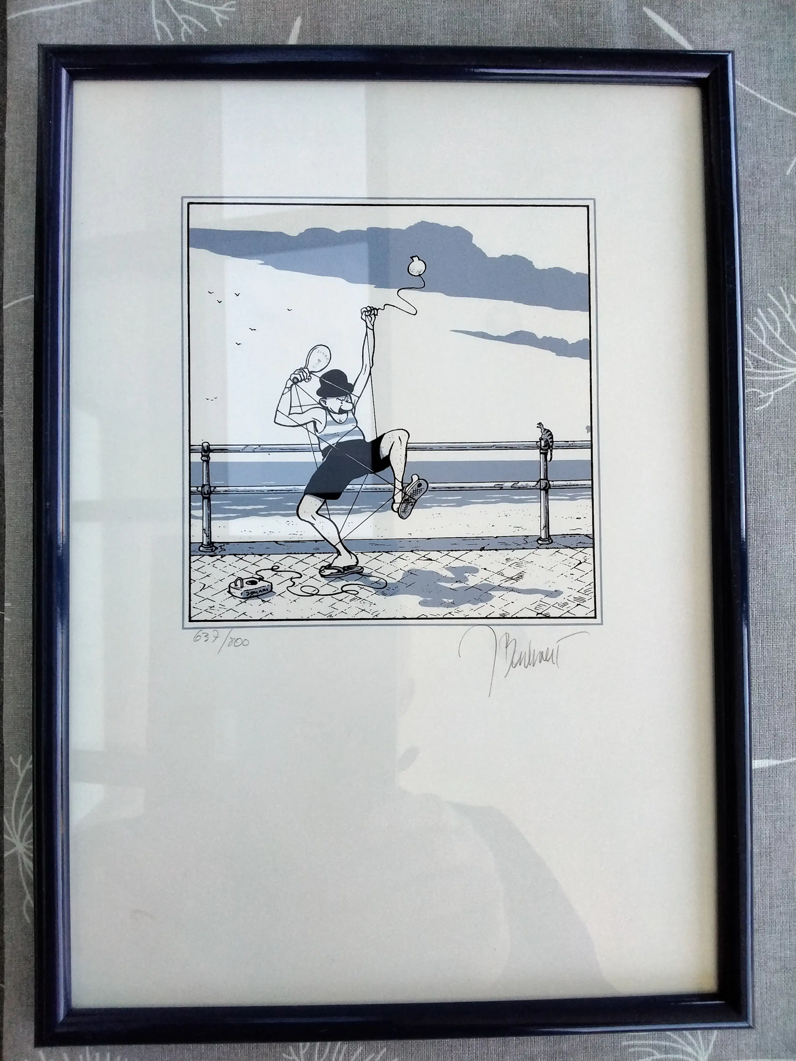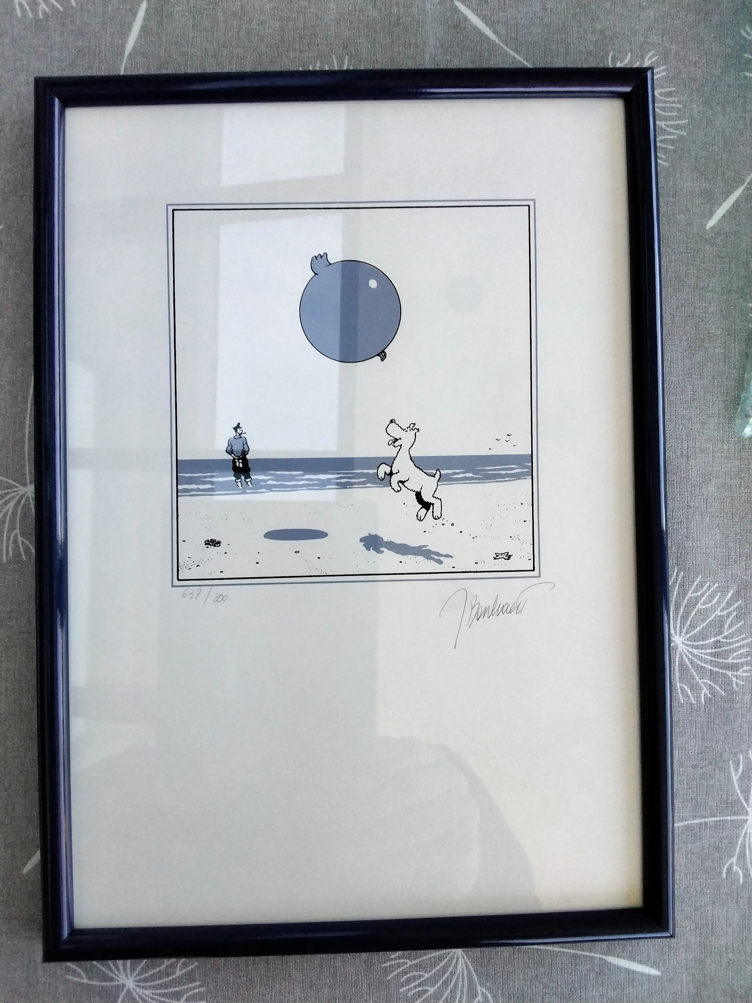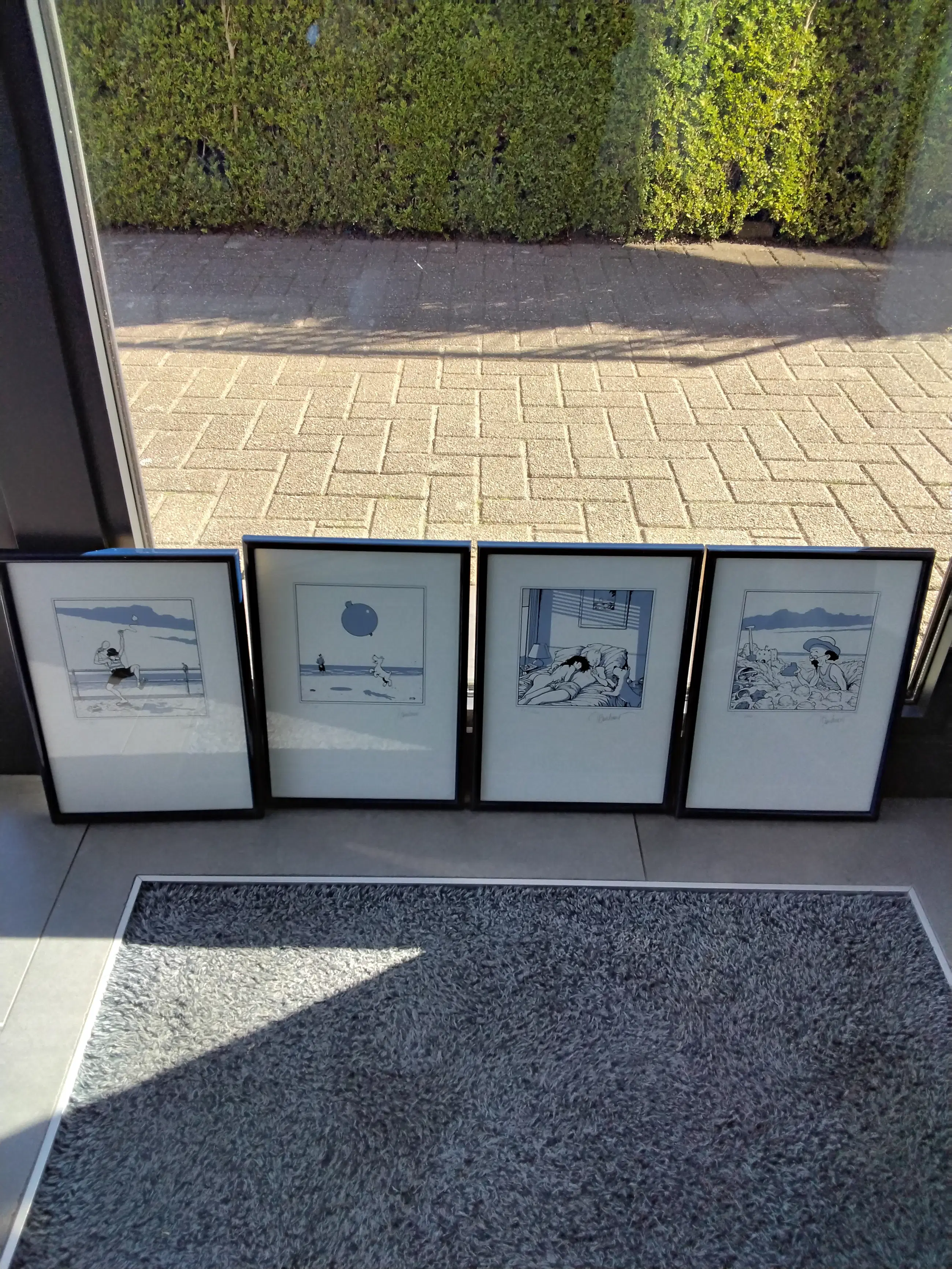 4 prachtige zeefdrukken van kuifje serie van Jan Bosschaert handgesineerd en zeer goed ingekaderd 637/800