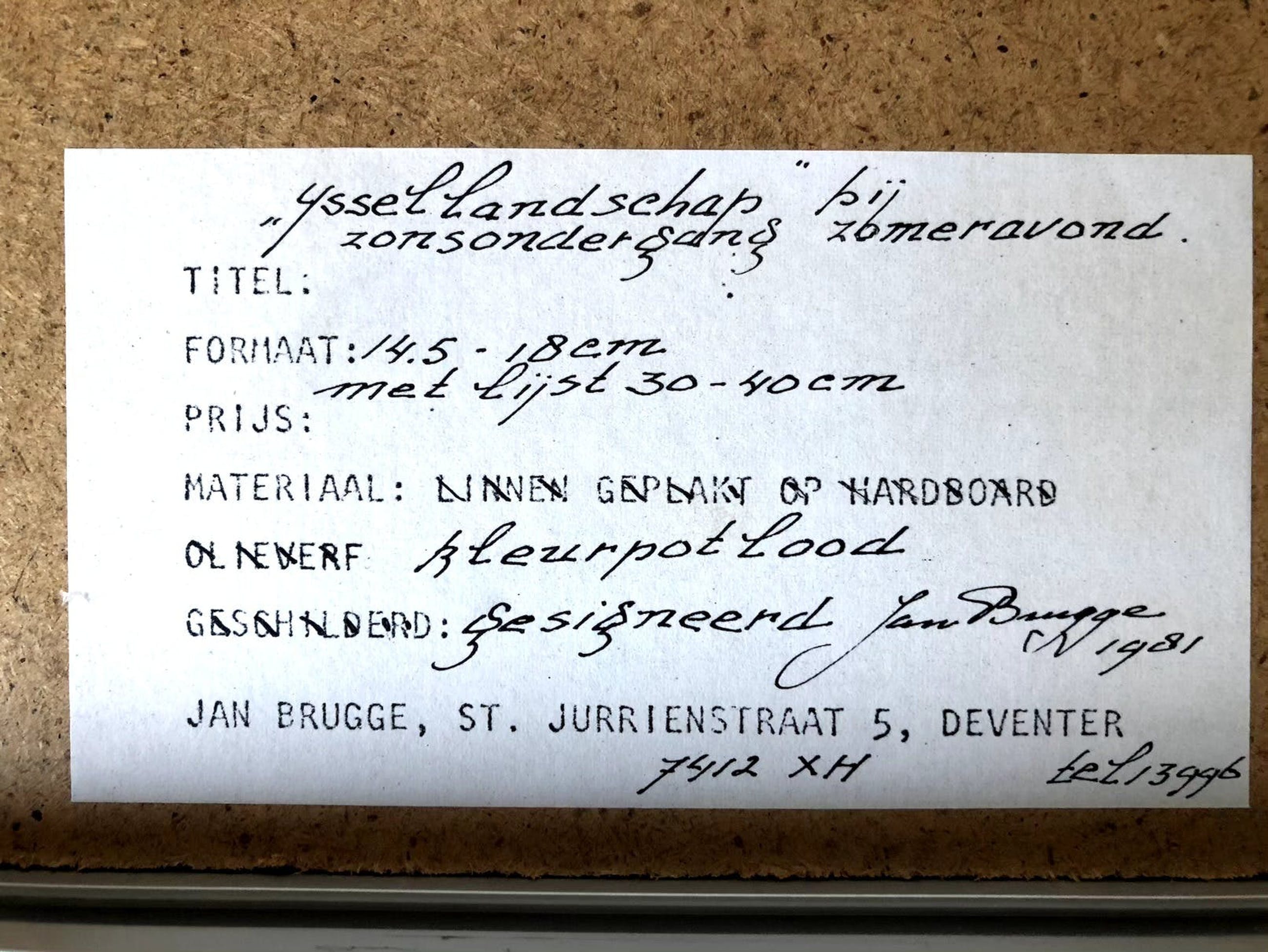 JC 645 A5 Jan Brugge IJssellandschap bij zonsondergang zomeravond Kleurpotlood Tekening 1981 14 x 18 cm 30 x 40 cm