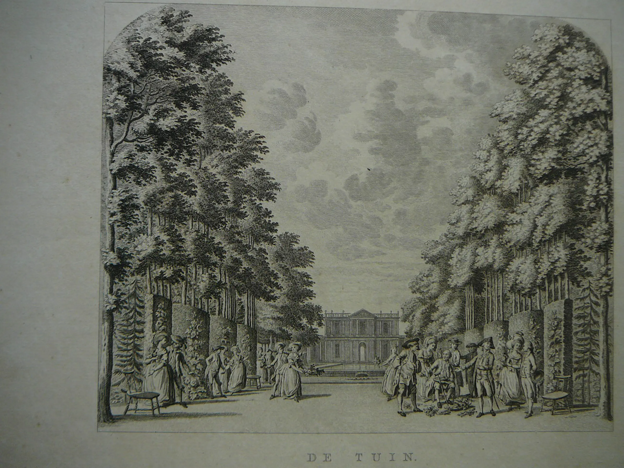 Mooie originele Gravure van het Decor met tuin in de Nieuwe Schouwburg te Amsterdam 1788 getekend door Jan Bulthuis naar C. Henning Afm Papier 31,3 x 37,8 cm