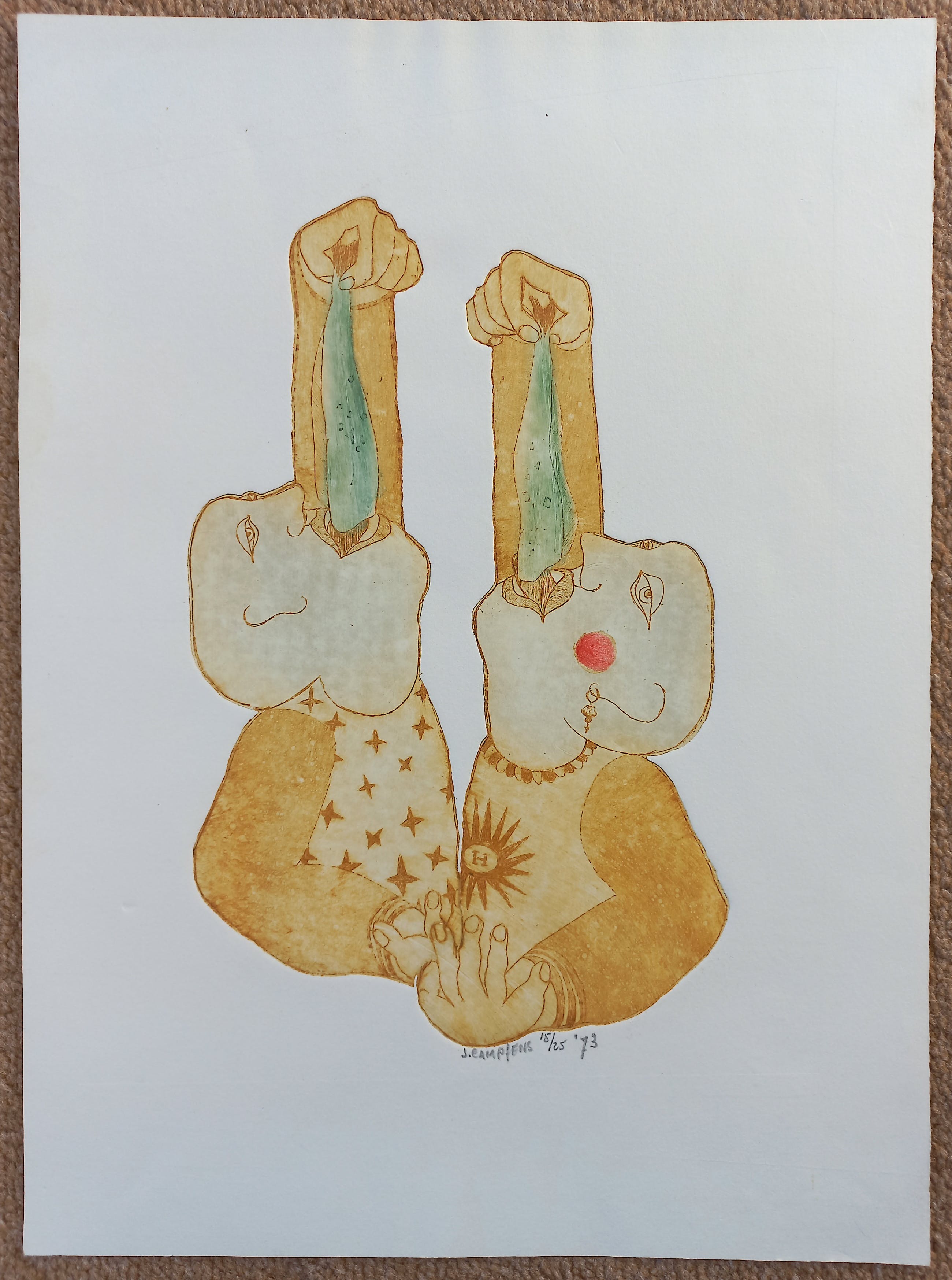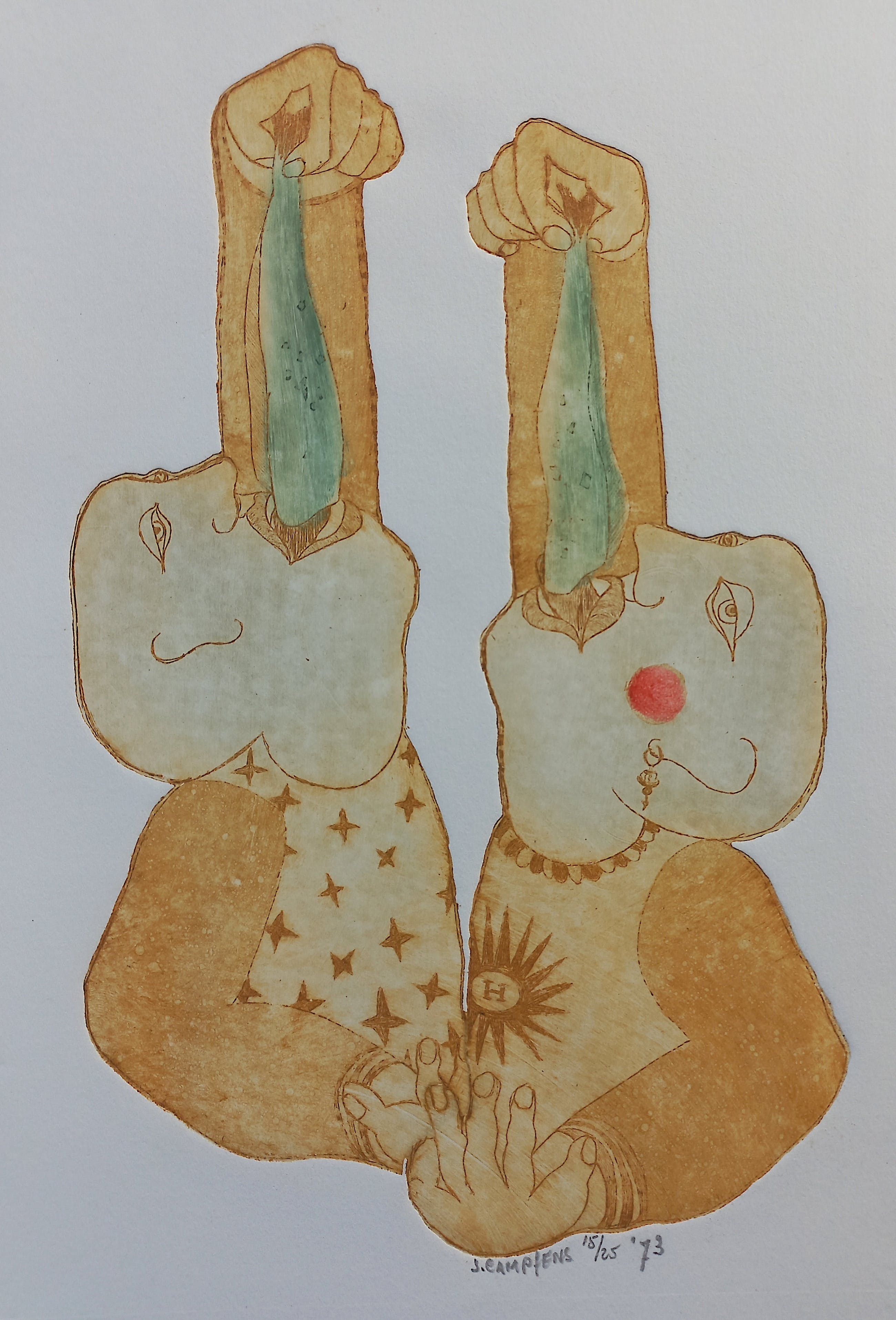 Leuk werkje van Jan Campfens. Aquatint ets op papier, met potlood gesigneerd, gedateerd (‘73) en genummerd (15/25). In zeer goede conditie.
