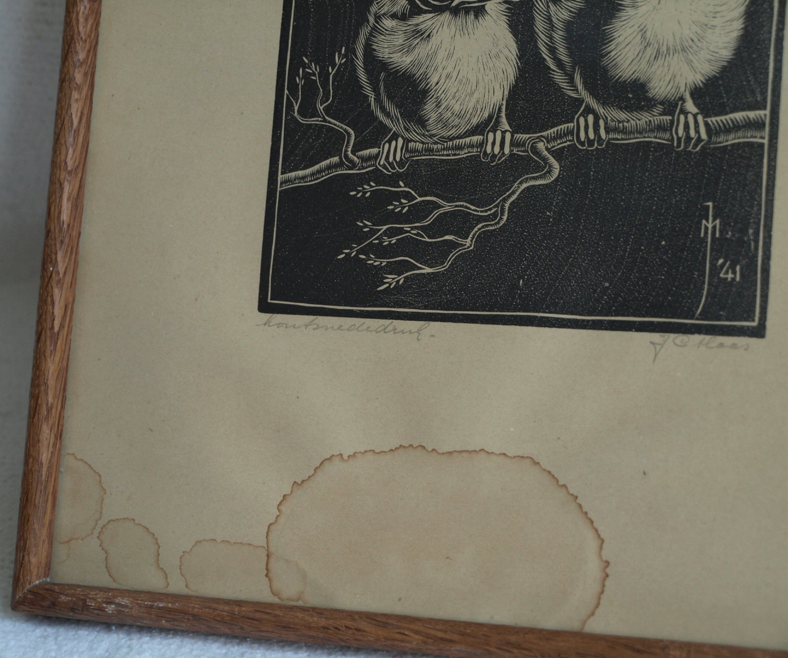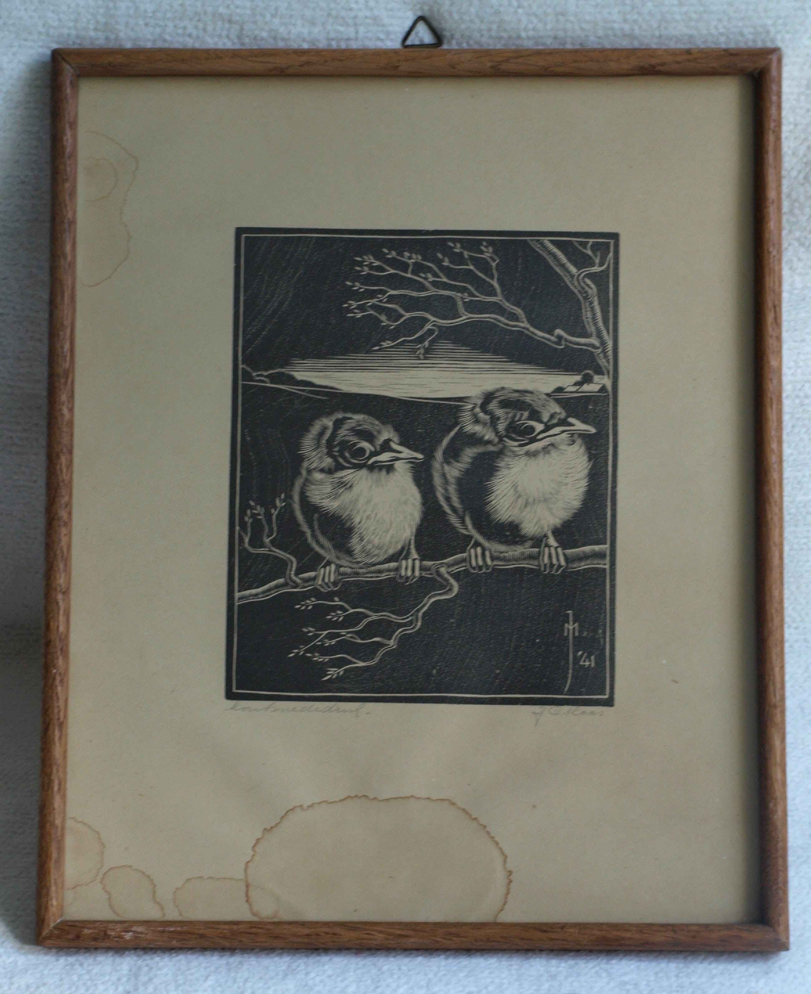 Een ingelijste houtsnede uit 1941 van de Nederlandse kunstenaar Jan Christiaan Maas (1916-1993).