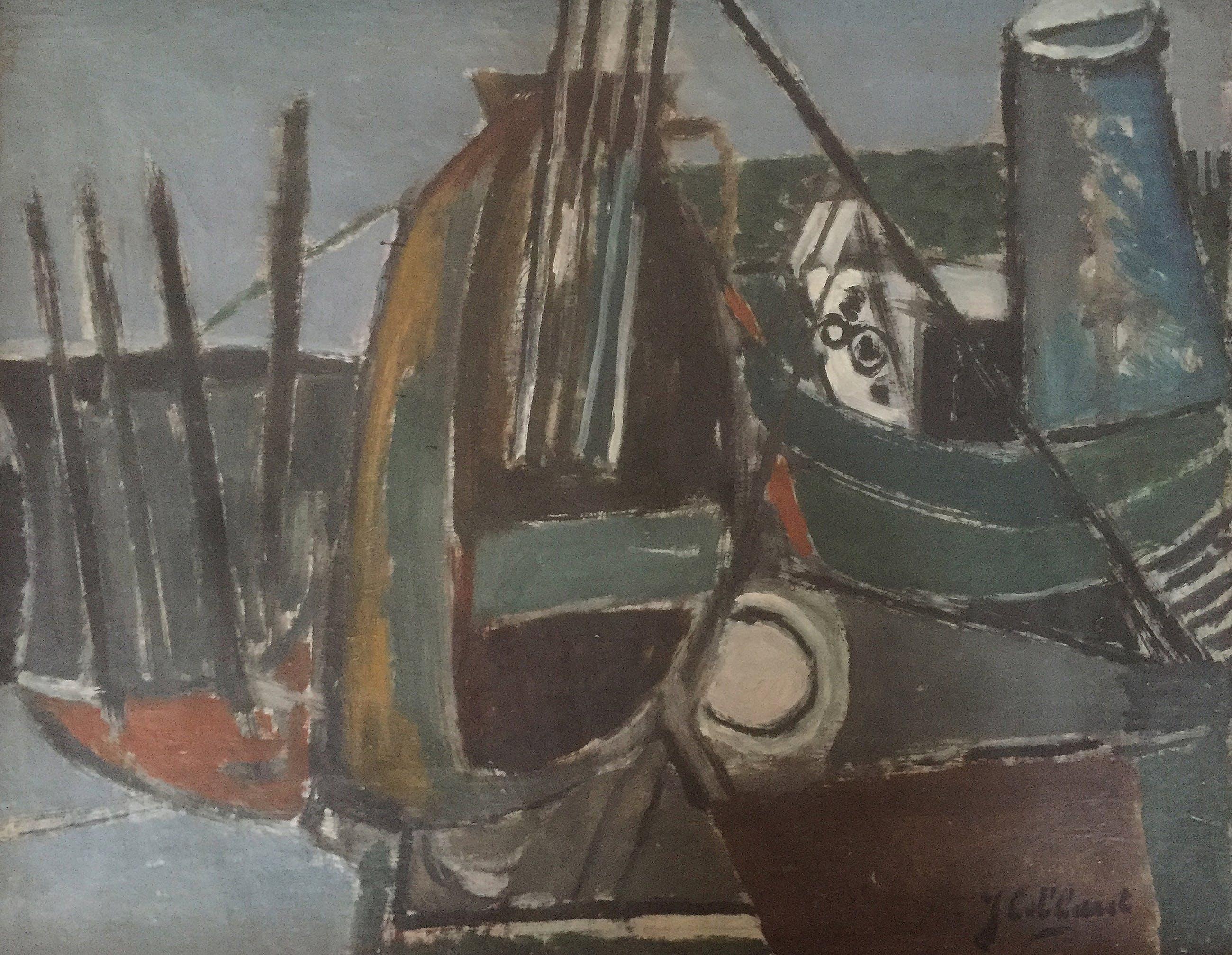 Zeldzaam schilderij uit de jaren 50 met boottafereel. Kenmerkend voor deze periode na de oprichting van Cobra , is de spontane vormgeving. In deze periode breekt de kunstenaar internationaal door. Succesvolle tentoonstellingen en onderscheidingen volgen elkaar steeds sneller op. Meerdere musea in België en in het buitenland kopen werk van Jan Cobbaert. In 1958 wordt door de Belgische Staat een monografie aan hem gewijd.