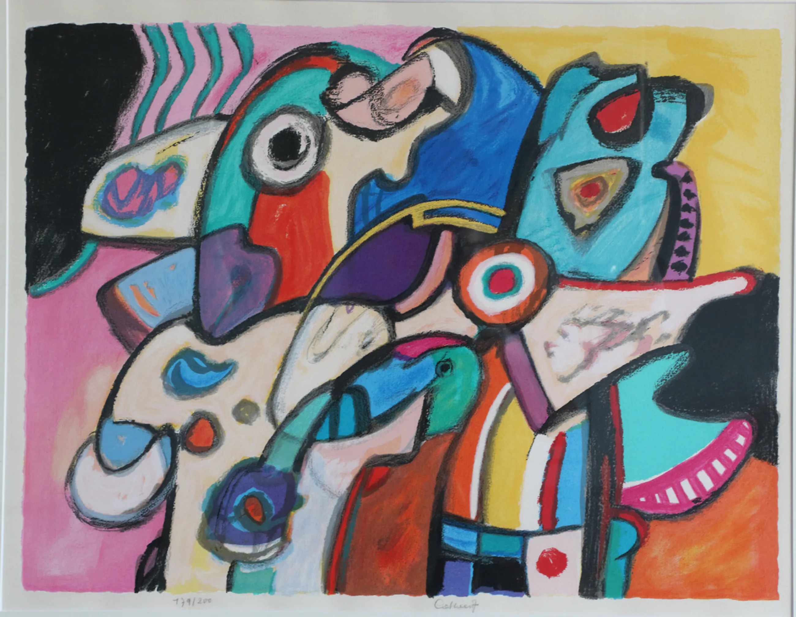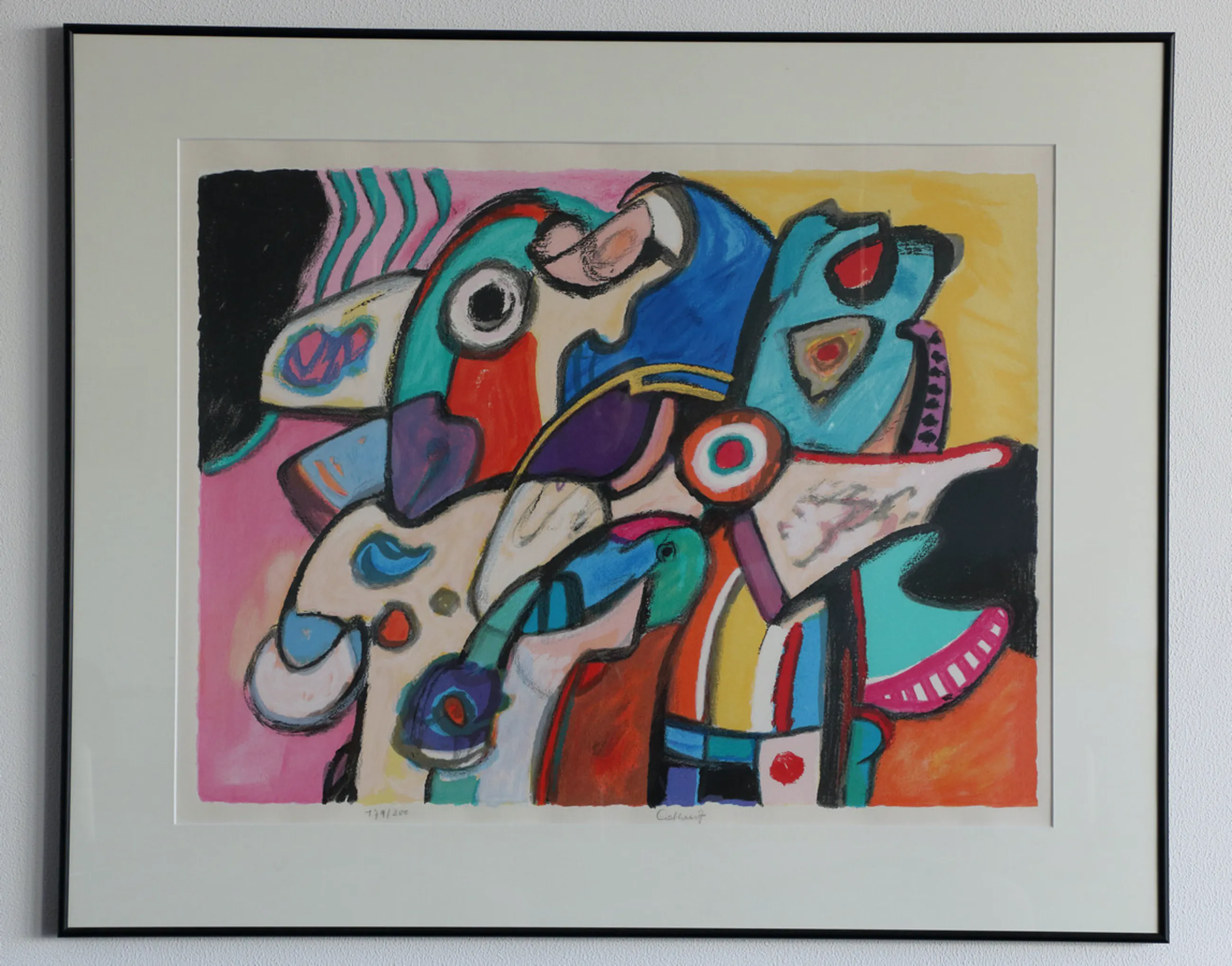 Kleurrijke en levendige zeefdruk van de Belgische schilder Jan Cobbaert.