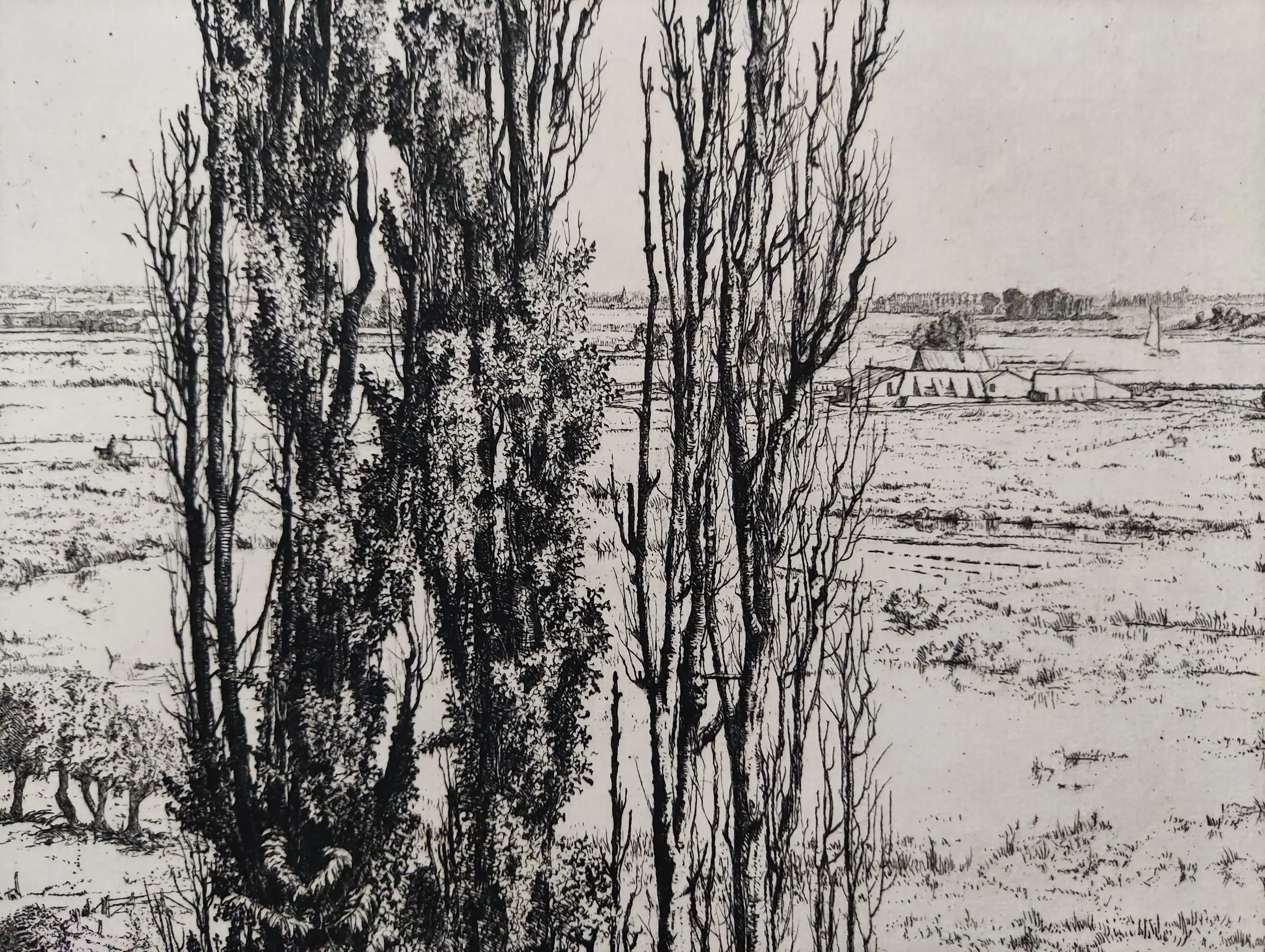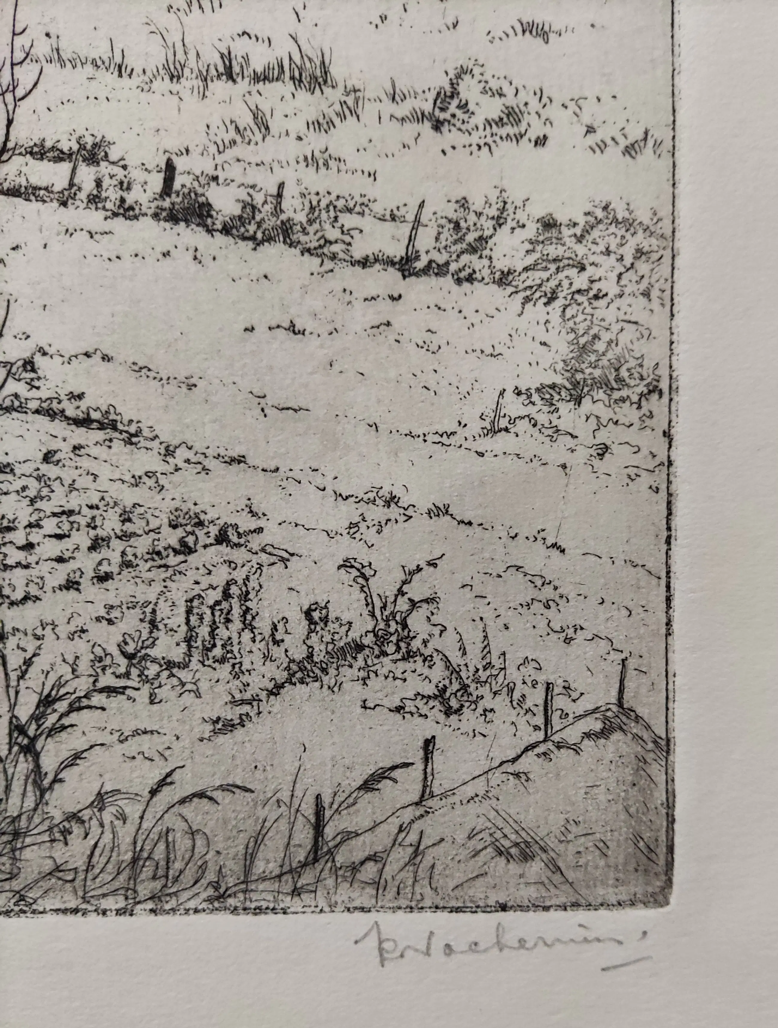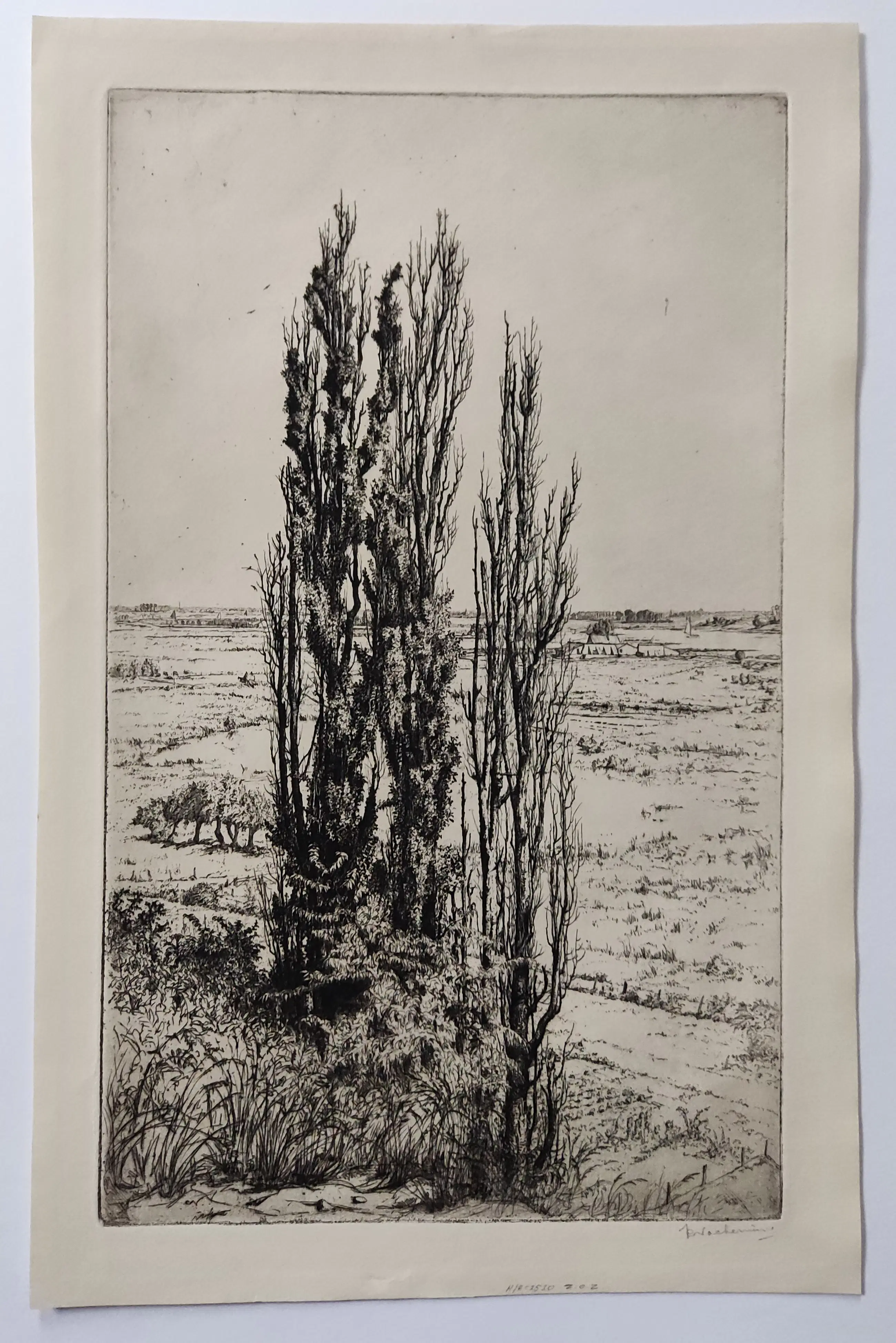 Ets uit 1923. Potlood gesigneerd rechtsonder. Monogram in de plaat linksonder. Beeldmaat 41x25 cm. Bladmaat 46,5x30 cm. Losbladig. Jan Coenraad Nachenius werd geboren te Amsterdam op 12 augustus 1890 en overleed te Garderen op 10 maart 1987. Leerling van G.W. Dijsselhof en G.C. Haverkamp. Glaskunstenaar , graficus, schilder en tekenaar. Landschap en stilleven. Lid van de kunstenaarsverenigingen Sint Lucas en De Grafische.