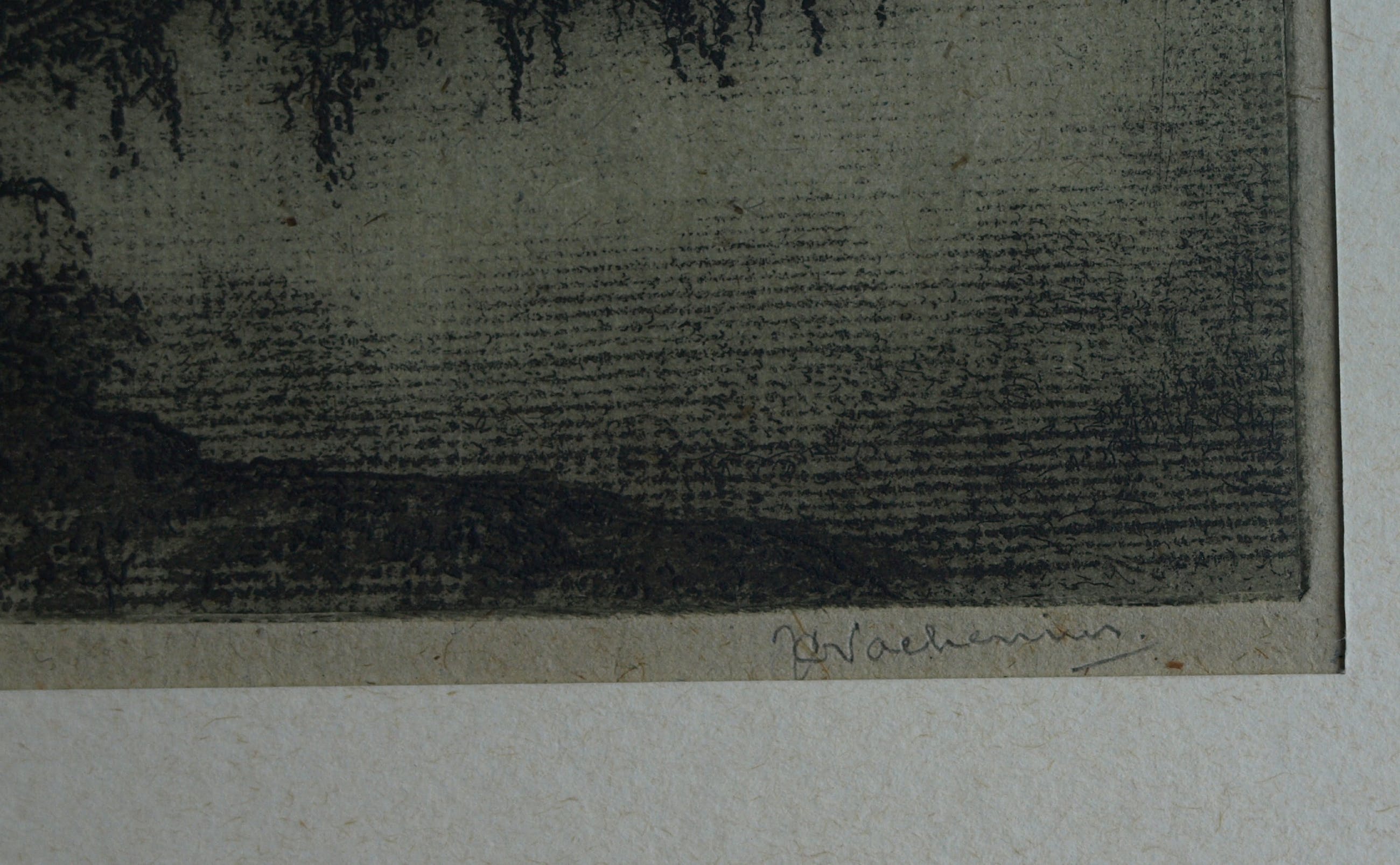 Een ets van de Nederlandse kunstenaar Jan Coenraad Nachenius (1890-1987). -Gesigneerd rechtsonder met potlood. Genummerd linksonder met potlood. -Gemaakt in een oplage van 15 exemplaren. Dit is nr. 8. -Niet ingelijst, wel achter een papieren passe-partout. -Afmetingen:Passe-partout, 18 x 24 cm. Beeld/ets, 5,5 x 14,5 cm. -Herkomst: Een kunstverzamelaar. -Conditie: In goede staat. Zie ook de foto’s voor een eigen indruk.