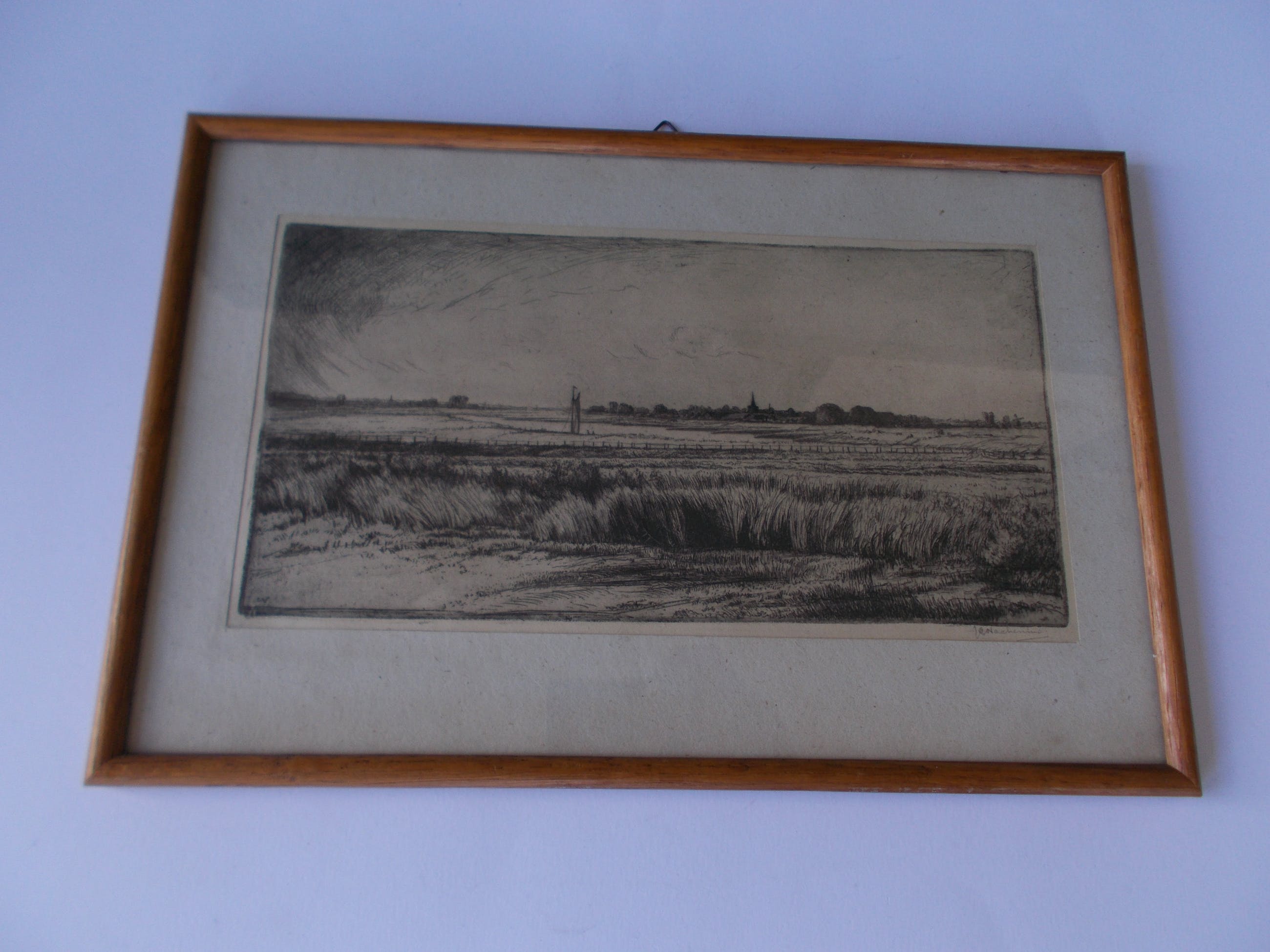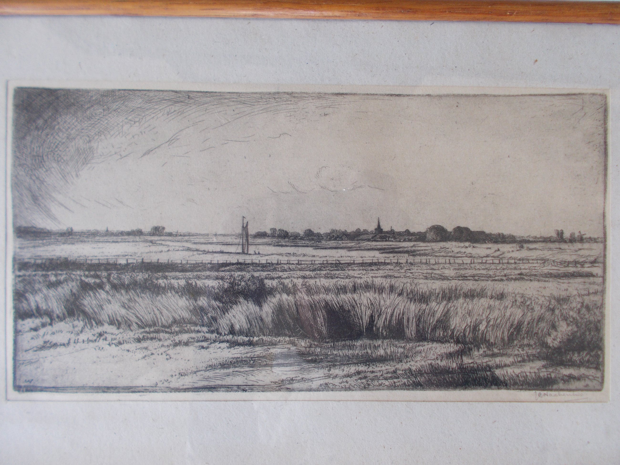 Droge Naald met gezicht op de IJSSEL nabij Deventer met potlood gesigneerd.