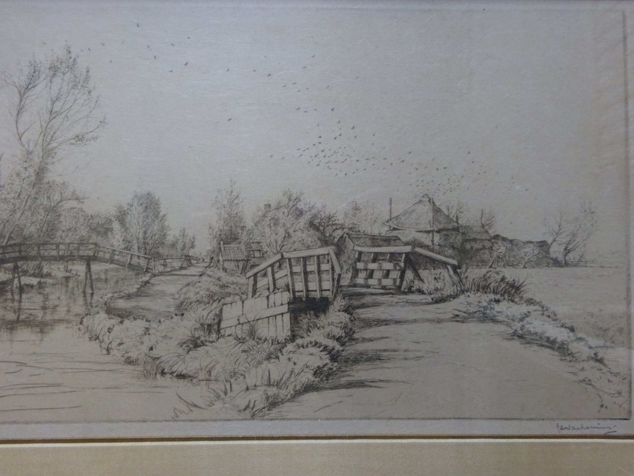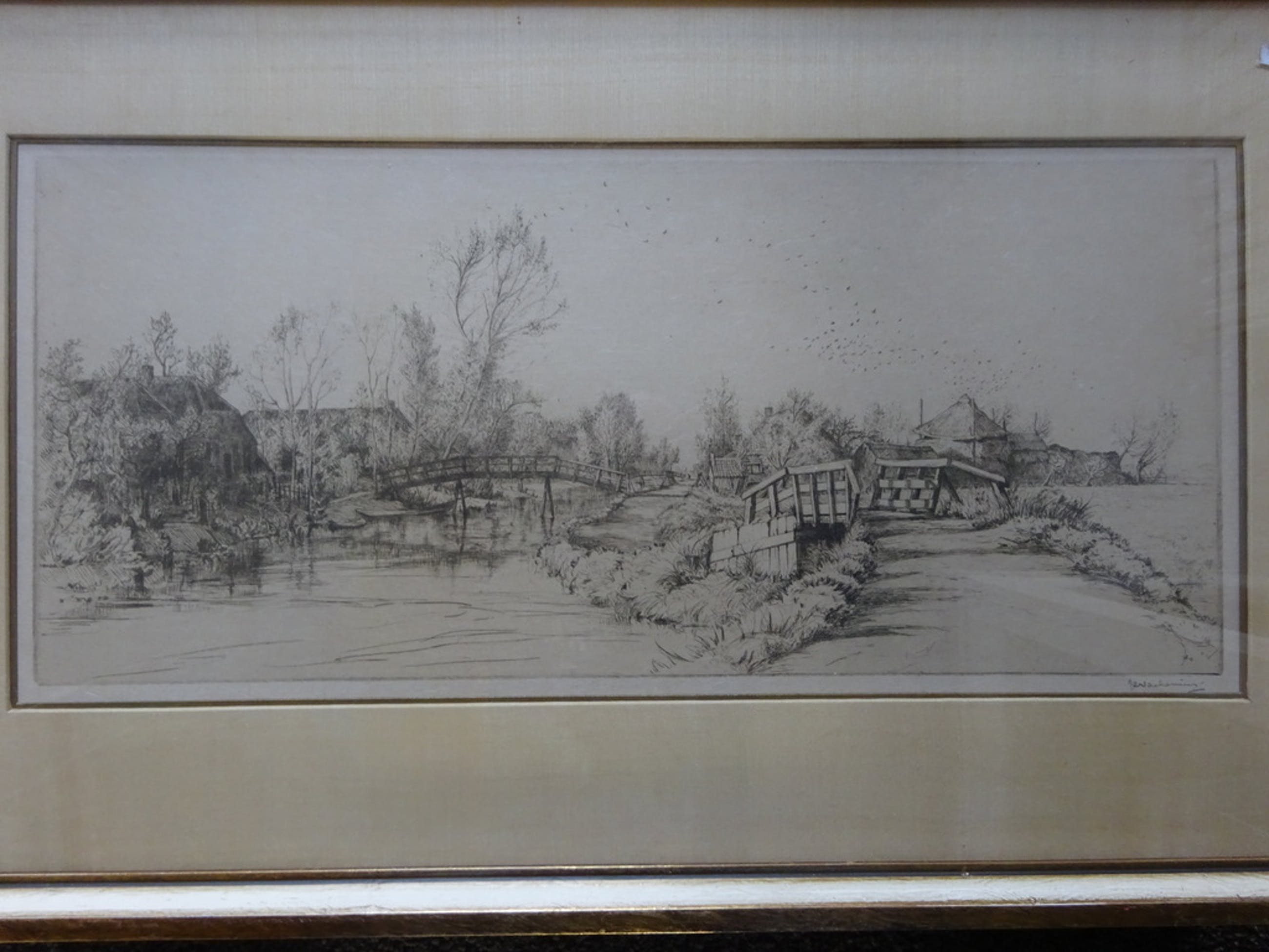 Afmetingen: Ets, 20 x 46,5 cm. Met lijst: 38 x 65 cm.
