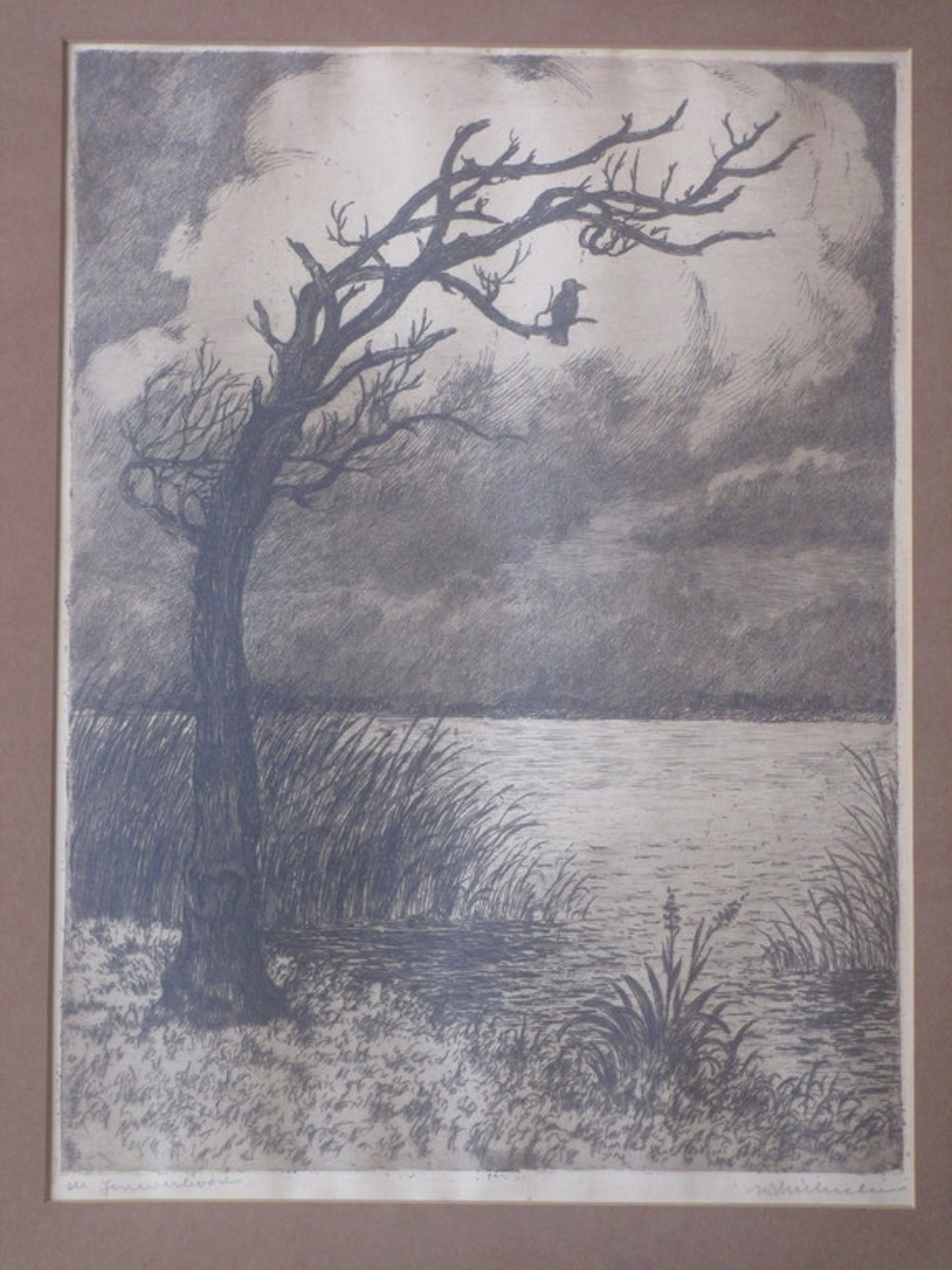 Ets onder passepartout, beeldmaat 31x23, p.p.maat 46x37
