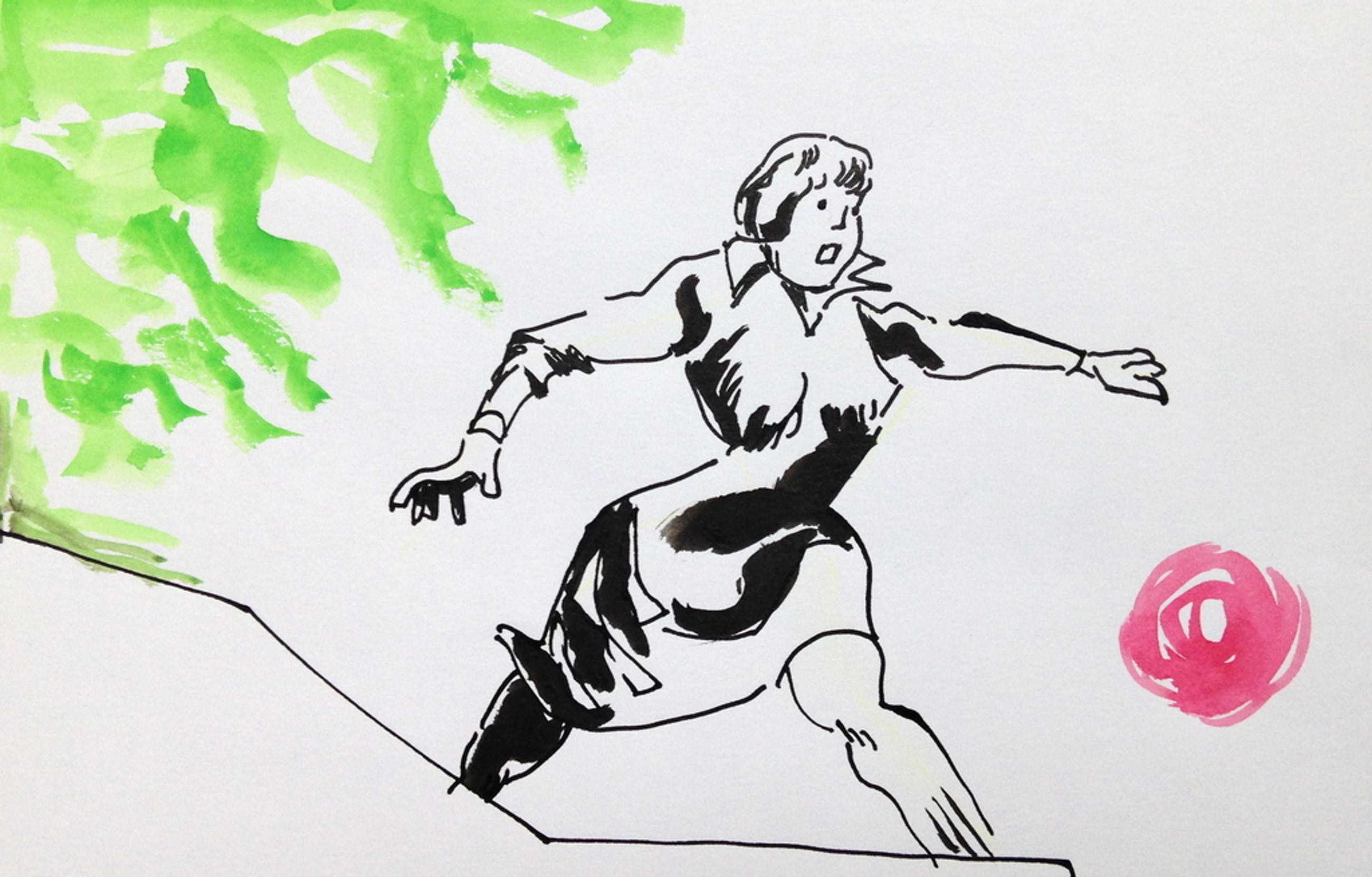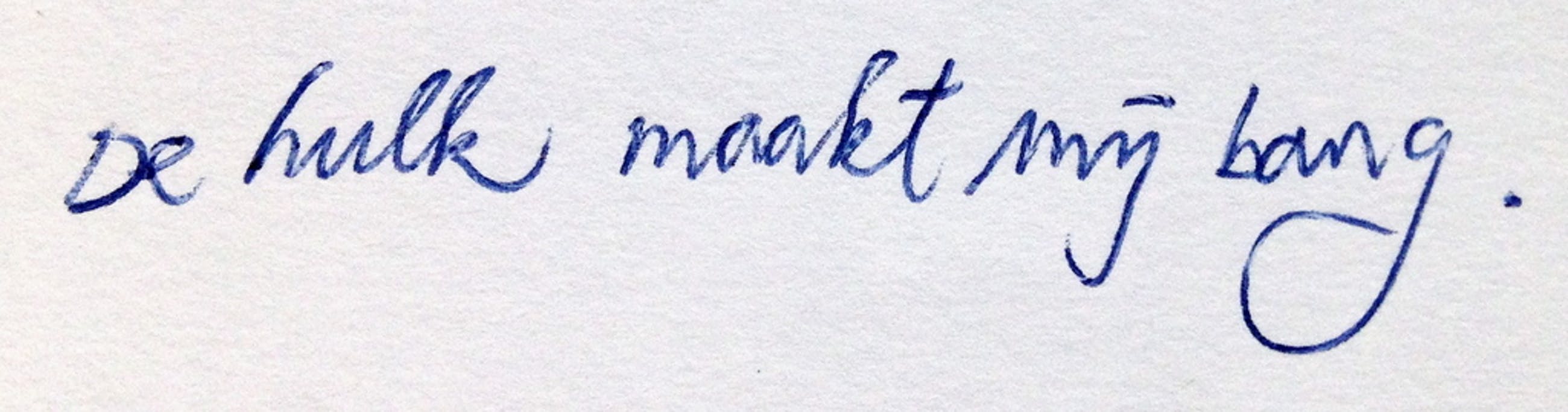 Prachtige aquarel van de bekende Utrechtse kunstenaar Jan Coolen. Het werk uit 2003 (linksboven gedateerd 17-7-03) Titel is: De hulk maakt mij bang