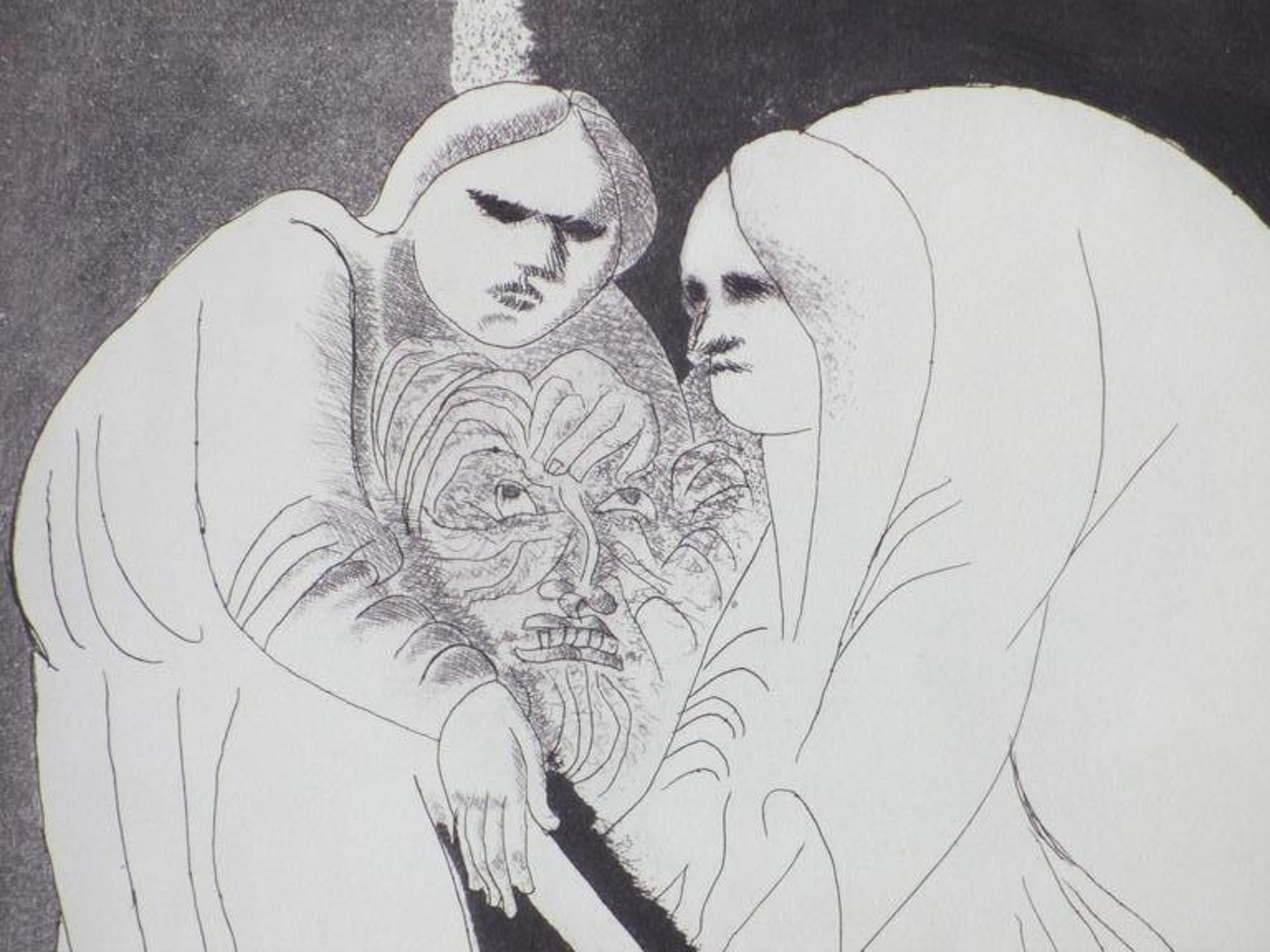 Bijzondere ets door Jan Cox, bekend Belgisch kunstenaar.