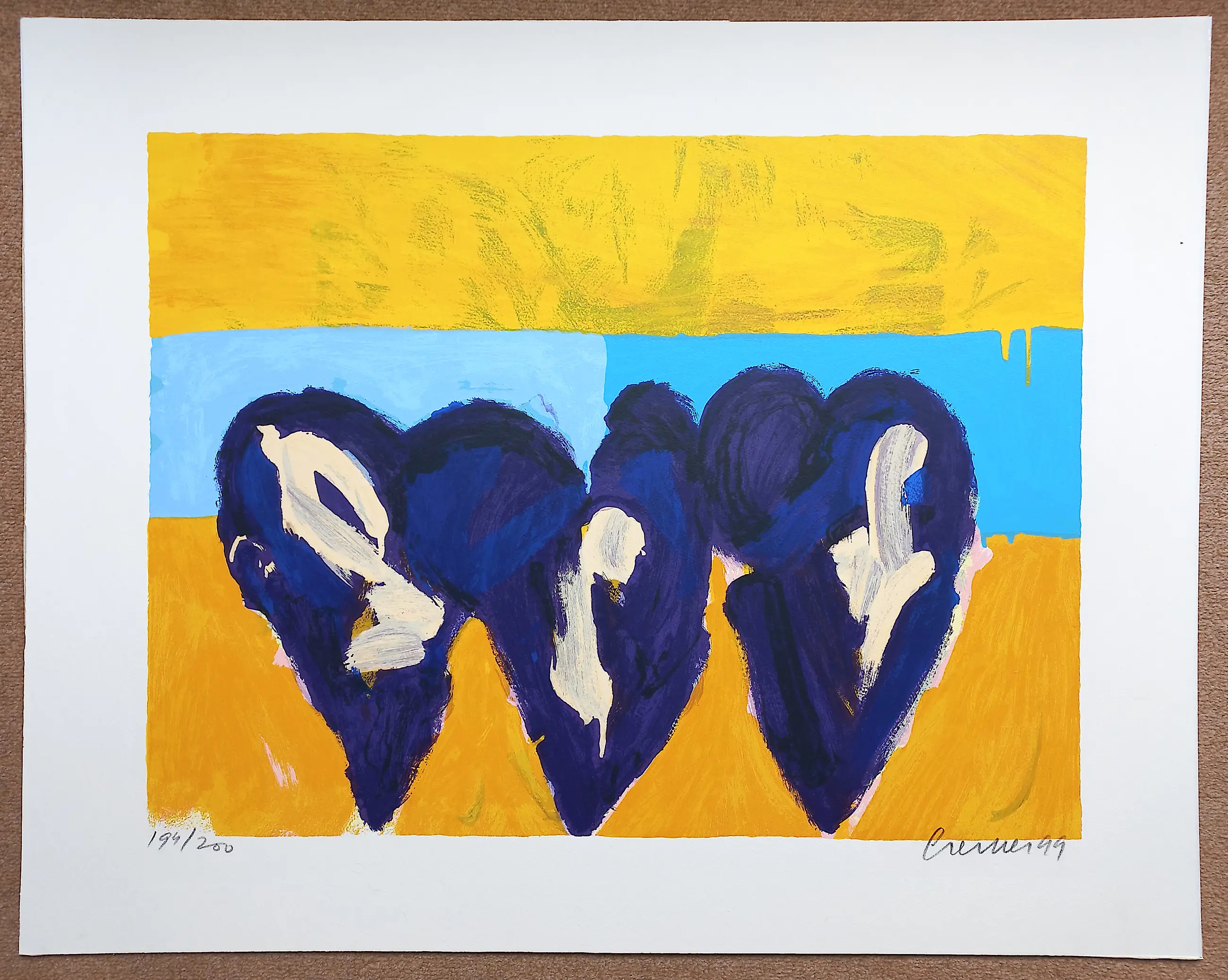 Mooi, kleurrijk werk van Jan Cremer. Zeefdruk op geschept papier, met potlood gesigneerd, gedateerd (’99) en genummerd (194/200). In goede conditie.