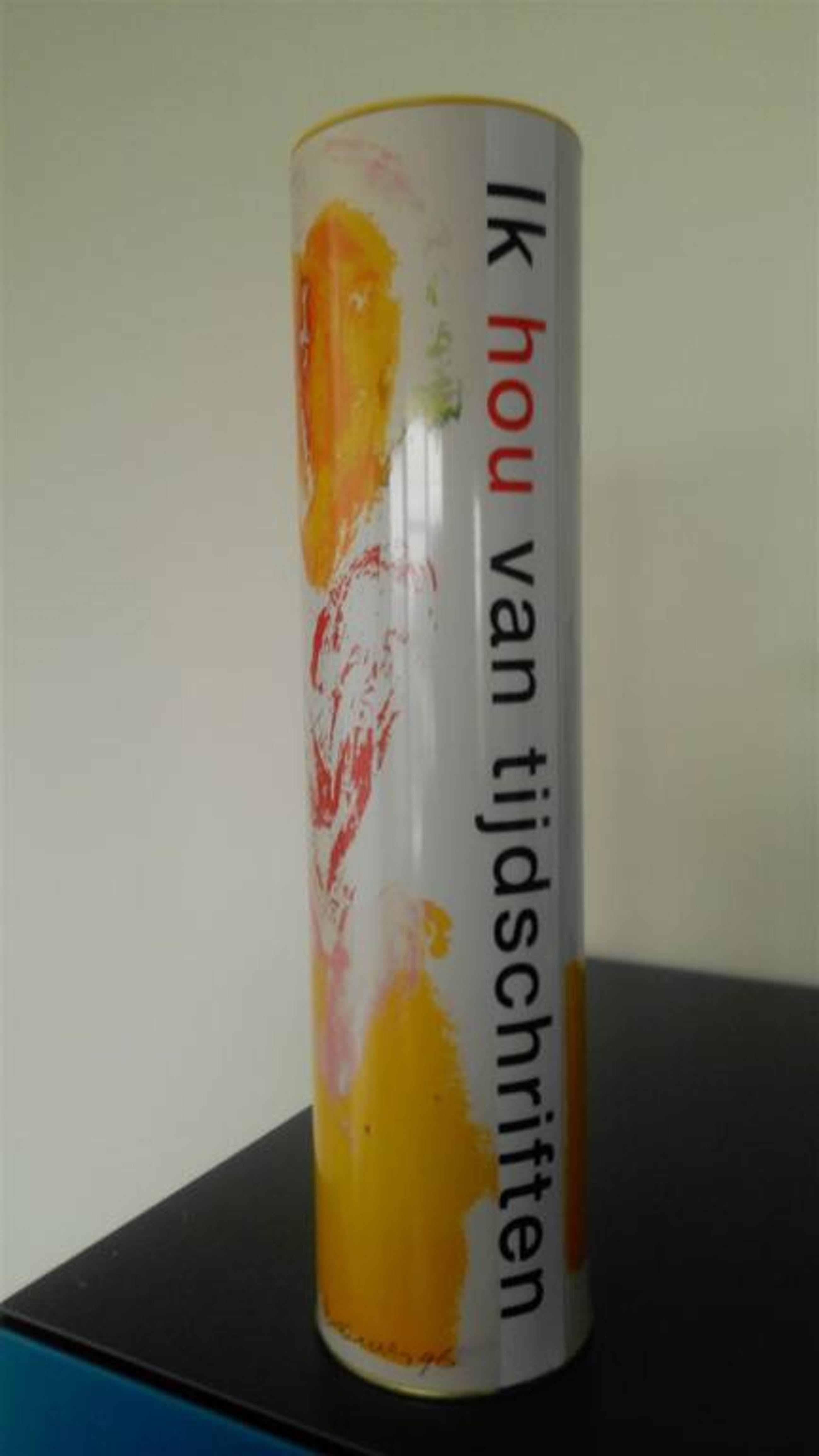 Jan Cremer Tulpendecoratie op Tijdschriftenkoker met tekst : Ik hou van tijdschriften