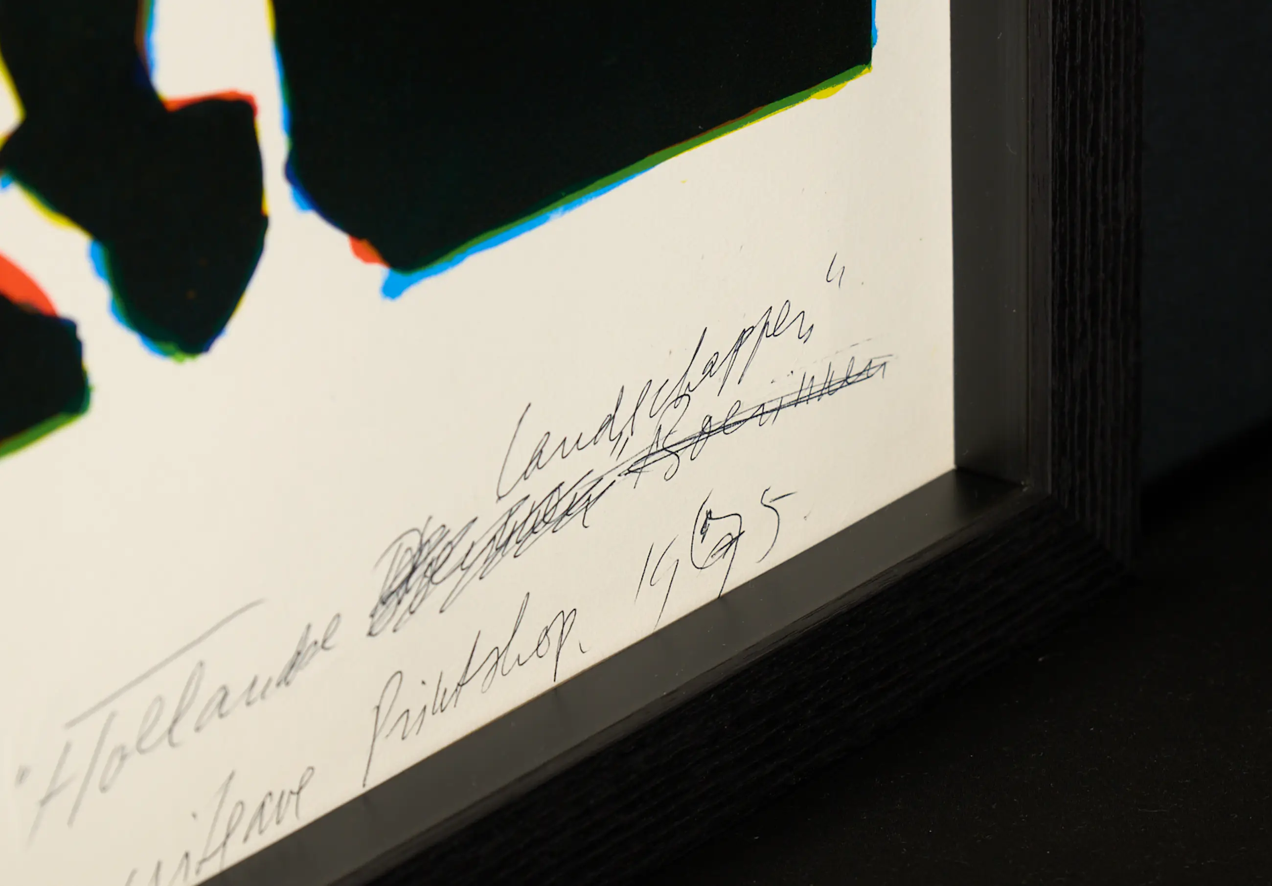 Das Werk ist professionell in einem maßgefertigten schwarzen Holzrahmen aus den Niederlanden präsentiert, vorne und hinten verglast mit Plexiglas® Optical HC für optimalen UV-Schutz, Kratzfestigkeit und minimale Reflexion.