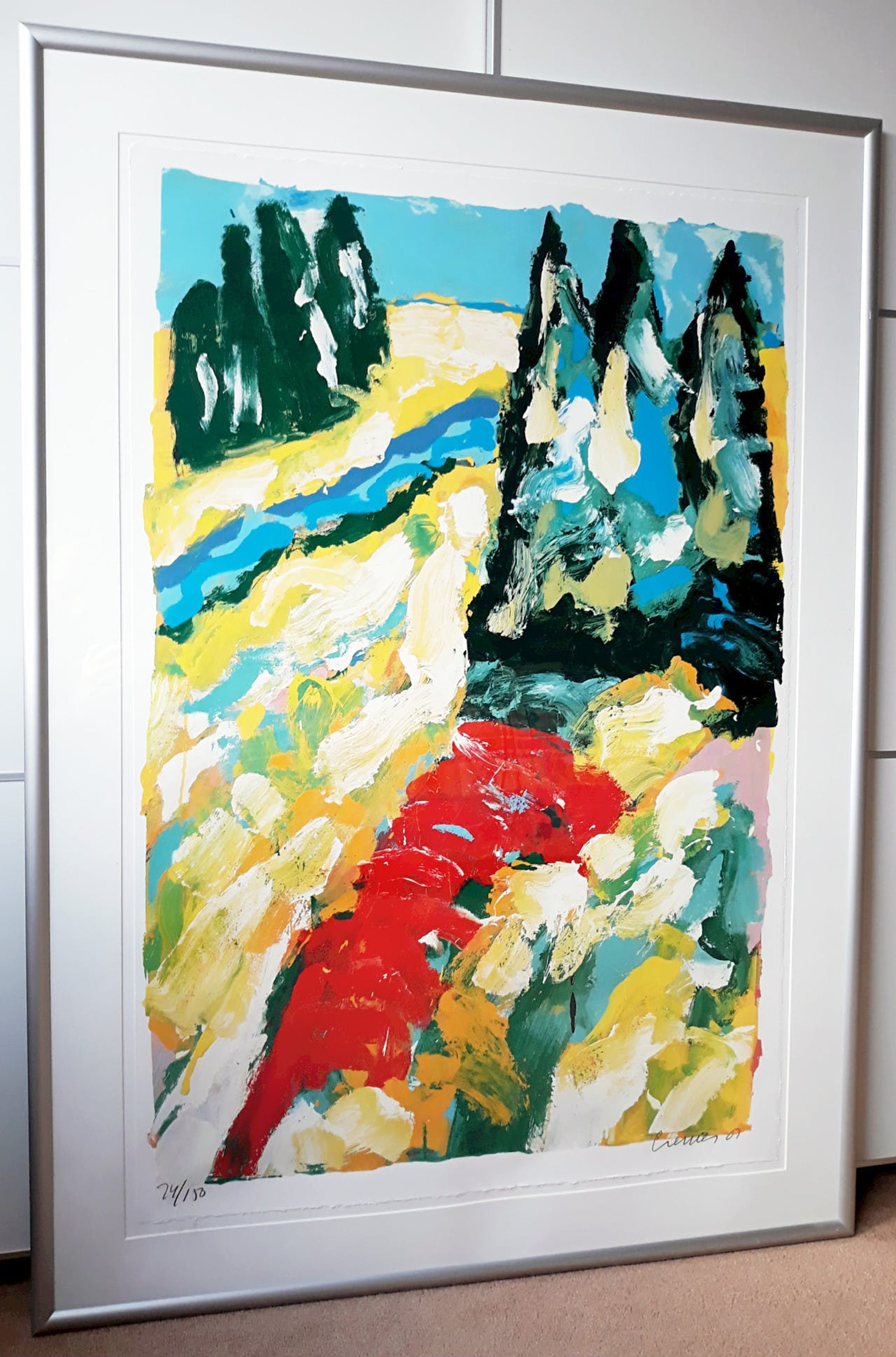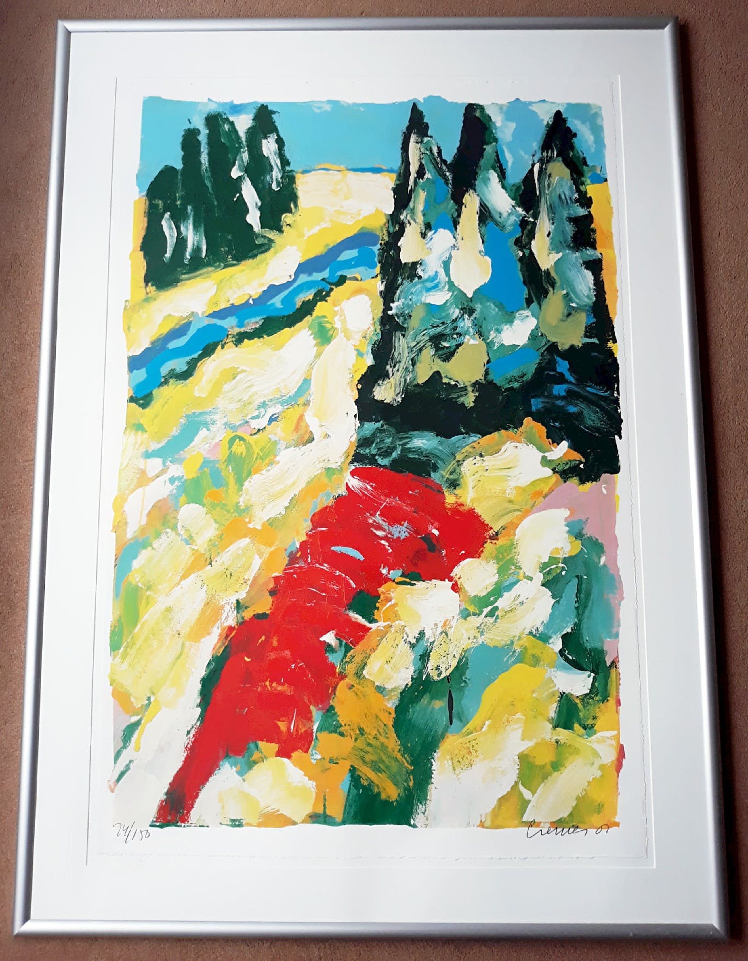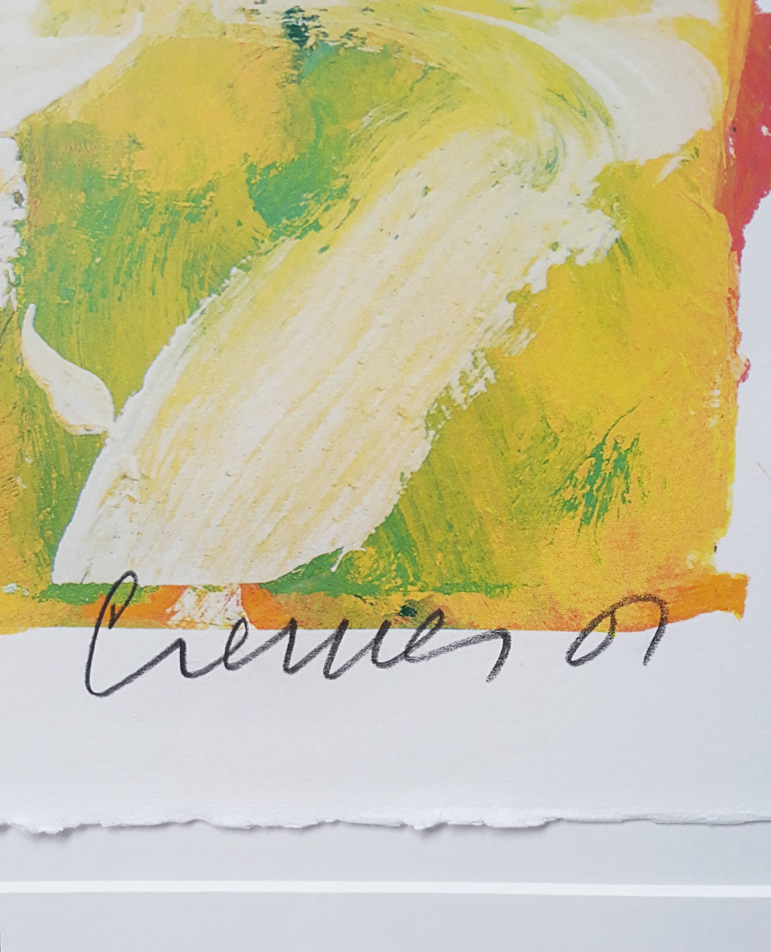 Zeer mooi, groot werk van Jan Cremer uit 2001. Zeefdruk op Rives papier, met potlood gesigneerd, gedateerd en genummerd (24/150). In strakke aluminium lijst, achter glas en met zuurvrij passe-partout. In zeer goede conditie, passe-partout golft heel licht onderaan en er zitten wat vuiltjes tussen passe-partout en blad linksonder (zie laatste foto). Afgezien hiervan is het geheel in uitstekende conditie. Alleen de inlijsting is al minimaal 300 euro waard!
