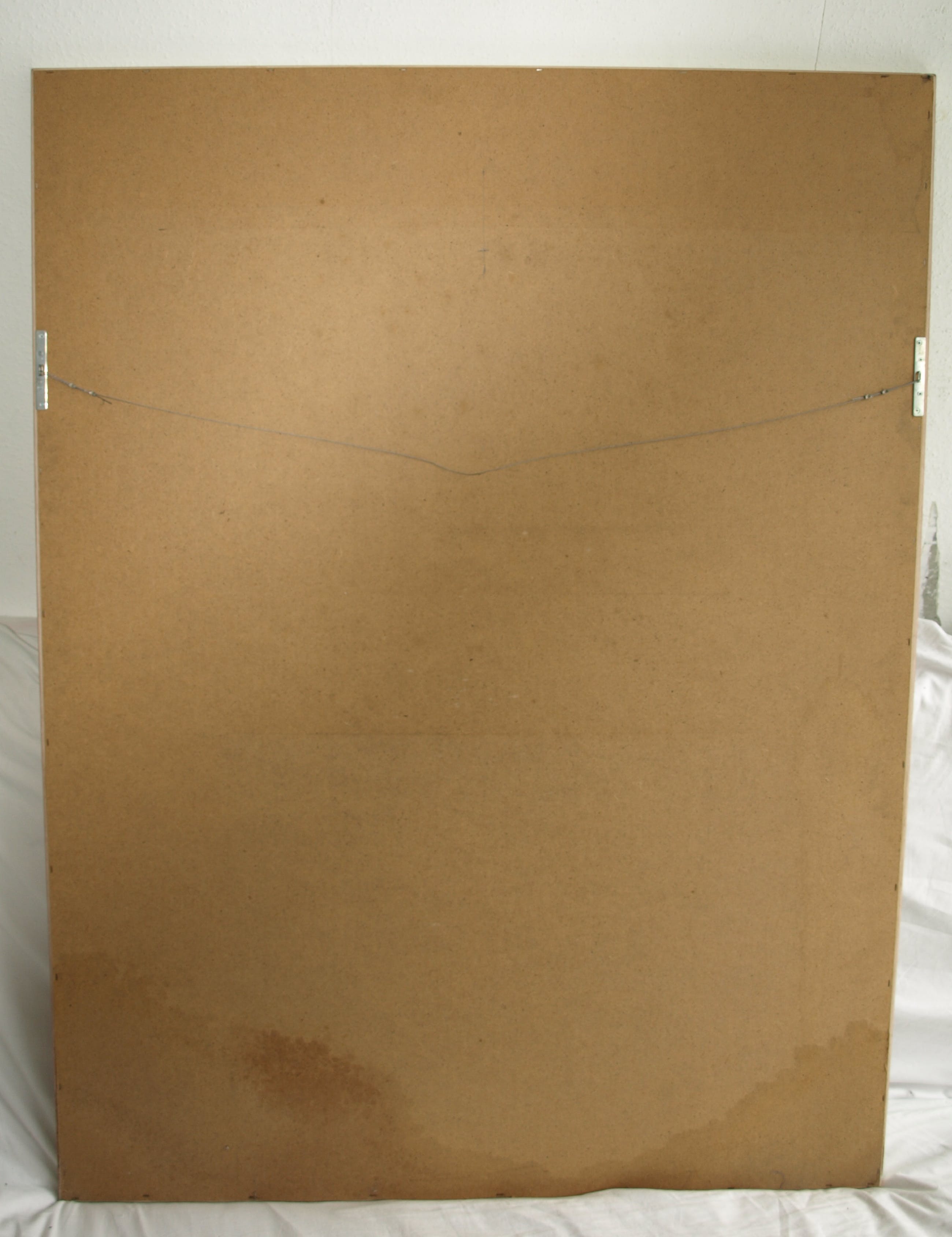 lichte vlekjes. De lijst heeft slijtplekjes. De kartonnen achterplaat heeft aan de onderrand (vocht)vlekken.