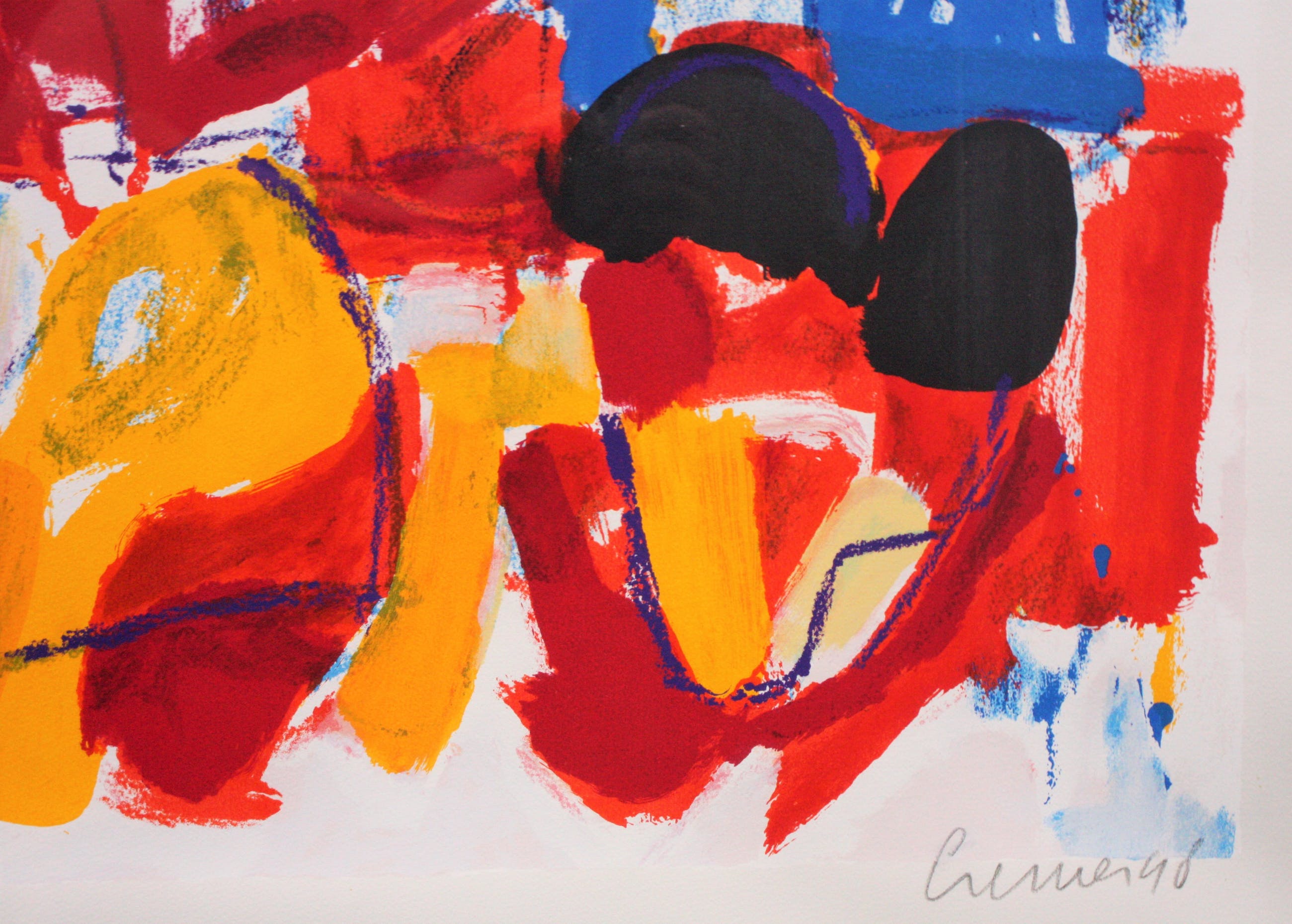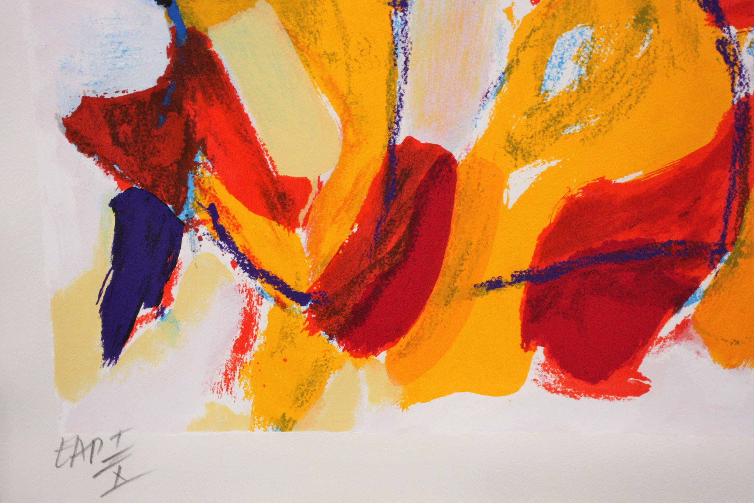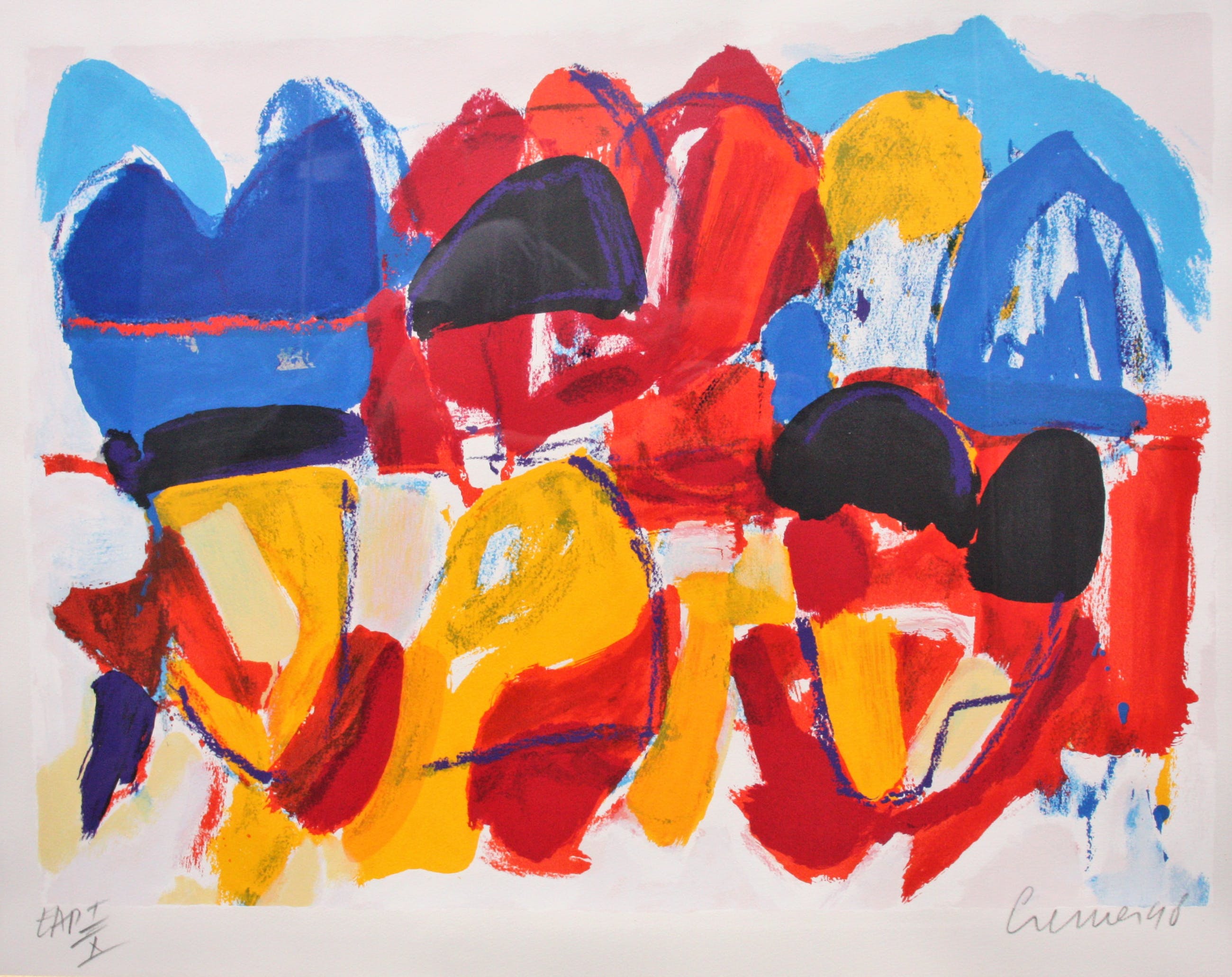 Deze zeefdruk is van Nederlandse kunstenaar Jan Cremer. Op de druk is een kleurrijk tulpenveld te zien. Het werk is 63 x 81 cm (87 x 105 cm inclusief), rechtsonder gesigneerd & gedateerd '98 en linksonder genummerd EAP I/X. De zeefdruk is ingelijst in een passe-partout en achter glas gemonteerd.