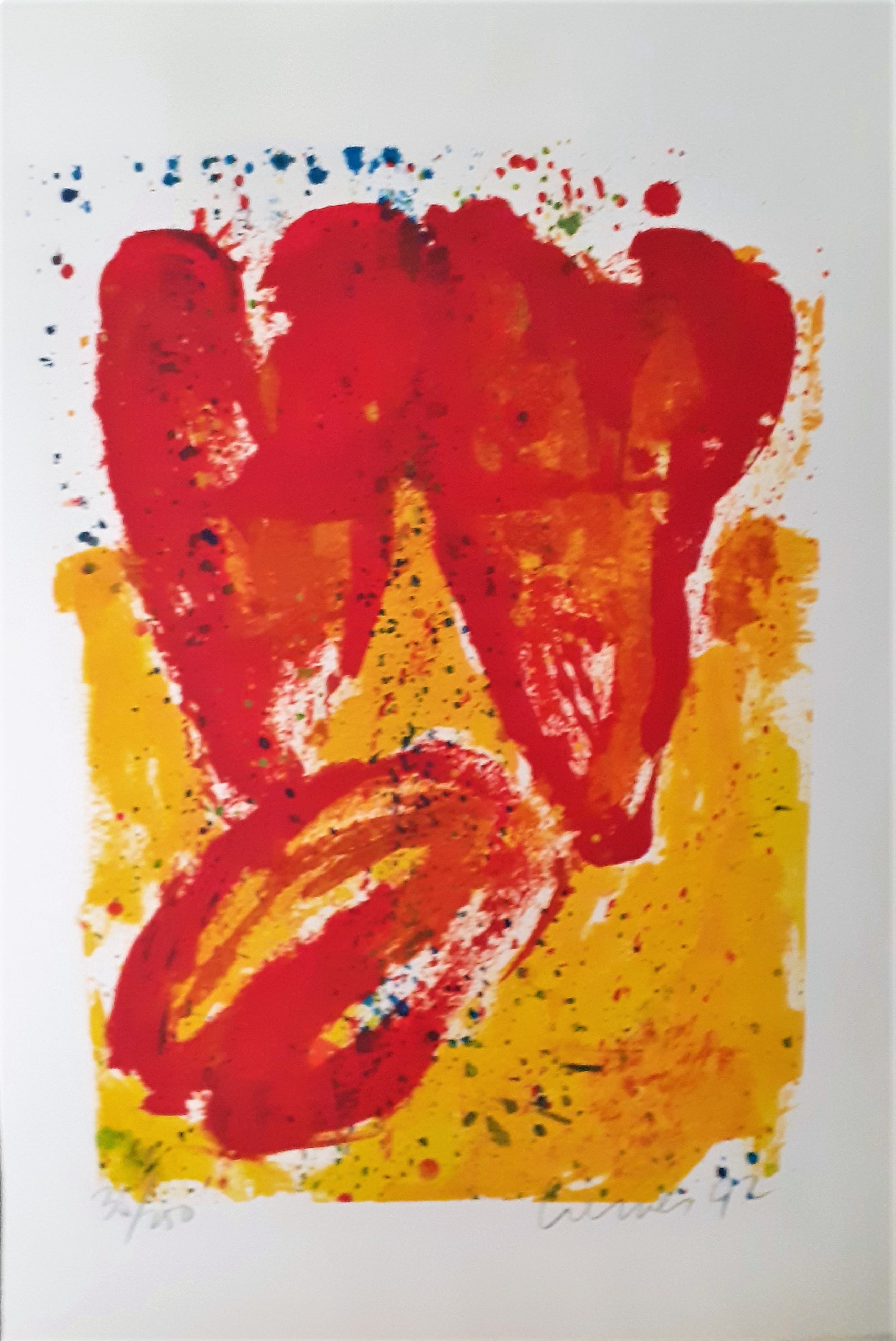 Prachtige, kleurrijke zeefdruk van Jan Cremer uit 1992 Gesigneerd met potlood Genummerd: 35/250