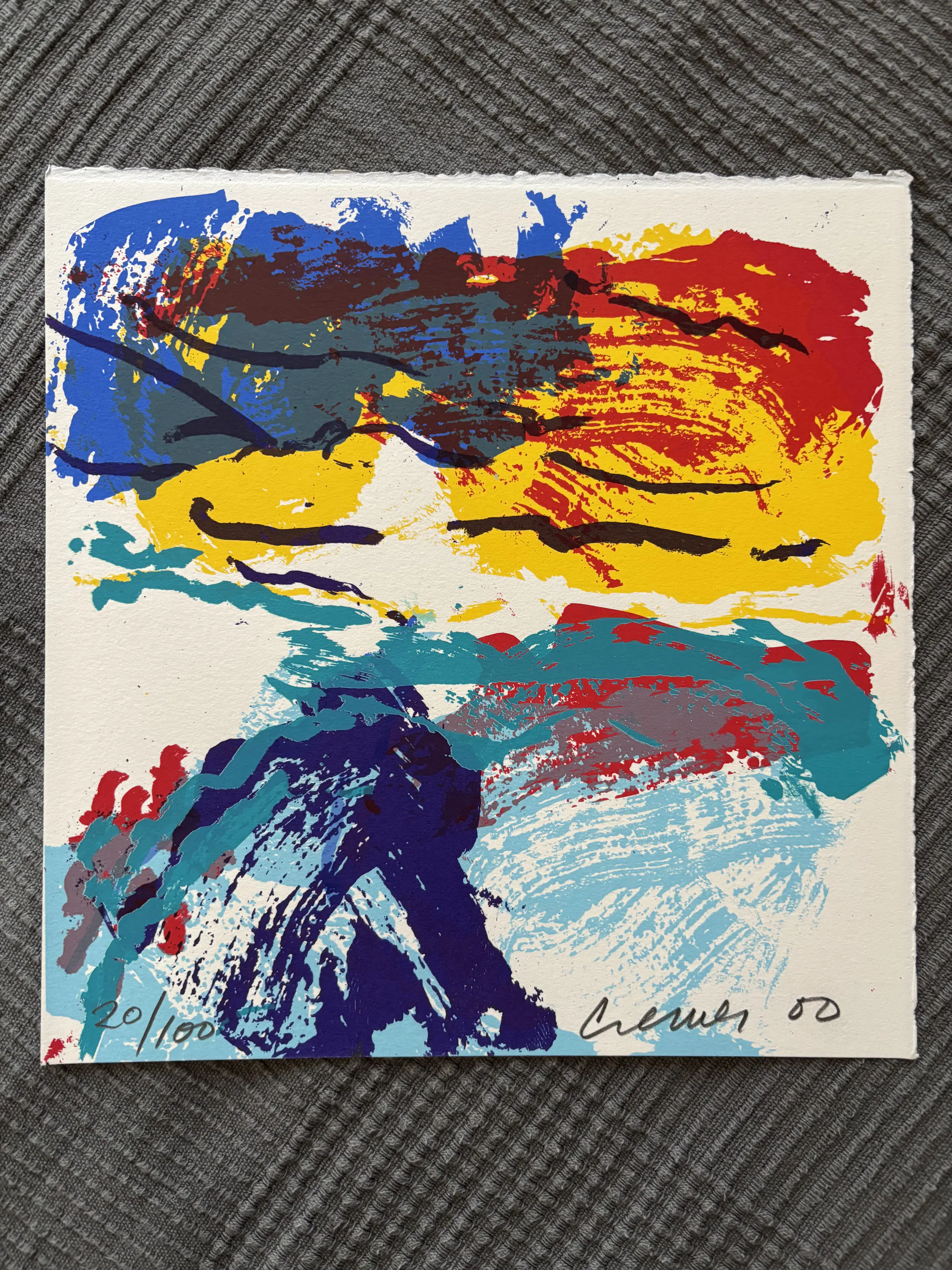 Monografie over Jan Cremer. Eerste editie en speciale uitgave in linnen foedraal met originele gesigneerde zeefdruk. Nummer 20 uit editie van 100.