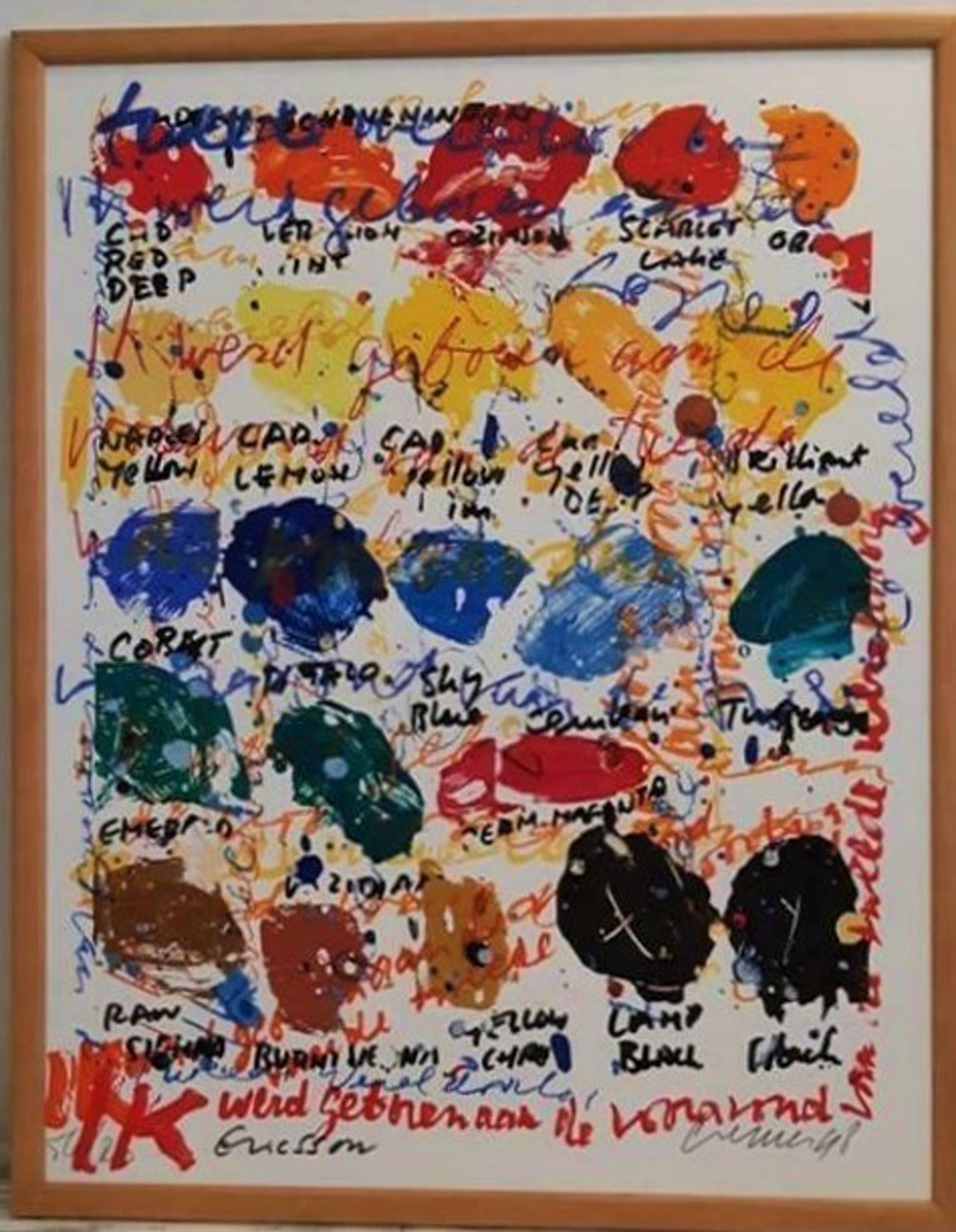 Zeer zeldzame kleurrijke zeefdruk op dik papier van Jan Cremer 'Ik' uit 1998 en kleine oplage! Oplage 80, deze heeft nr. 53 (nr op foto wijkt af van het aangebodene) Ingelijst in houten lijst Afm. 58,5 x 73,5