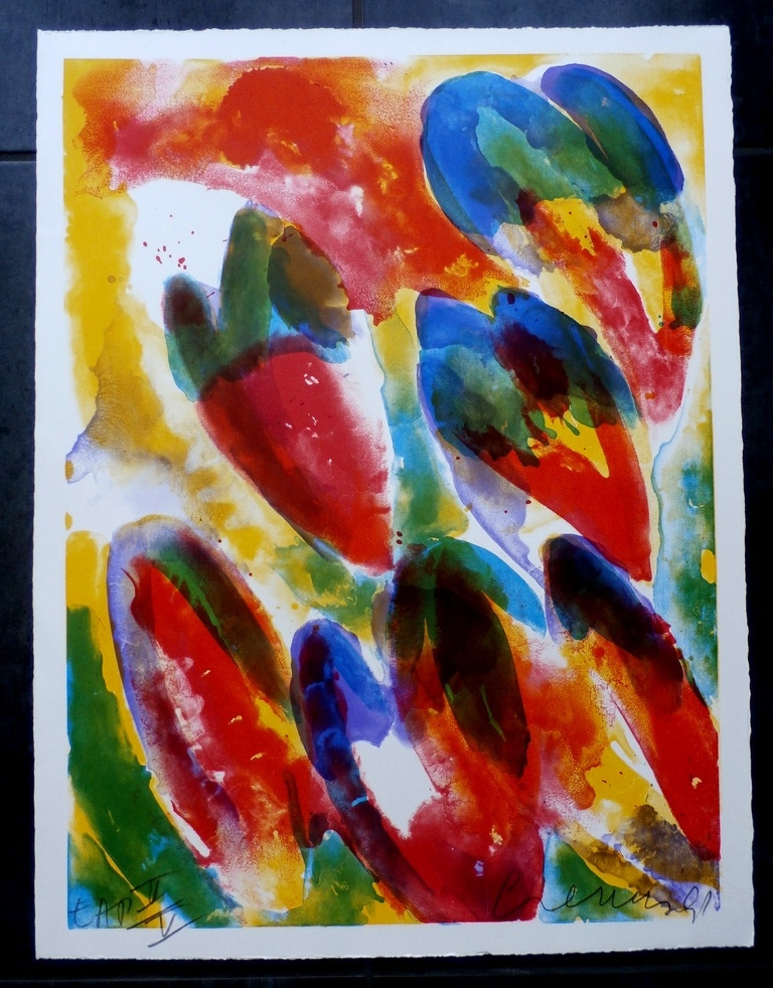 Litho van Jan Cremer uit 1991. Titel: Kandinsky. Nummer: EAP II/V. Afmetingen blad: H65.5 x b51 cm. Afmetingen voorstelling: H61.5 x b46.2. Het werk is rechtsonder met potlood gesigneerd door de kunstenaar. De authenticiteit van het aangeboden werk wordt voor 100% gegarandeerd. Een certificaat van echtheid kan, op aanvraag, worden meegestuurd.
