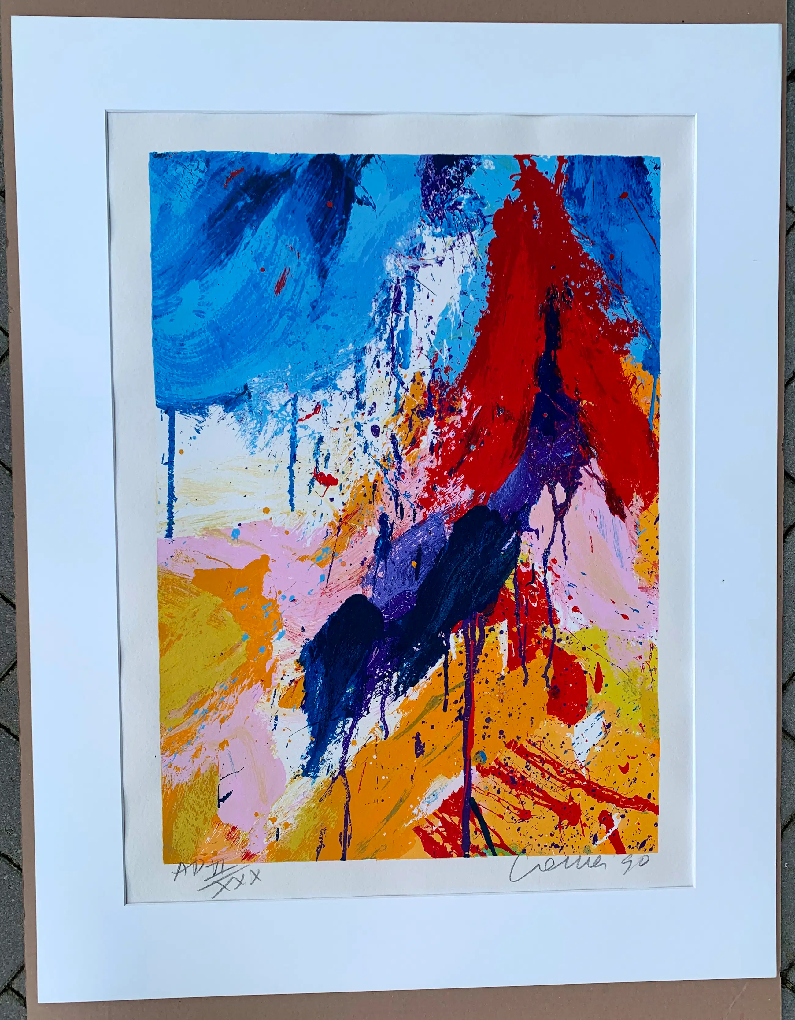 Kleurrijke zeefdruk van Jan Cremer. Voorstelling van een Chinees landschap. Oplage: AD VI/XXX. Jaar: 1990. Afmetingen incl passe-partout: H100 x b78cm. Afmetingen voorstelling: H73 x B52cm. Het werk is rechts onderaan, met potlood, gesigneerd door de kunstenaar. De authenticiteit van het aangeboden werk wordt volledig gegarandeerd. Een certificaat van echtheid kan, op aanvraag, worden gemaild.