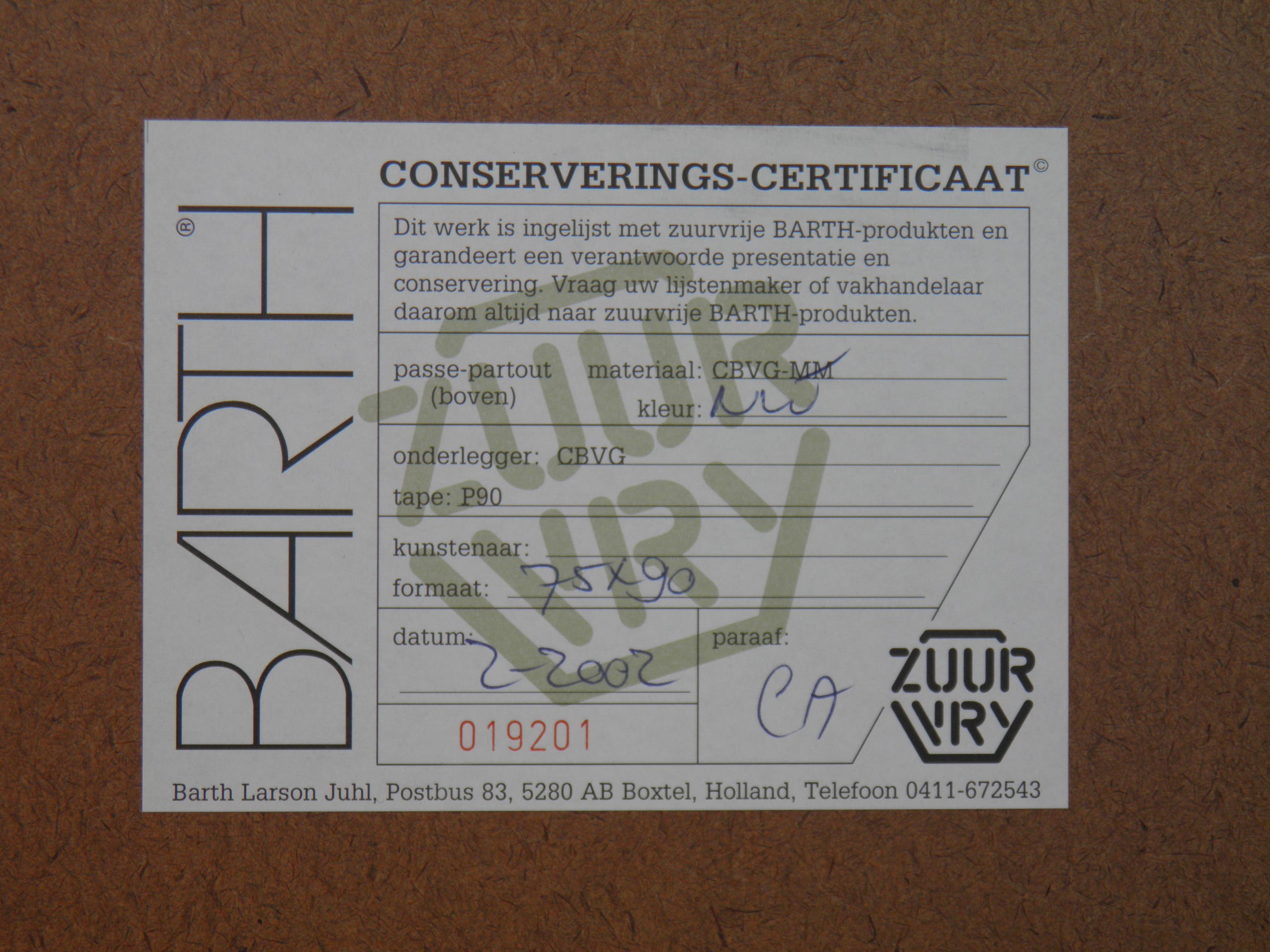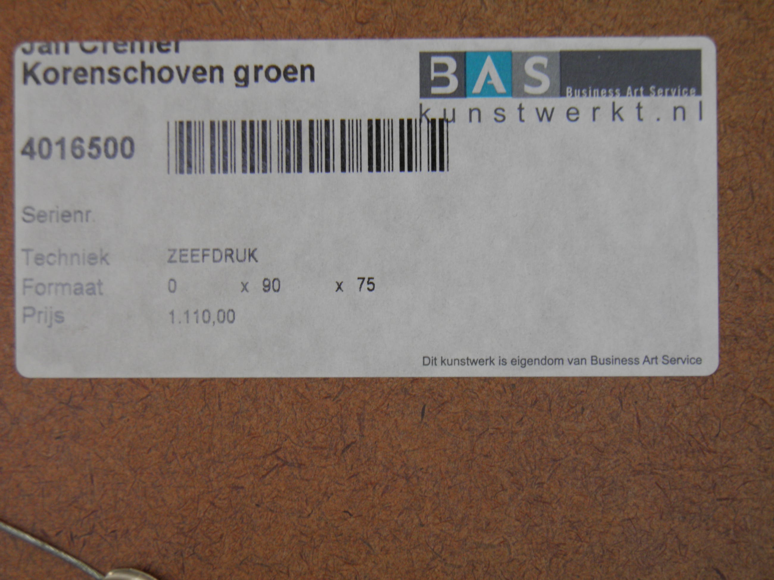 Het werk is af te halen op locatie. Als koper dient u zelf verpakkingsmateriaal mee te nemen. De locatie is: Sneek, Nederland