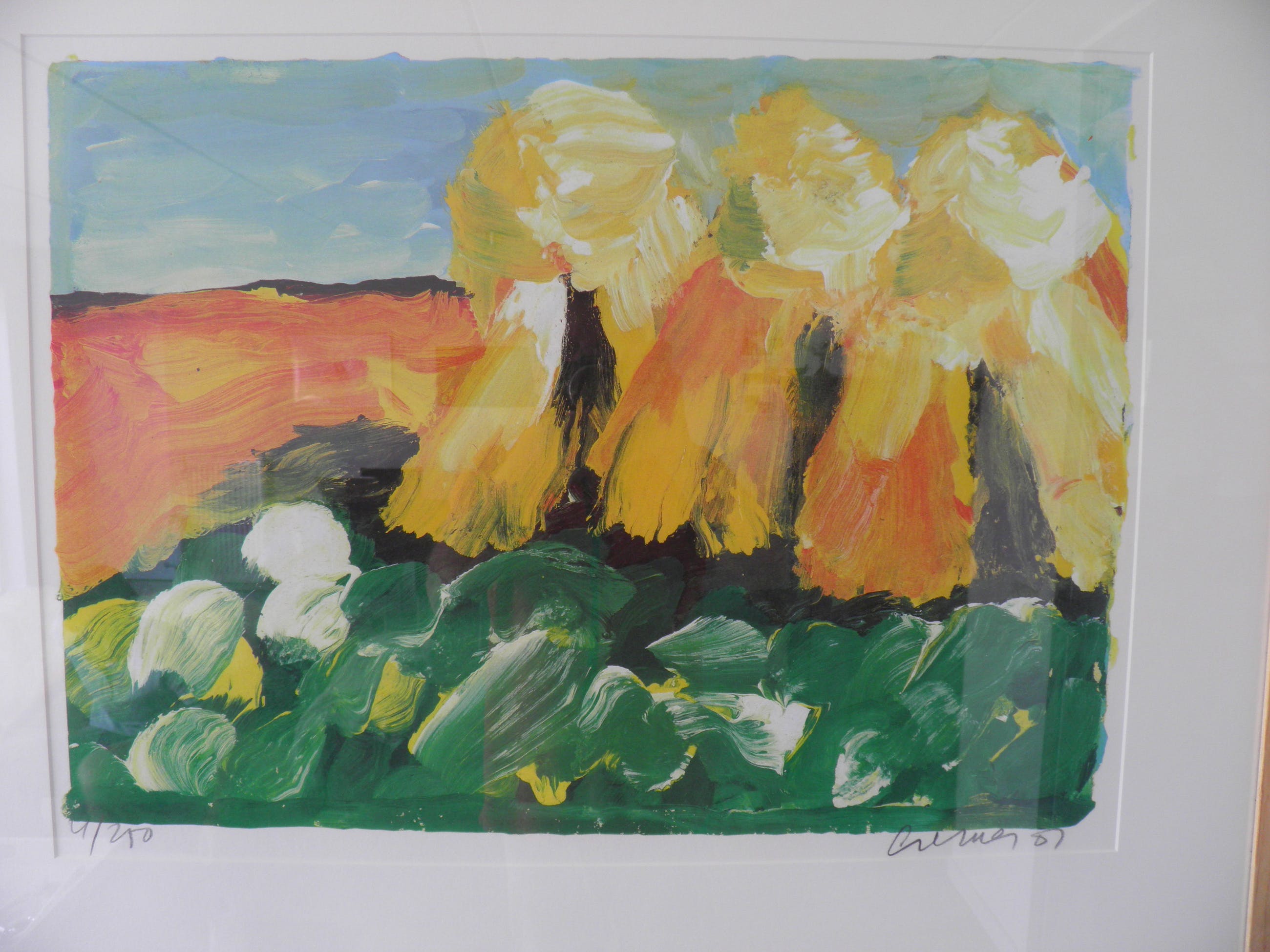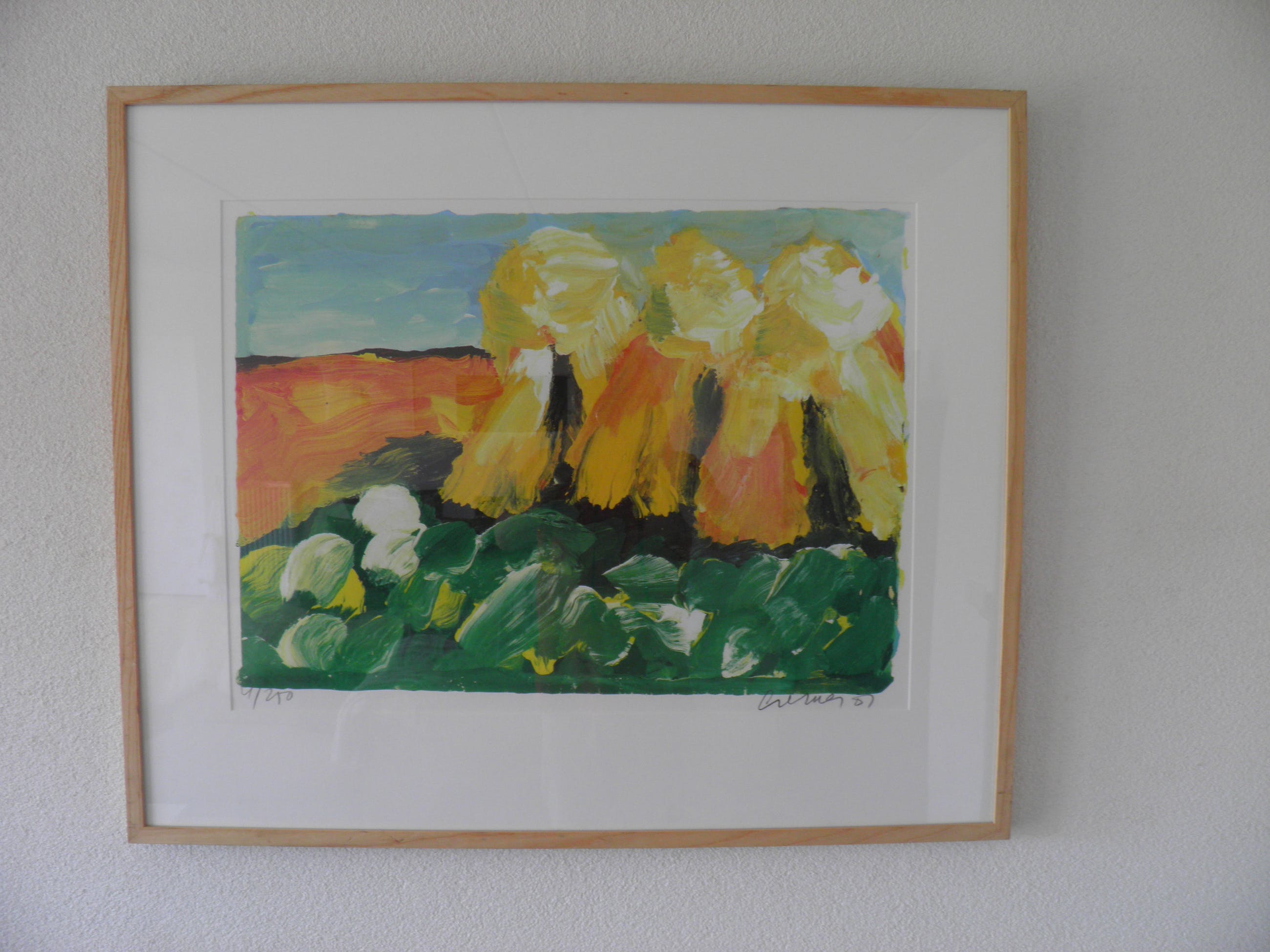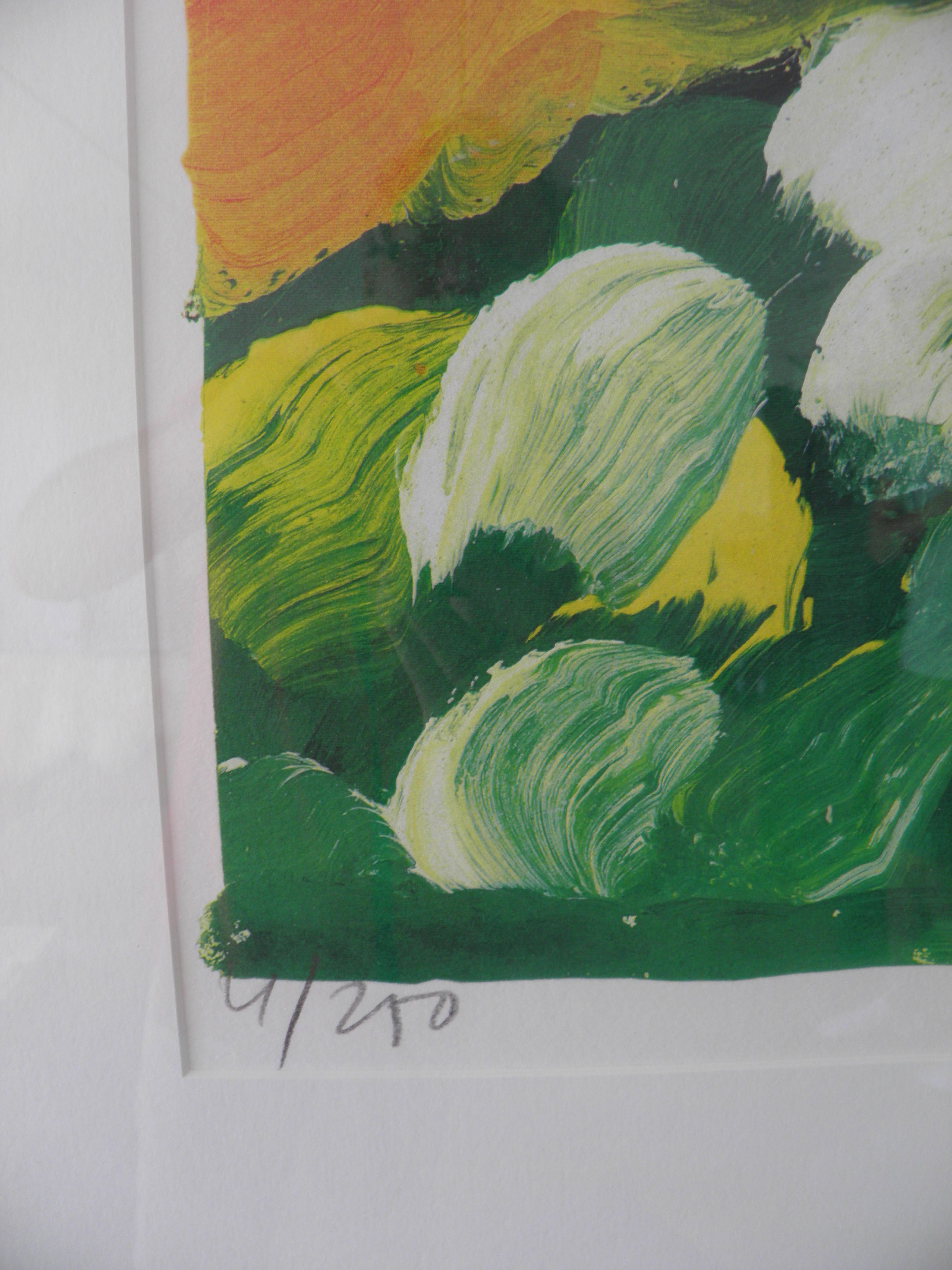 Originele handgesigneerde en genummerde zeefdruk ‘Korenschoven’ (rood) van Jan Cremer. De totale gelimiteerde oplage van dit kunstwerk is 250 exemplaren. De afmeting van deze echte zeefdruk is 76 x 57 cm (b x h).