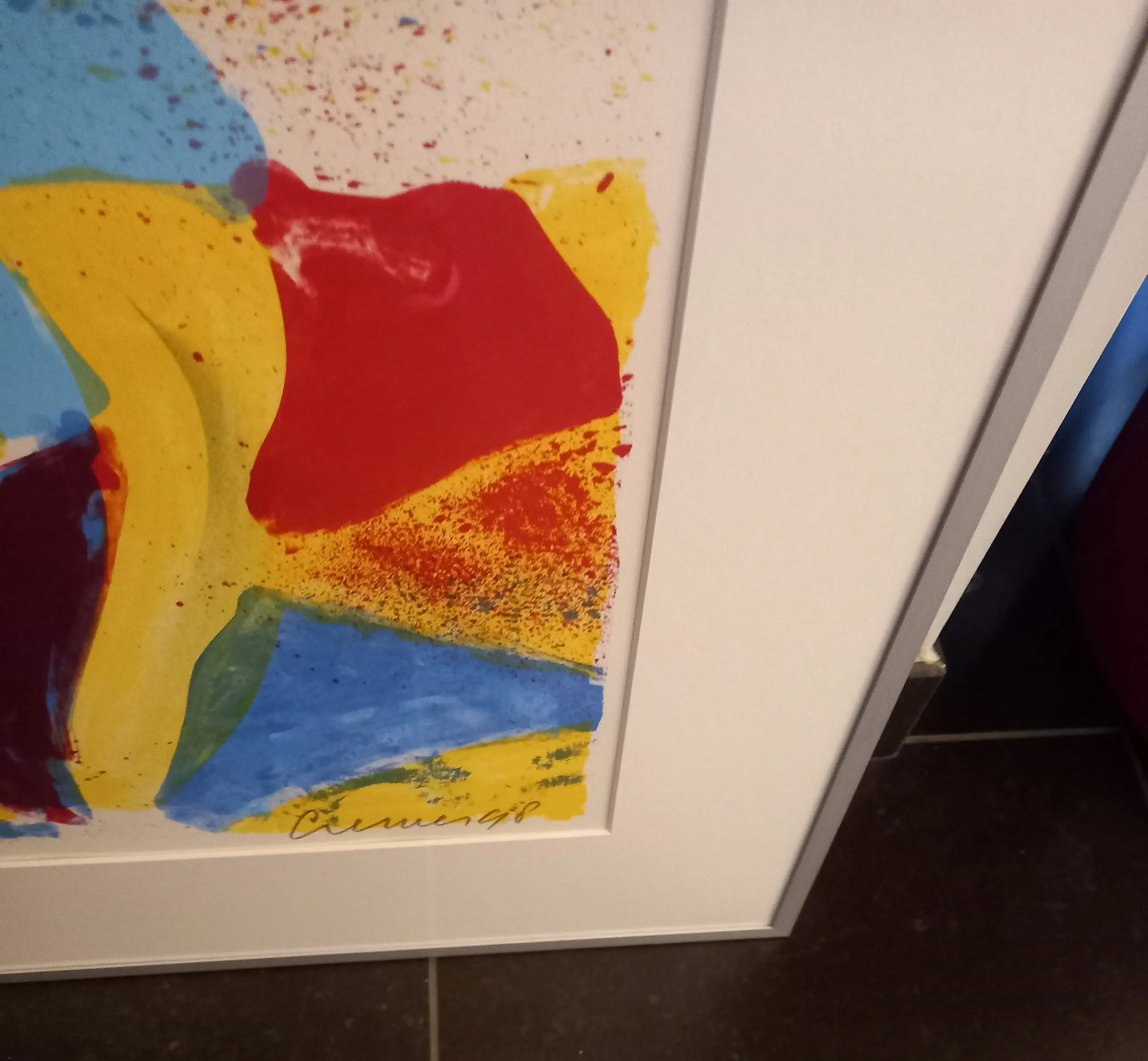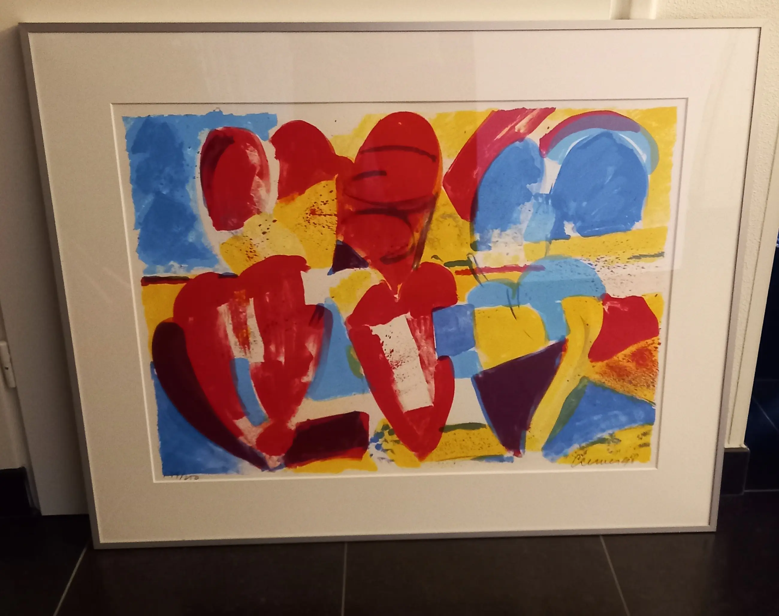 Fraai, gewild werk van Jan Cremer 'l'Histoire des Coeurs' uit 1998 Mooi gelijst in aluminium BARTH-lijst met passepartout