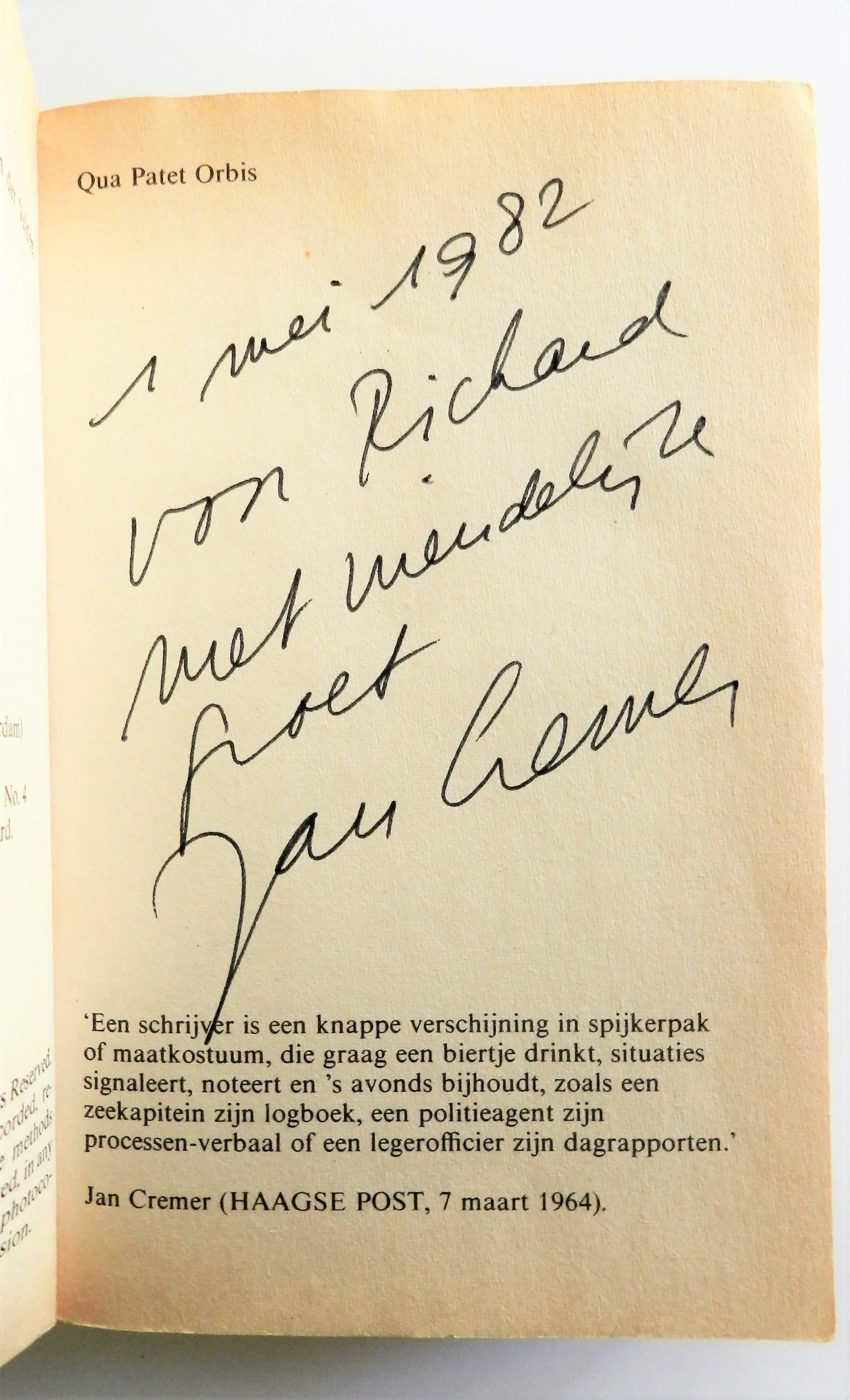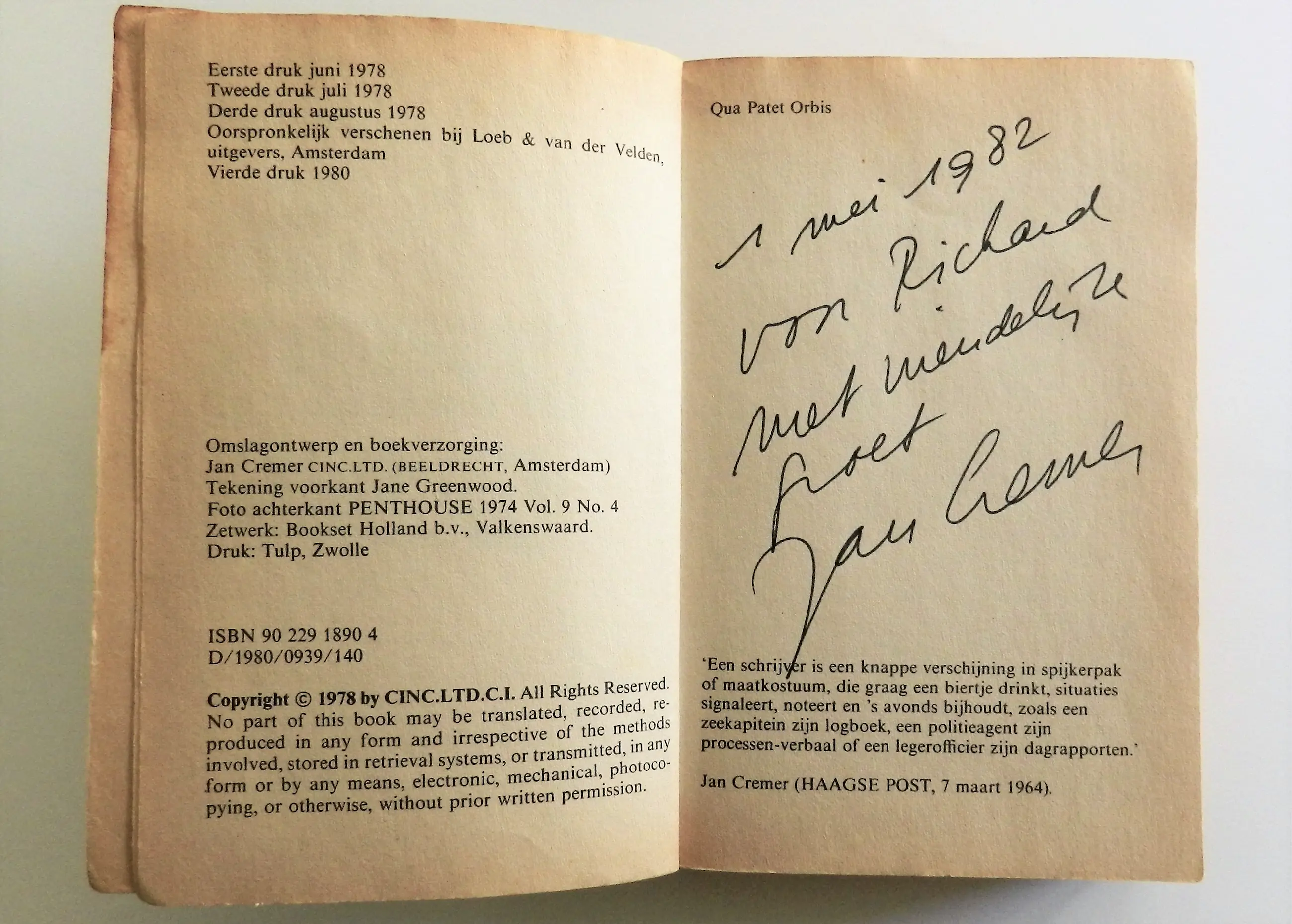 | Jan Cremer's Logboek (pocket). Wat verkleurde pagina's door de tand des tijds. Verder in goede staat. Gesigneerd door Jan Cremer 1982 Jan Cremers Logboek handelt over honden en oorlog, negerinnen in de tropen en Eskimo-vrouwen in Groenland, wolven en walvissen, filmsterren en hoeren, kosmonauten en boksers, moderne kunst en kunstluizen, politiemannen en pooiers, slachthuizen en bordelen, Boedapest en New york, Zuid-Amerika en Mongolië. | |||