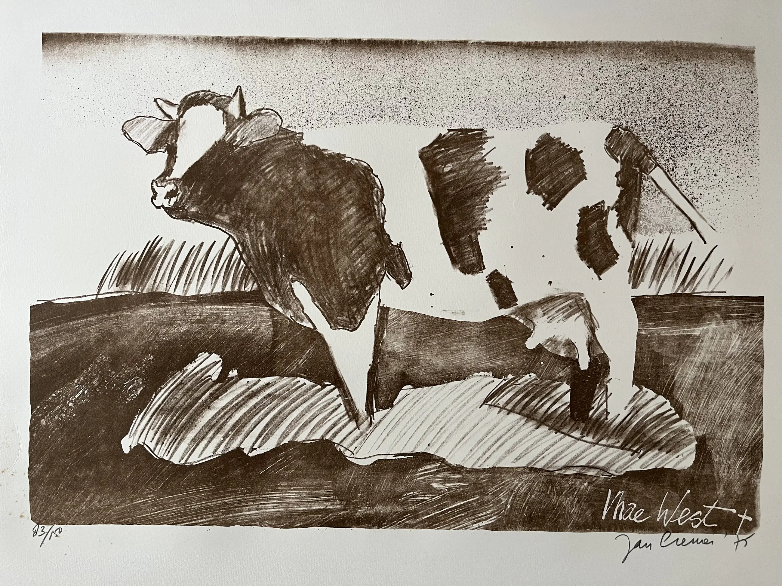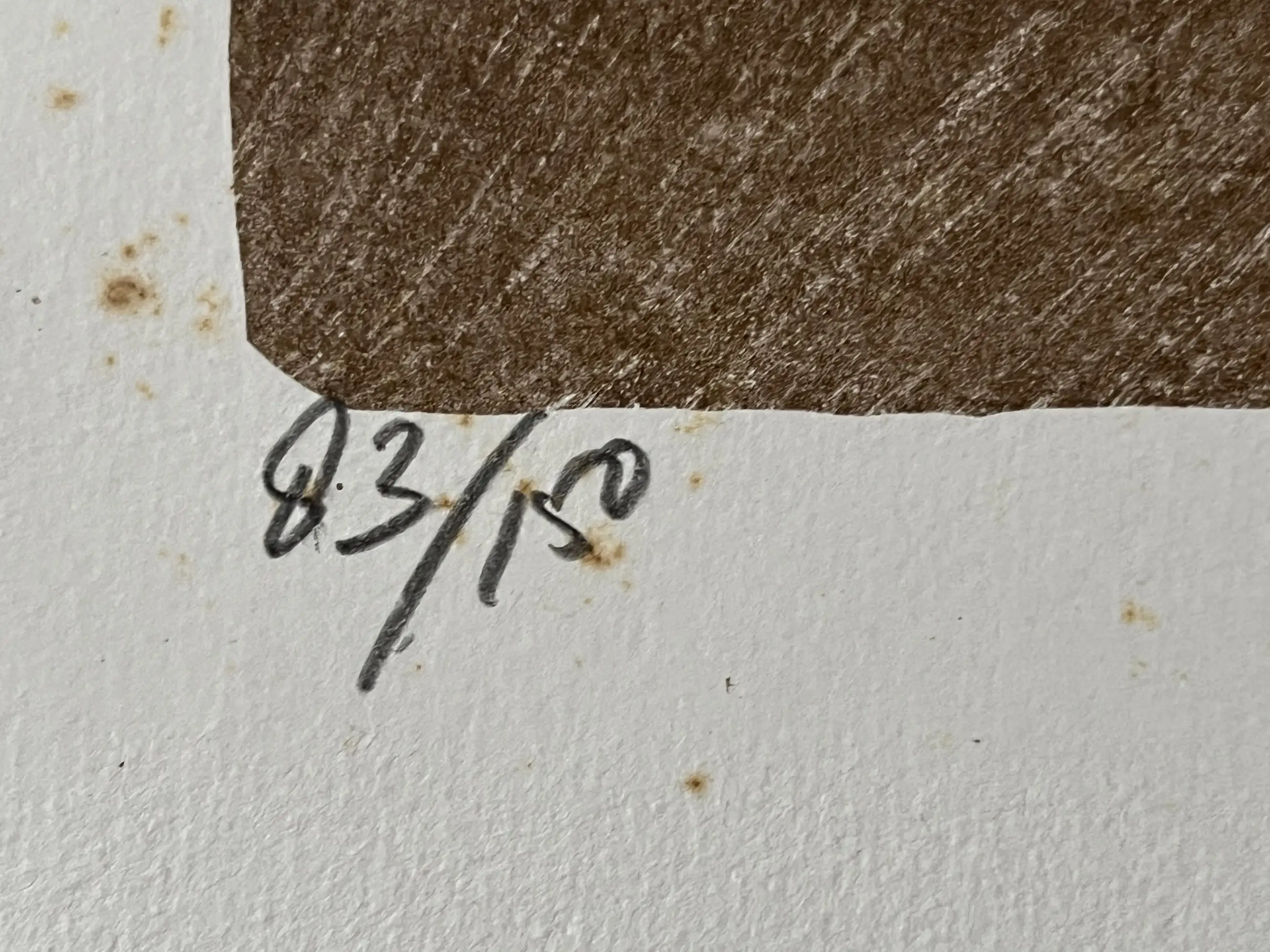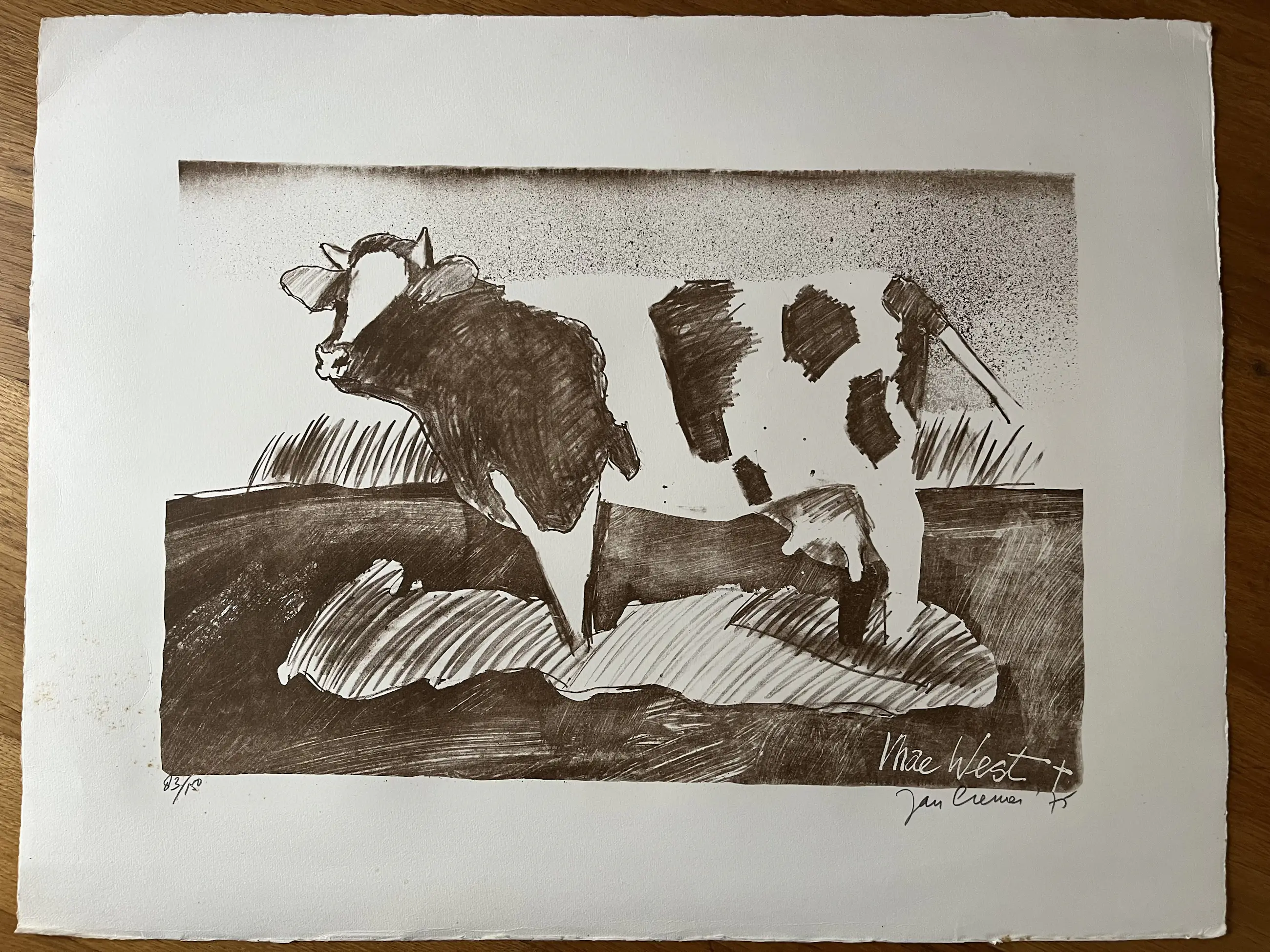 Litho uit 1975. Oplage 83/150 Helaas zitten aan de rechterkant wat bruine plekjes en zit er een vouwtje in rechter bovenhoek. (Zie detailfoto’s) Afmeting afbeelding 33,5 x 50 cm. Blad 50,5 x 65,5 cm.