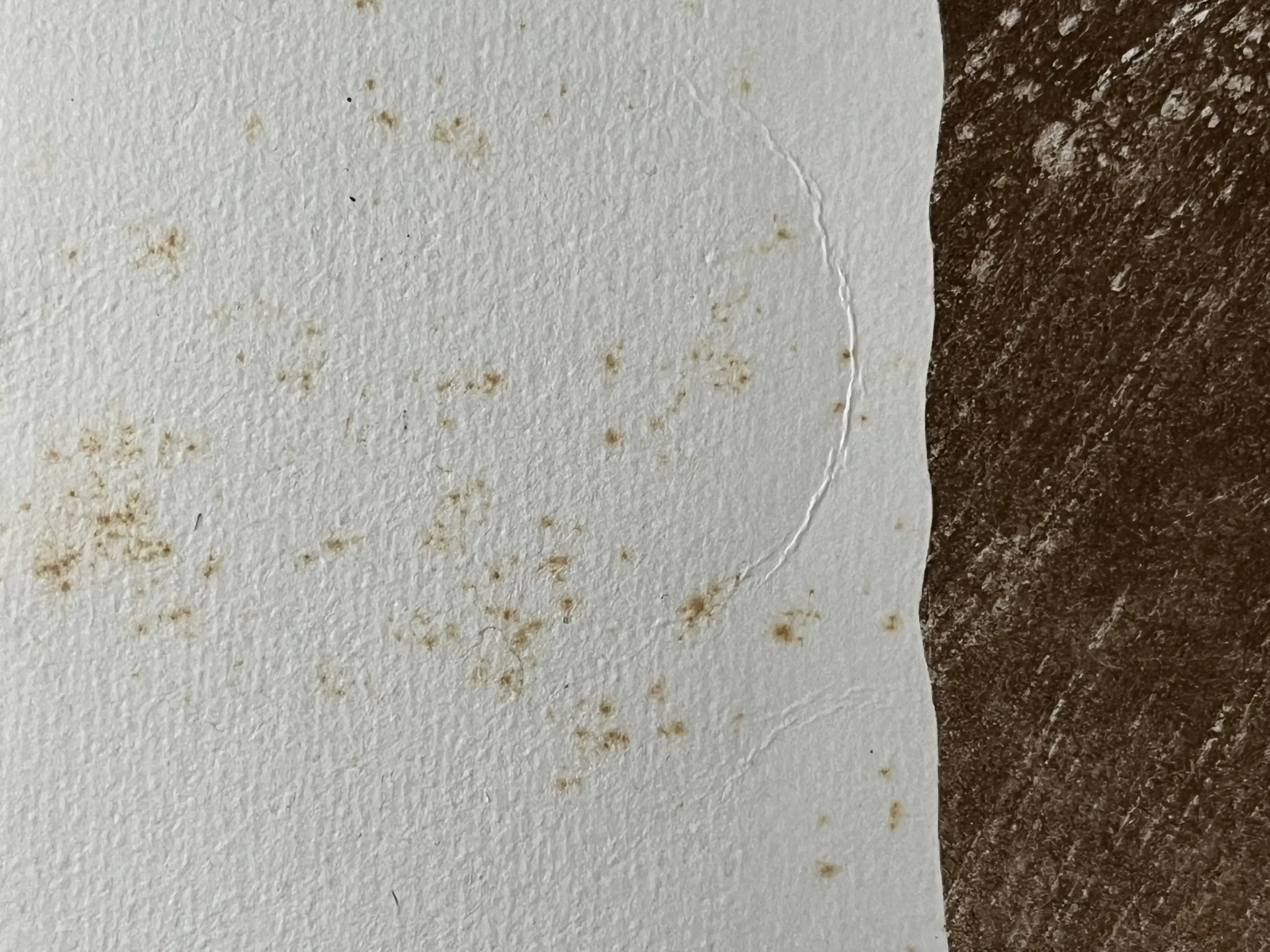 Bruine plekjes aan vvor- en achterkant. Vouwtje in re. bovenhoek blad.