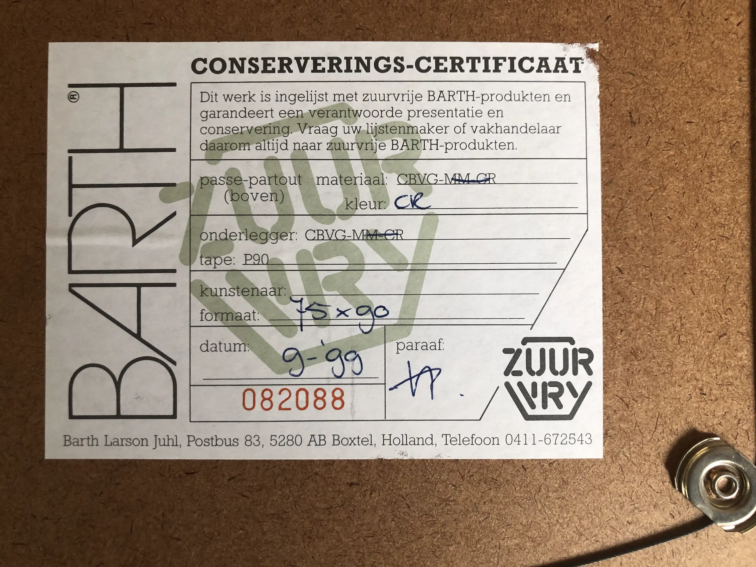 Ben u niet in staat om een werk zelf af te halen, dan kunt u een koeriersdienst inschakelen om het werk te laten afhalen. Klik hier voor meer informatie over hoe dit werkt en bekijk de tarieven.
