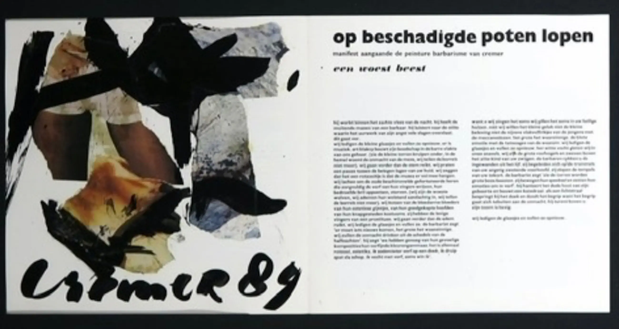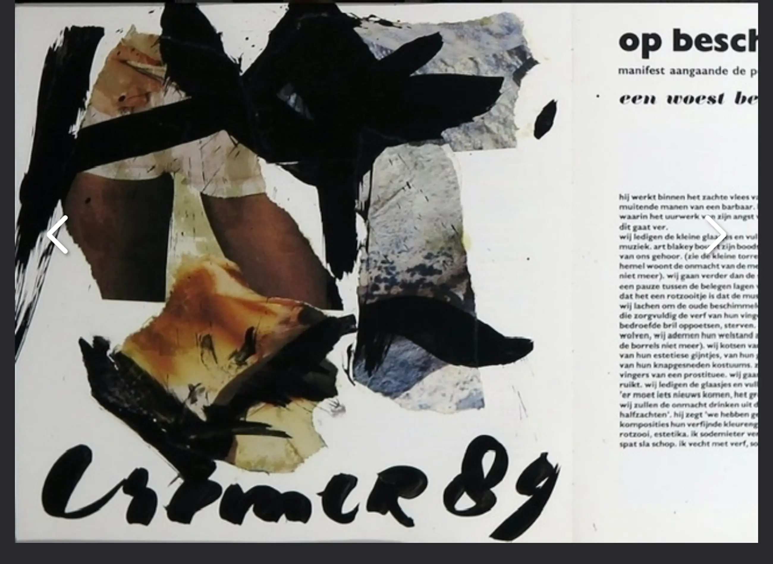Jaartal: 1989 Medium: Mixed media Gesigneerd: Gesigneerd Oplage: Uniek kunstwerk Zeer mooie collage van Jan Cremer. De collage is speciaal gemaakt op een tentoonstellingscatalogus voor de tentoonstelling “Jan Cremer als schilder Haagse periode 1958-1962 die in galerie Nouvelle Images doorging te Den Haag Mooi ingelijst en met de hand gesigneerd.