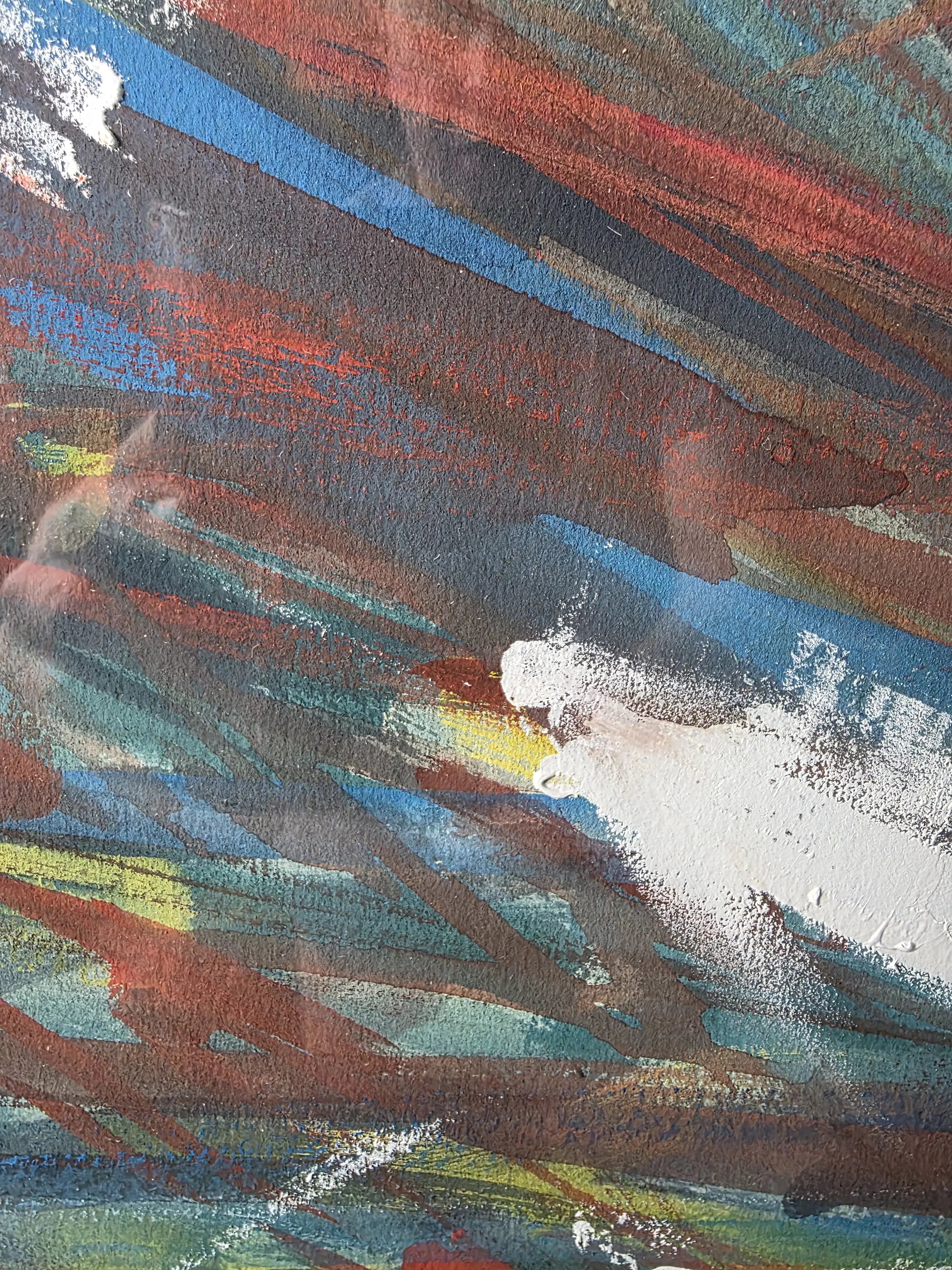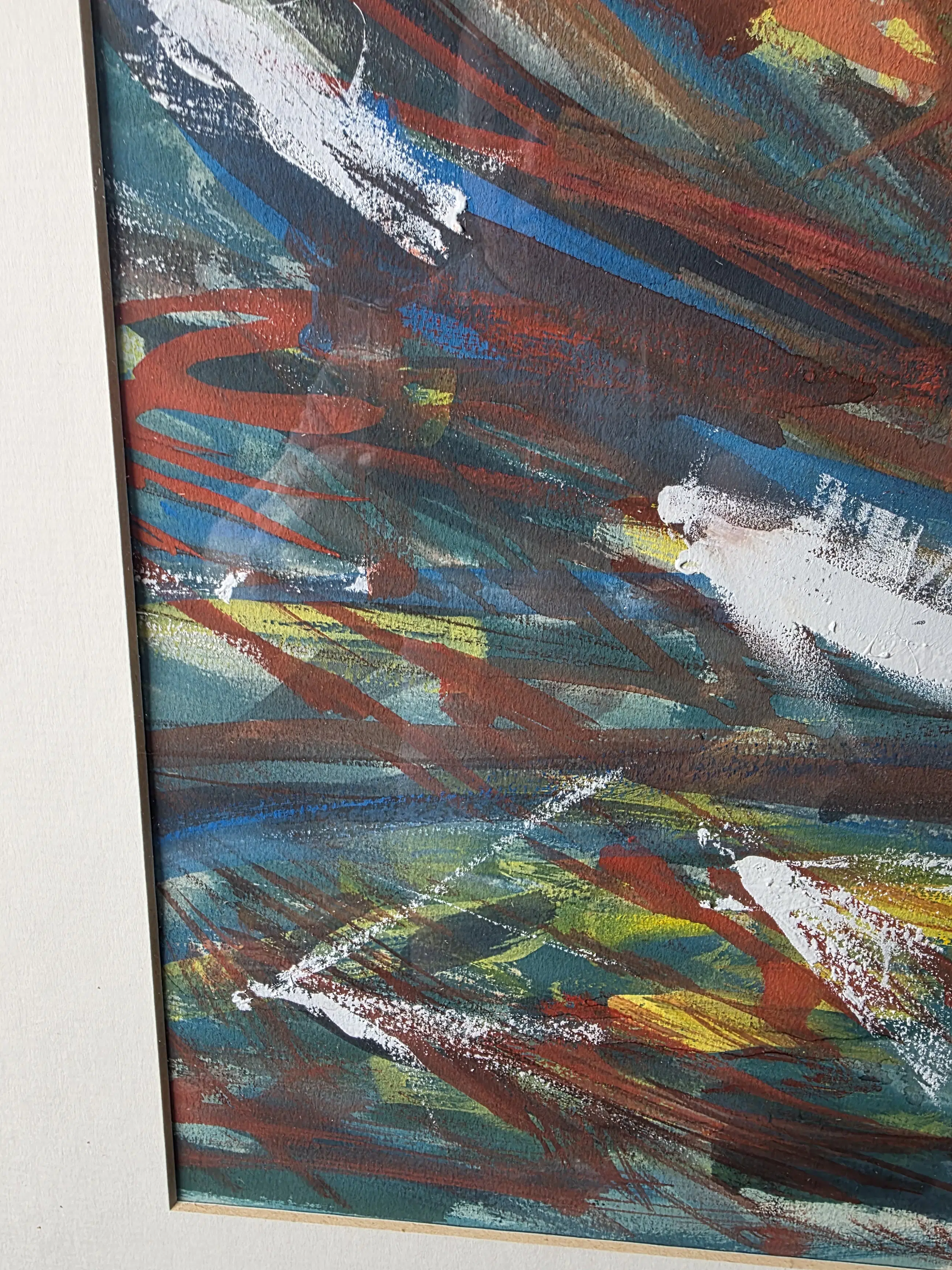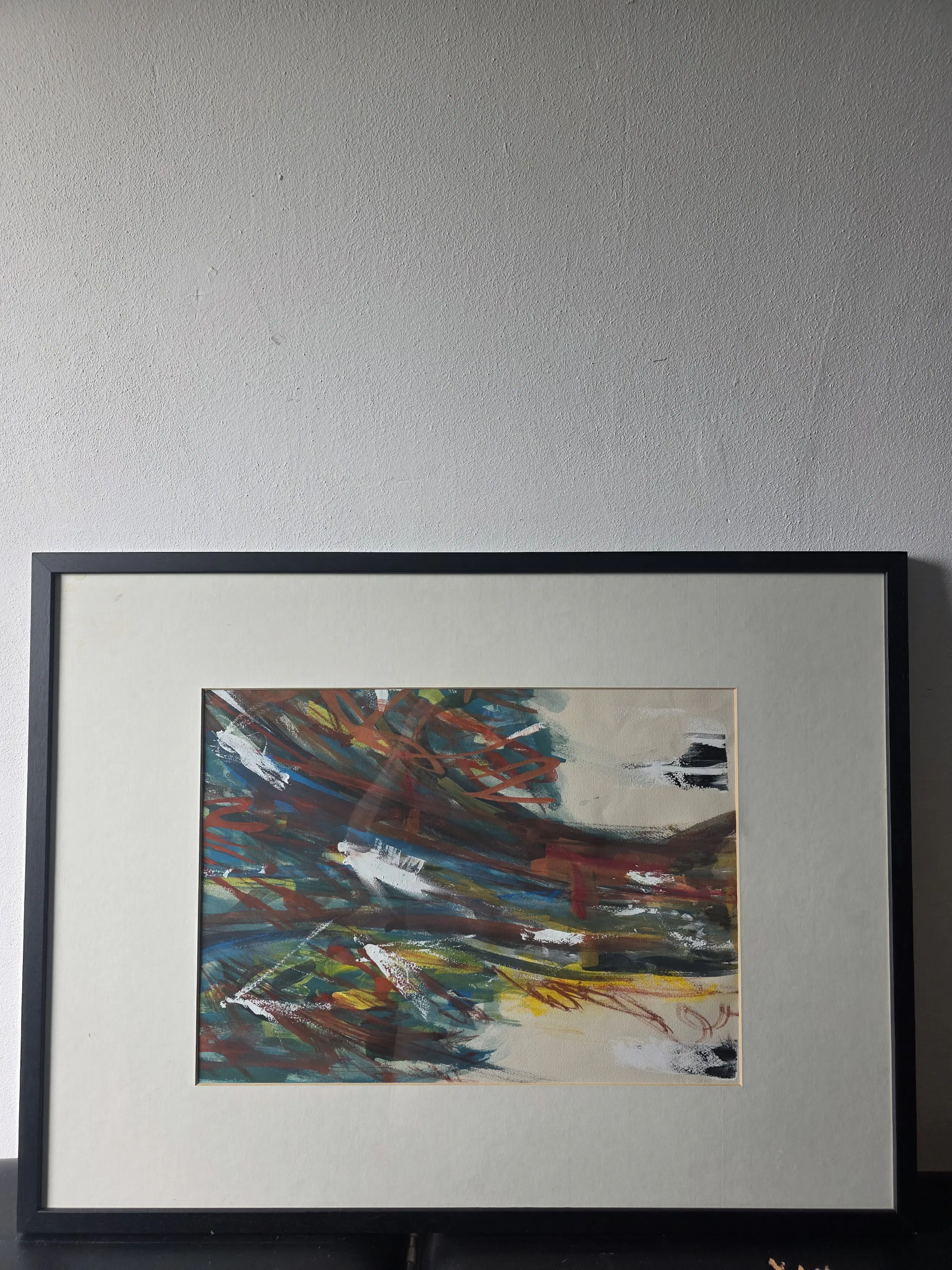Olieverf op papier, van Jan Cremer abstracte compositie gesigneerd 1962 op achterzijde 33x37,5 met lijst 80x60 in goede staat. Word zorgvuldig verpakt en verzekerd verzonden.