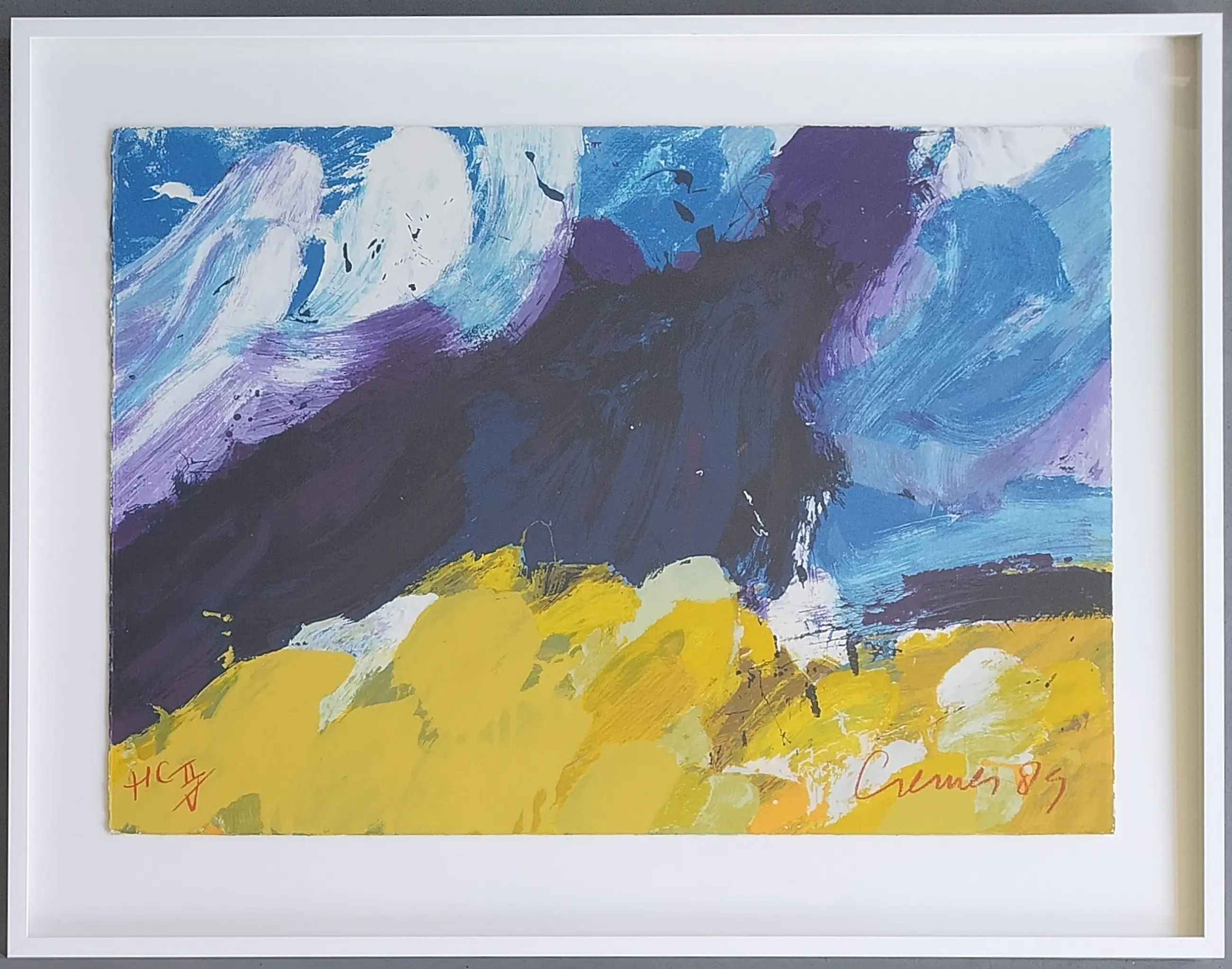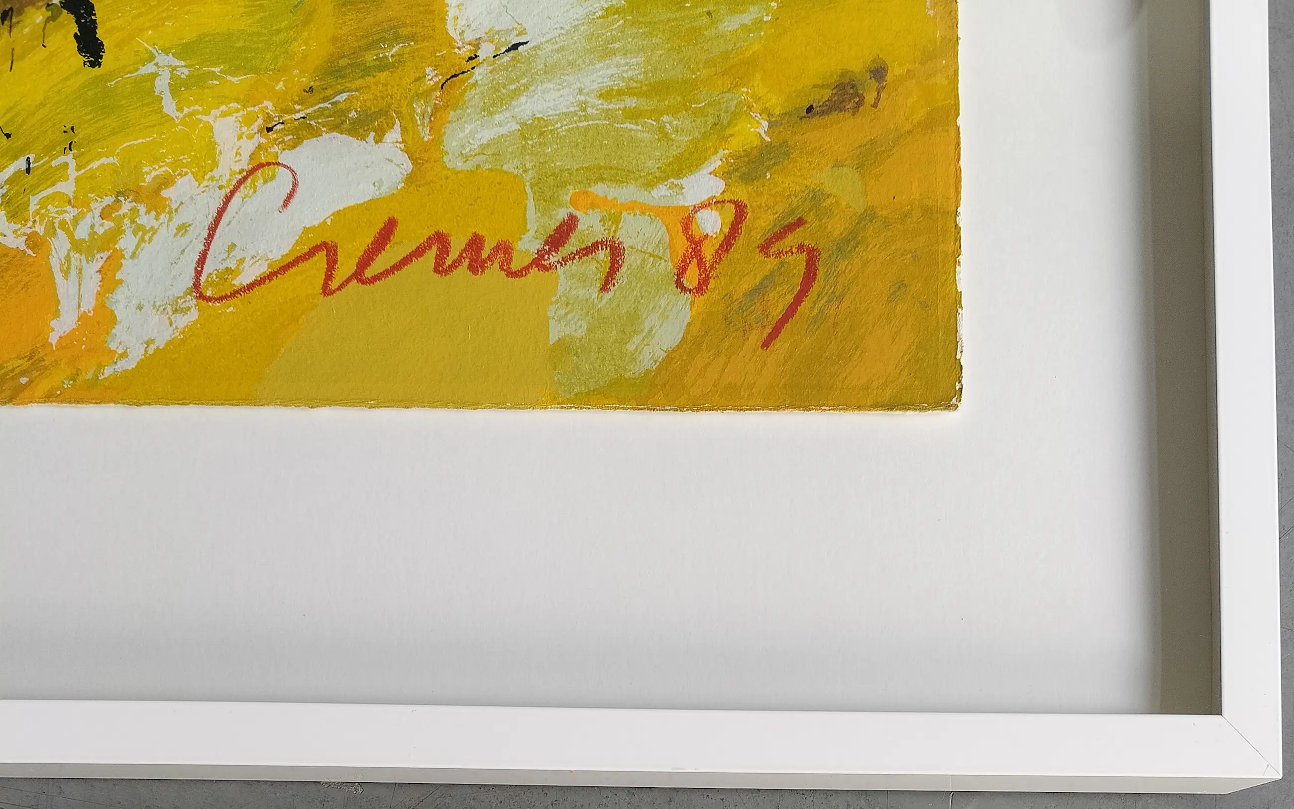 Gesigneerde zwevend ingelijste zeefdruk van de kunstenaar Jan Cremer uit 1989. Rechtsonder is het werk gesigneerd met Cremer 89, linksonder met HC II/V Beeldmaat 53 x 75cm. (hxb) Afmetingen witte aluminiumlijst 71 x 91 cm. De zeefdruk is in prima staat . De lijst heeft een paar lichte krasjes en er zit een krasje in het glas (bij de oplage).