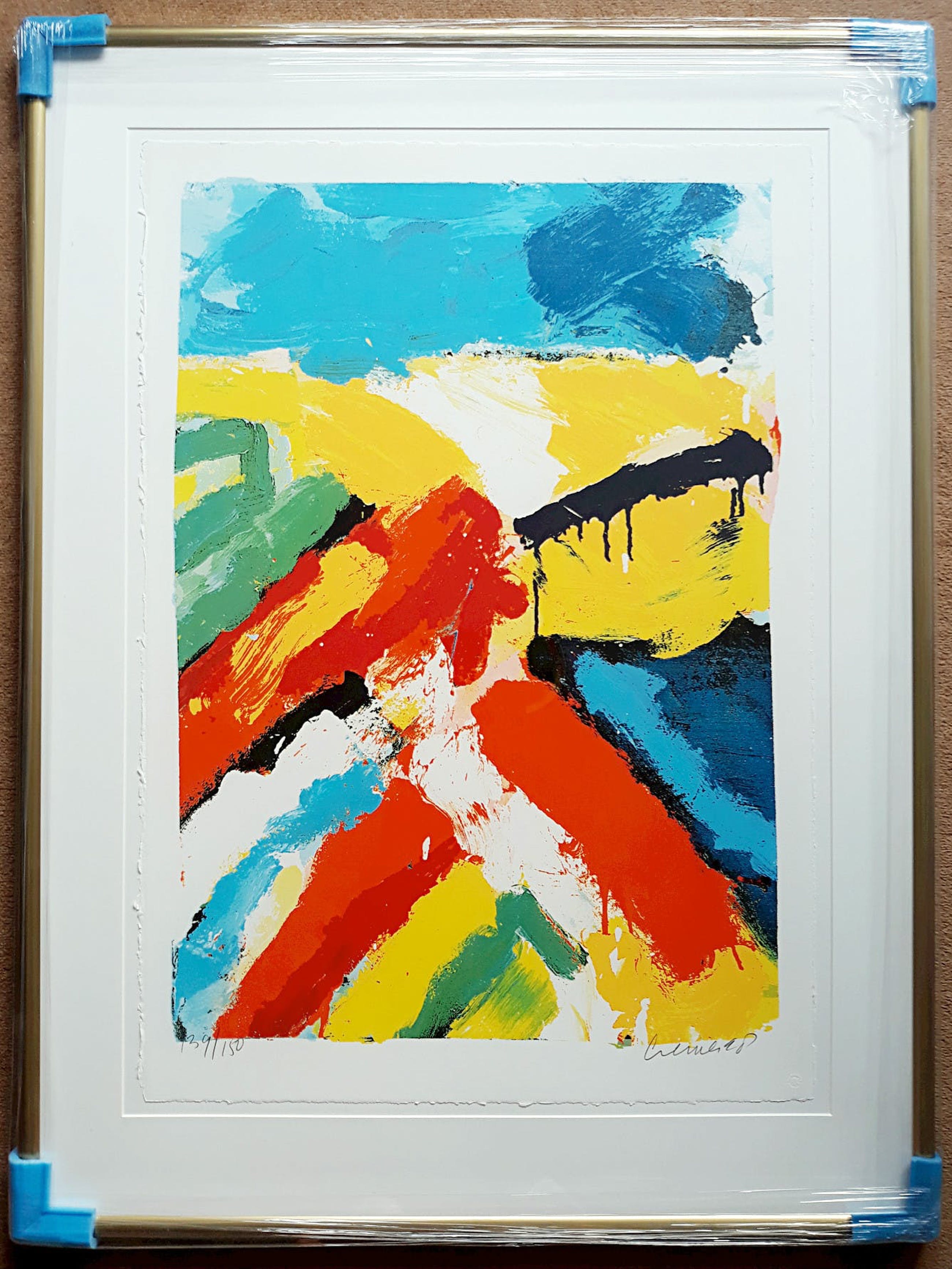 Zeer mooi, groot werk van Jan Cremer uit 1998. Zeefdruk op geschept papier, met potlood gesigneerd, gedateerd en genummerd (139/150) en met blindstempel van “Het Drukhuis Oosterbeek”. Literatuur: Cremer Grafiek / Prints 1956-1998 blz. 234, 98-13/S.